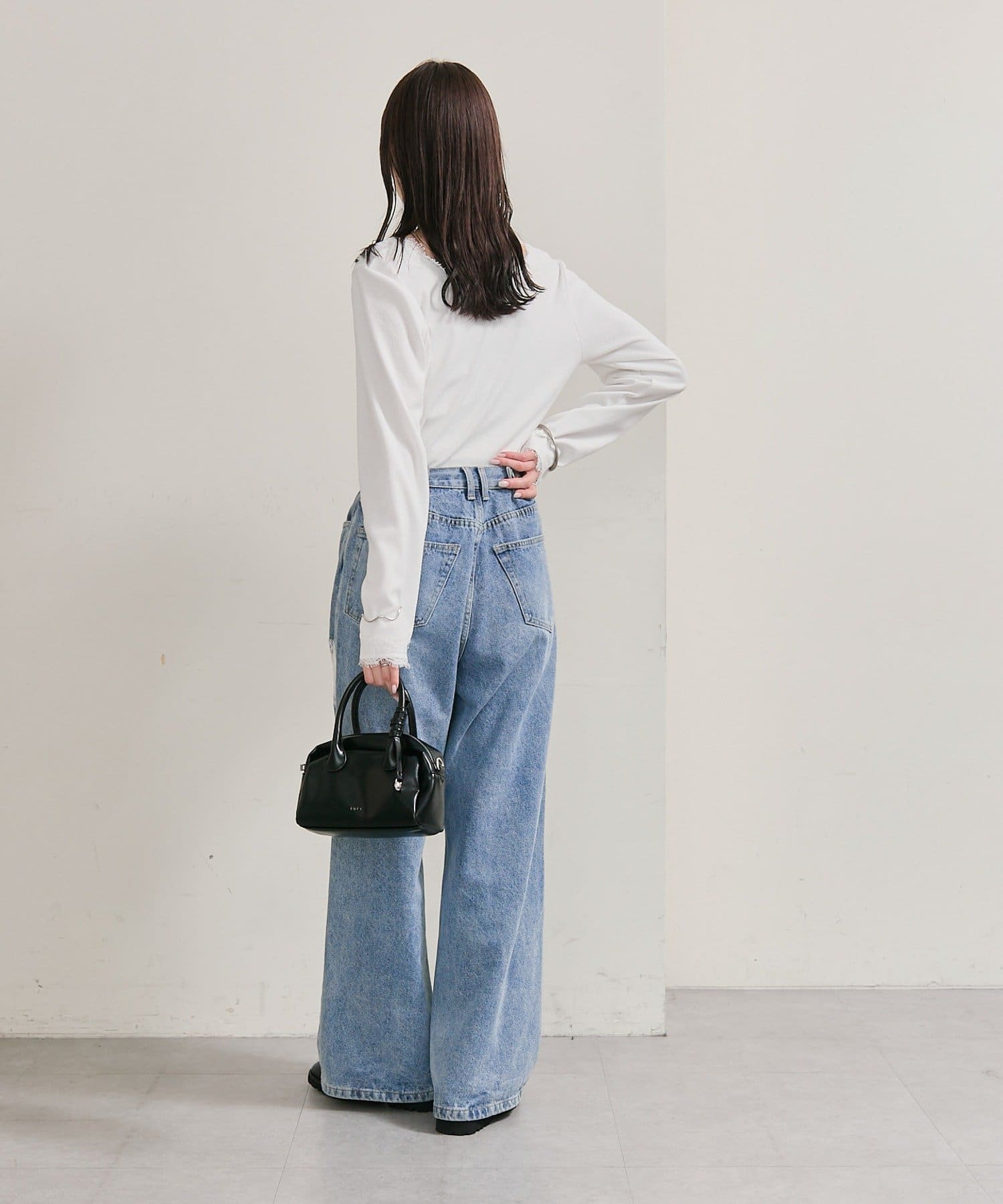 ・デニム合わせでカジュアルダウンすれば程よく甘さを抑えた大人スタイルに。
