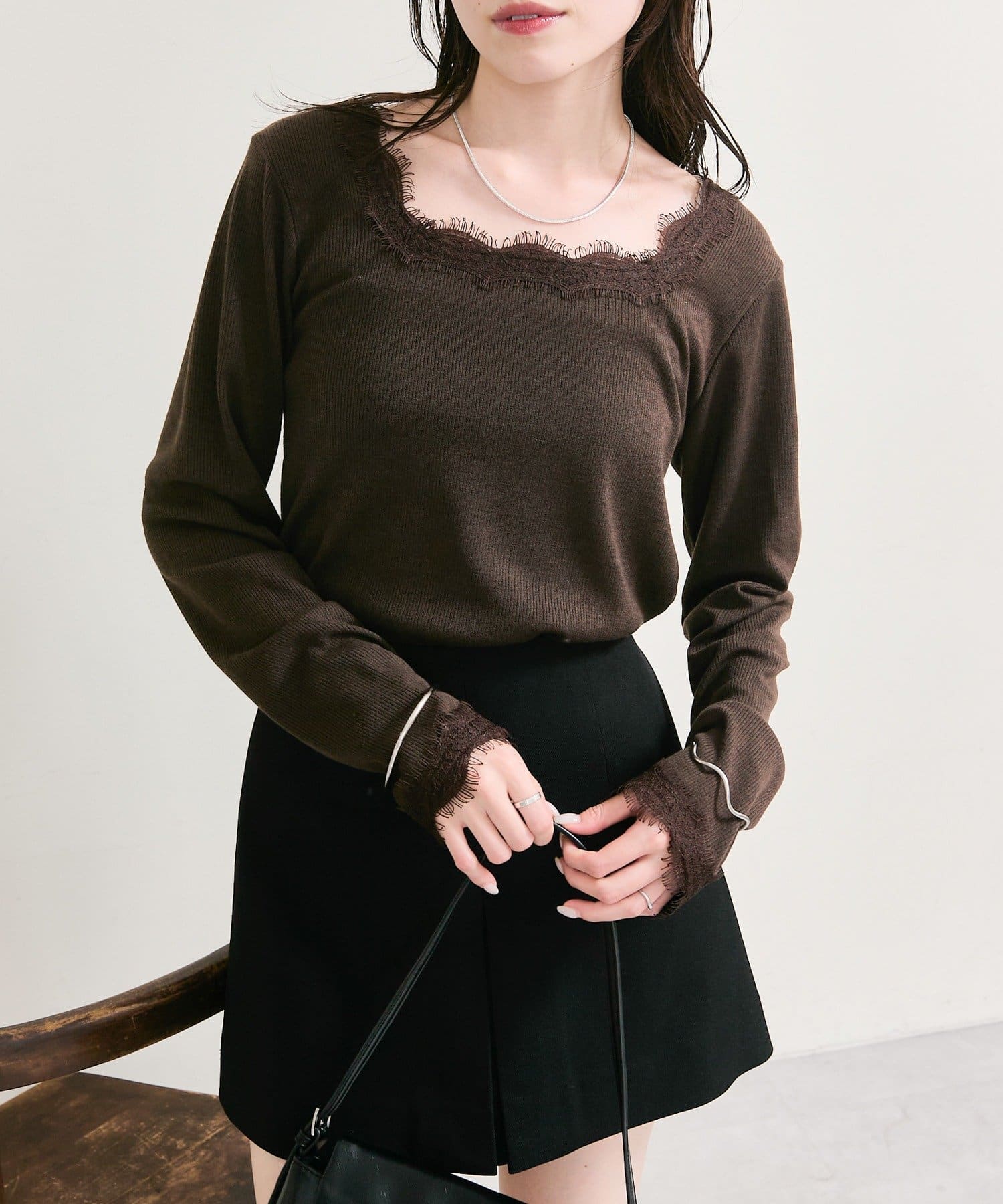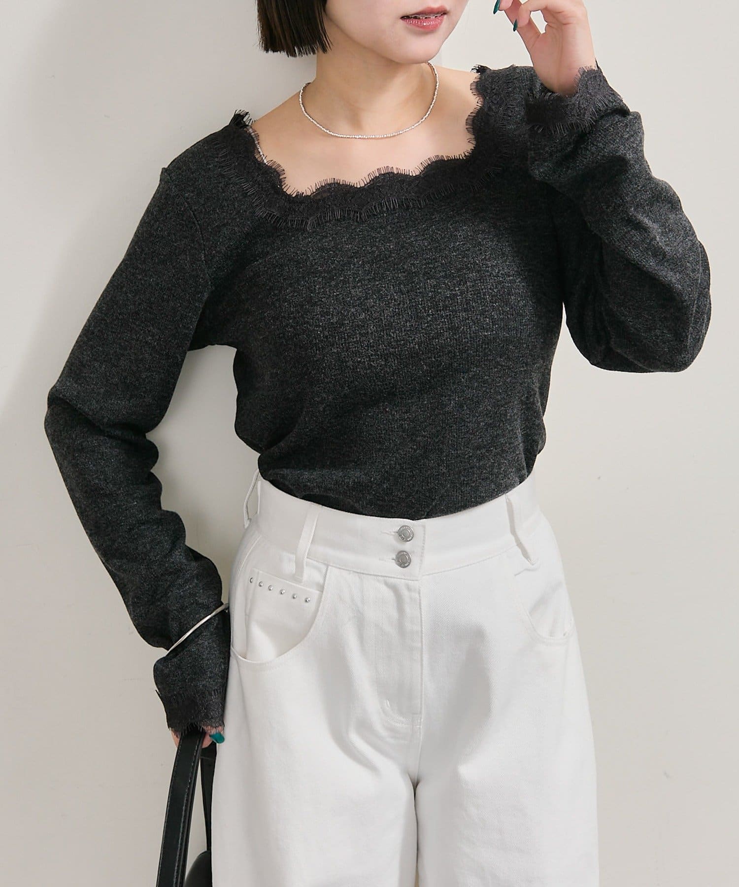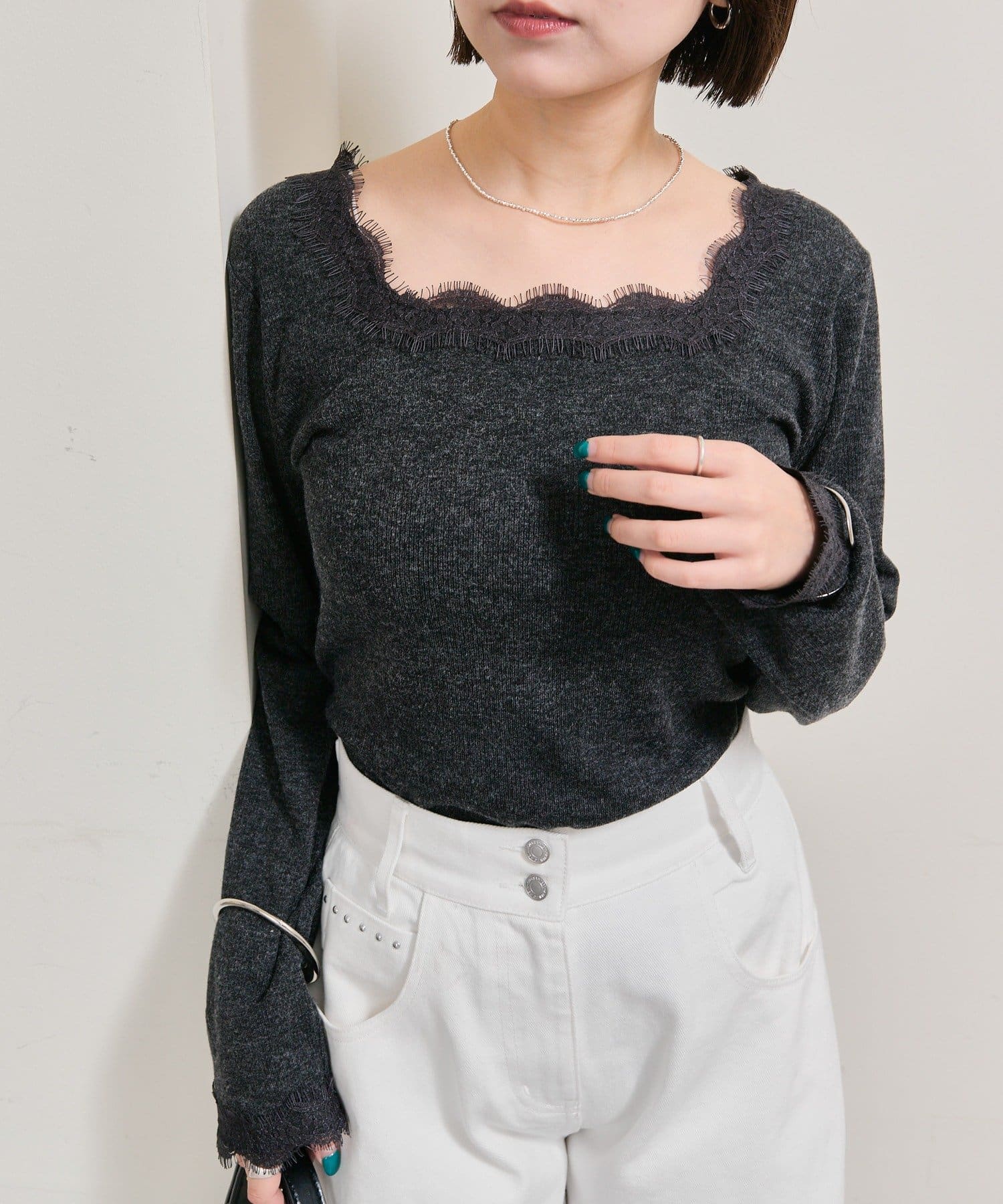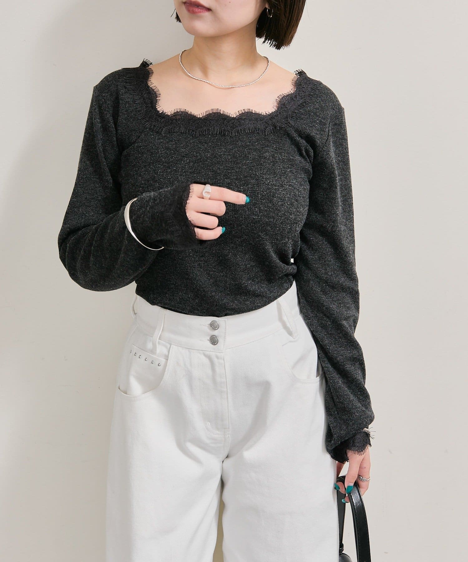 ・ニットやスウェットのインナーとしてレースをチラ見せしても◎