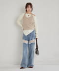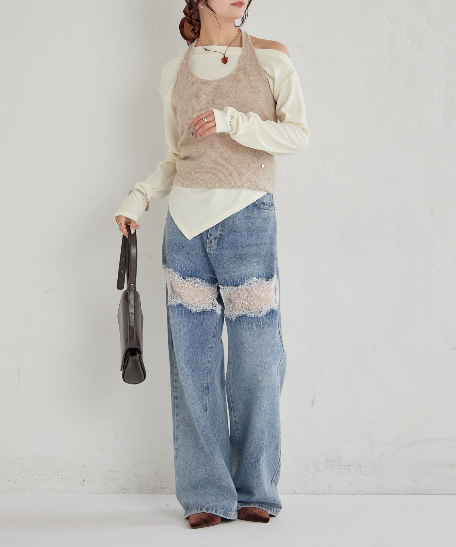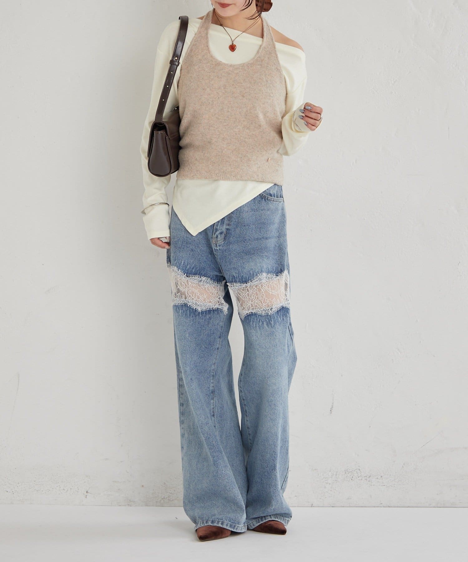 ・【全骨格スタイルアップが叶う♡ウエスト調整可能!】レース切替デニム