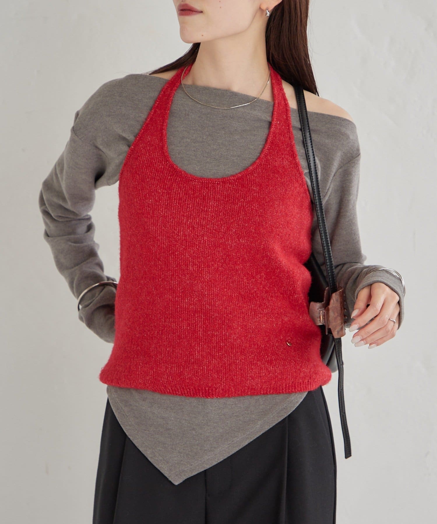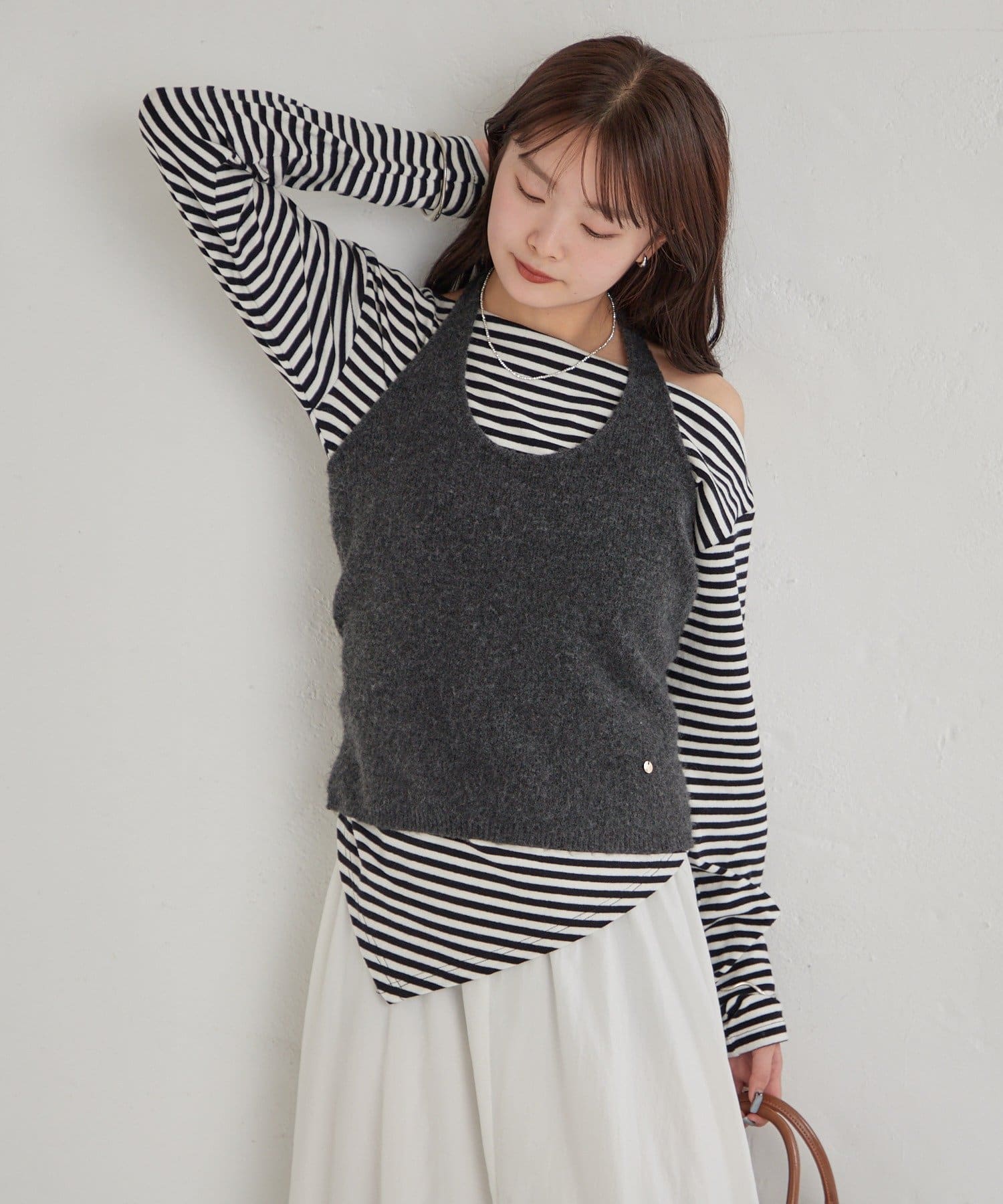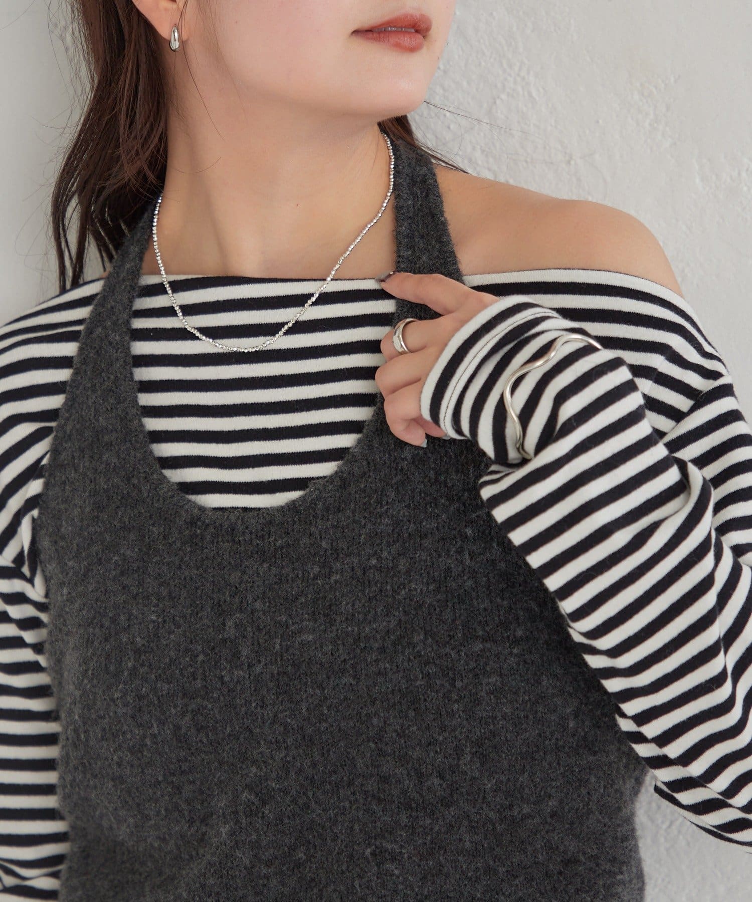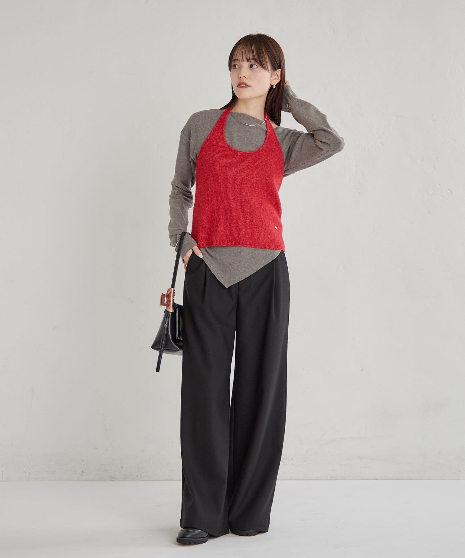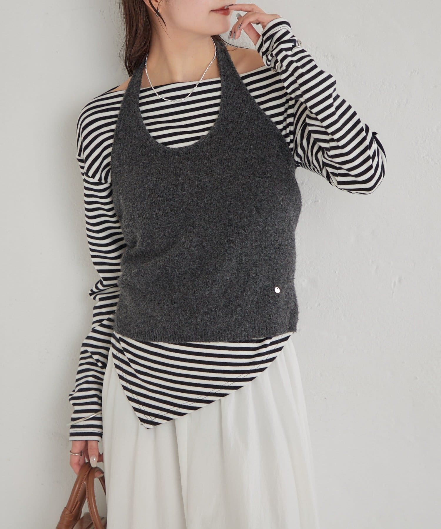 ・顔周りをすっきりと見せてくれるホルタービスチェで、こなれ感のあるスタイリングに仕上がります。