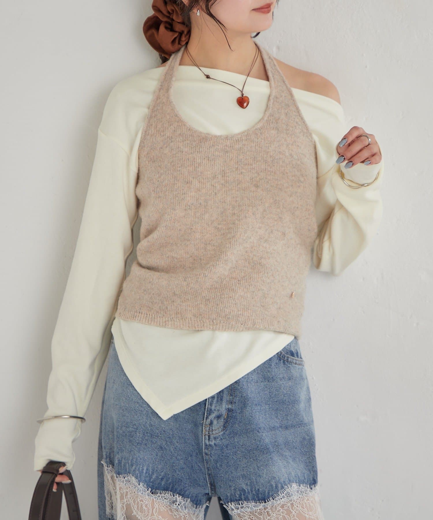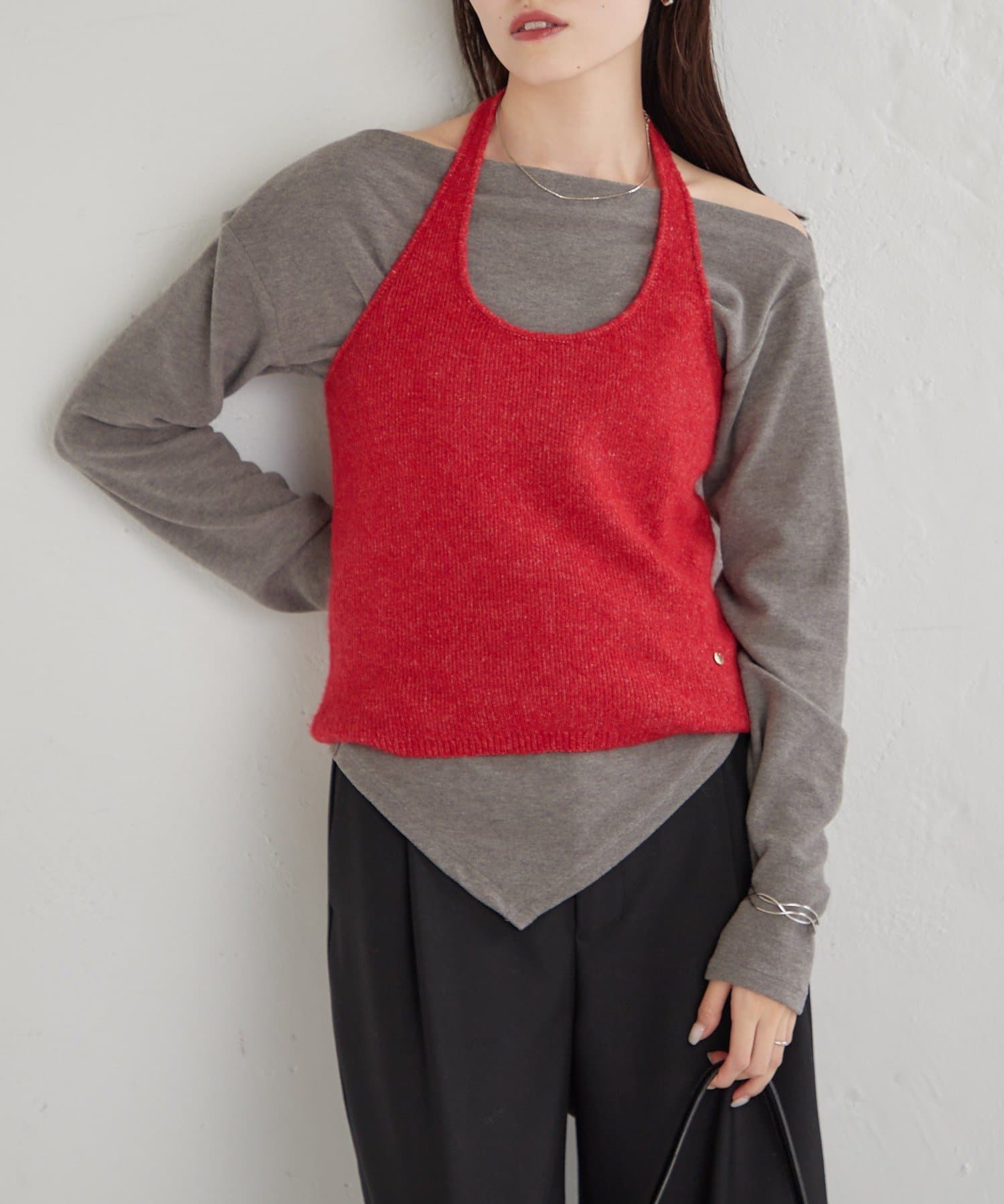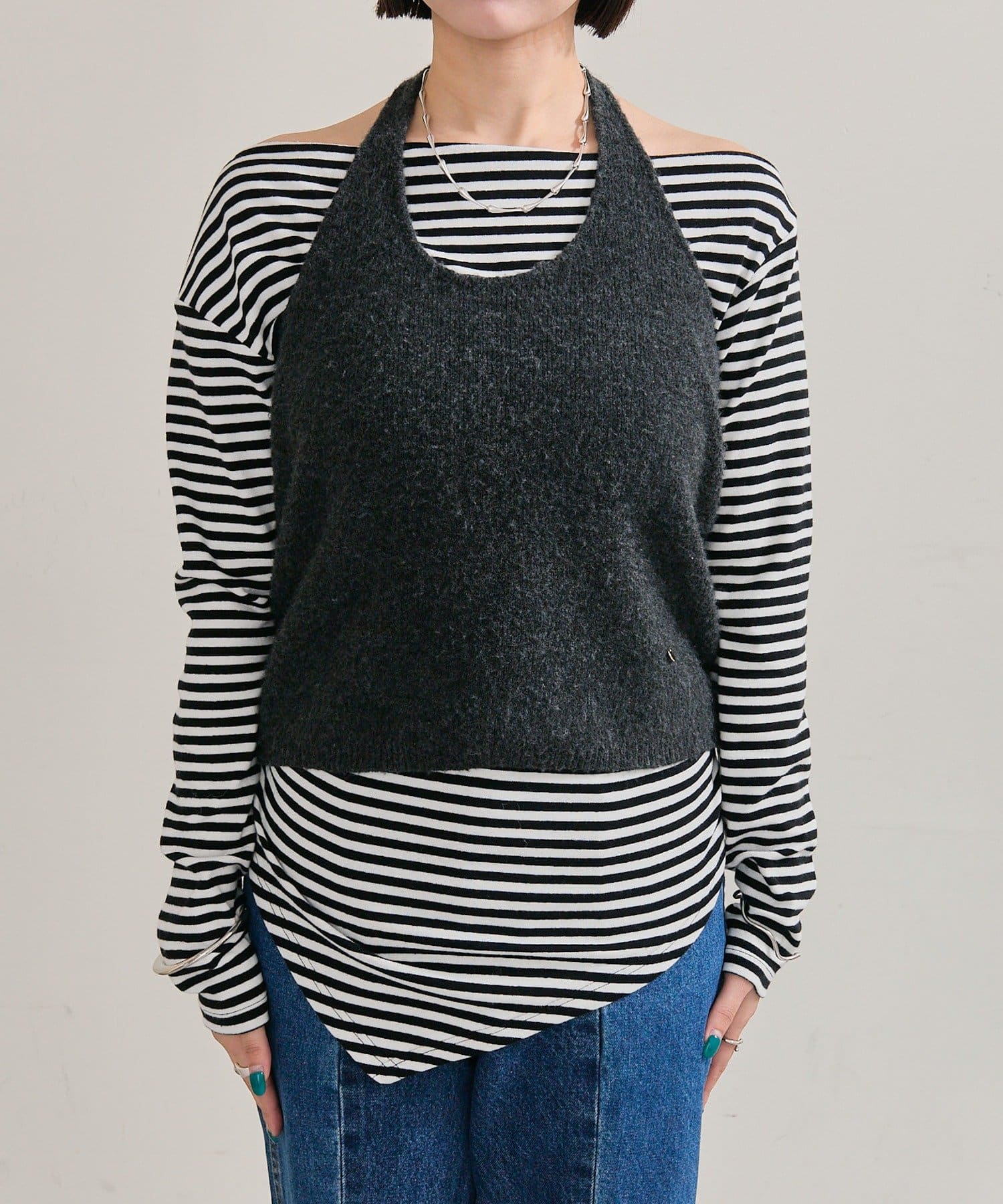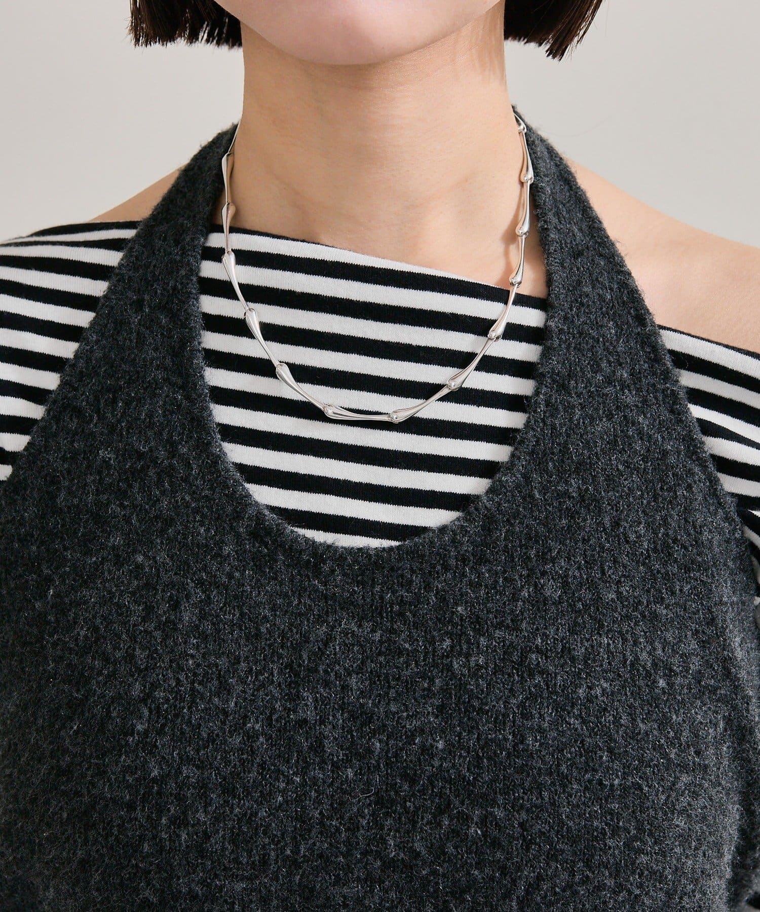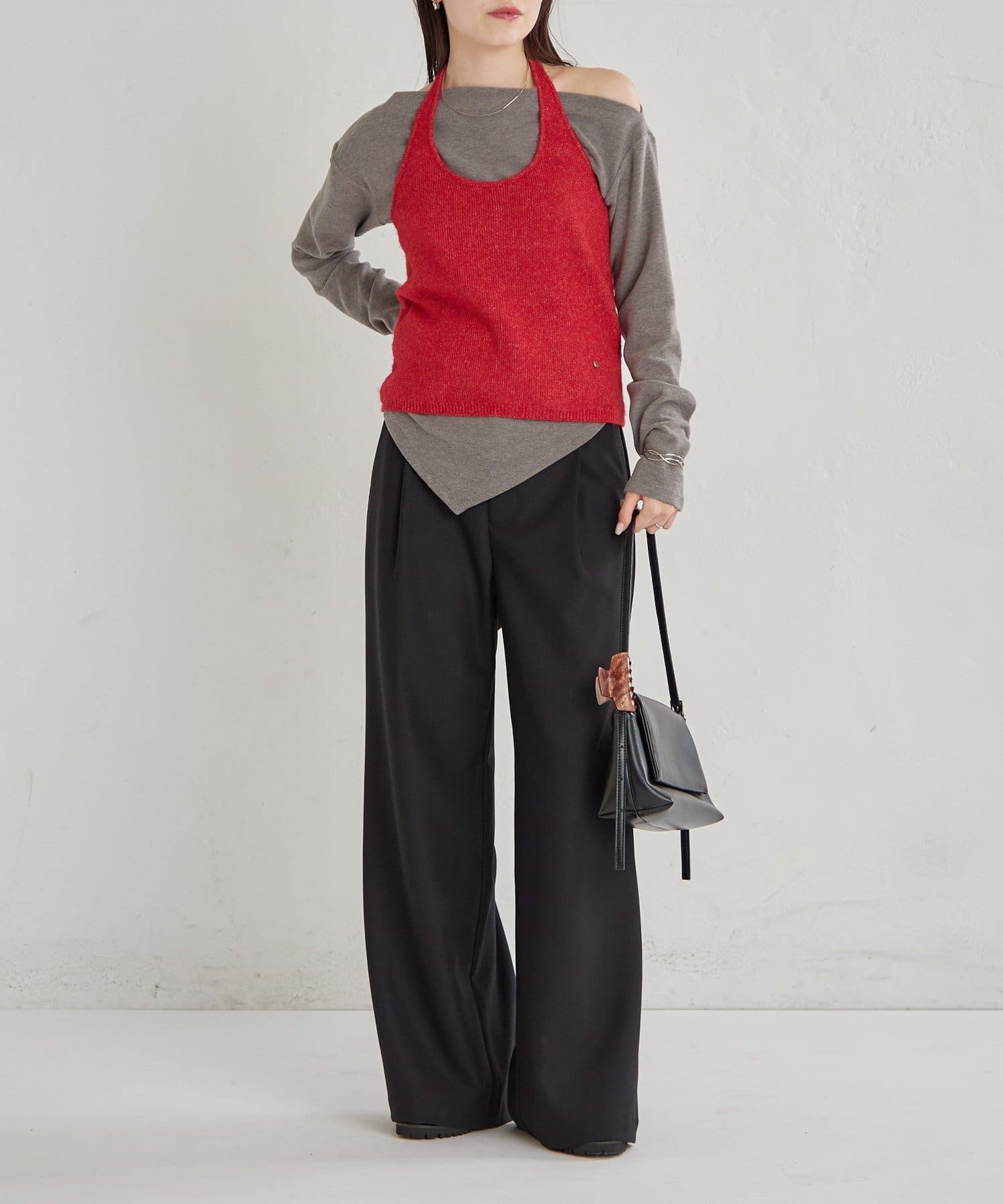 ・顔周りをすっきりと見せてくれるホルタービスチェで、こなれ感のあるスタイリングに仕上がります。