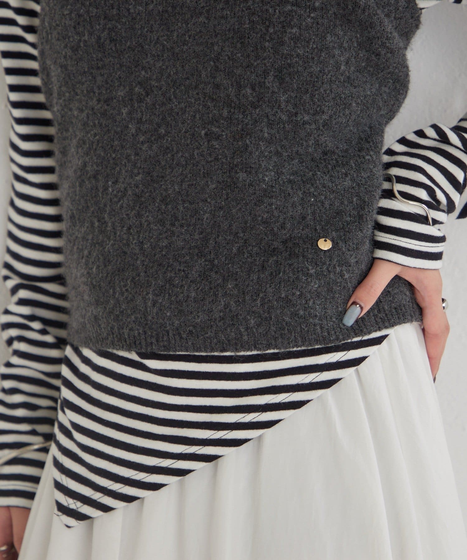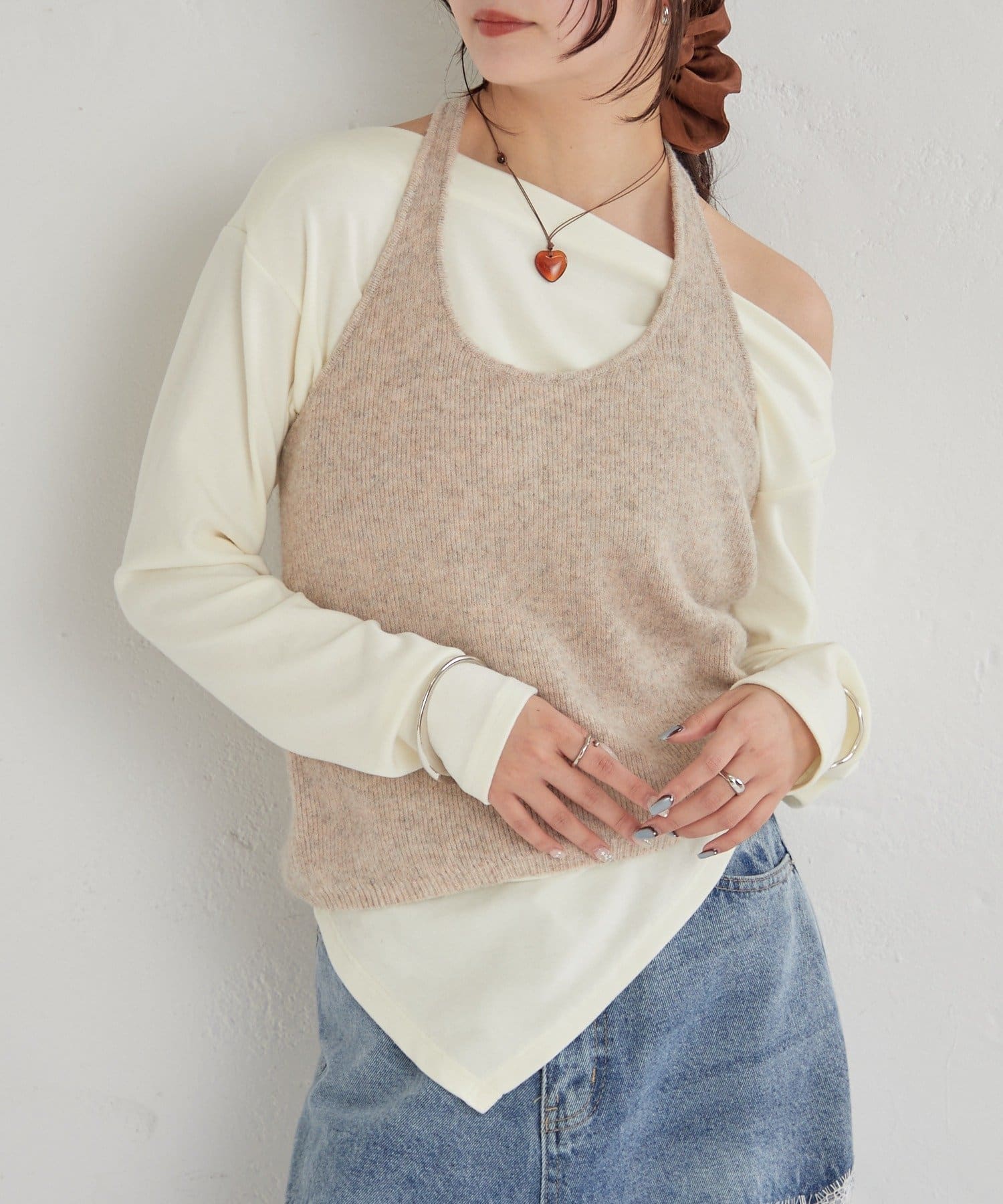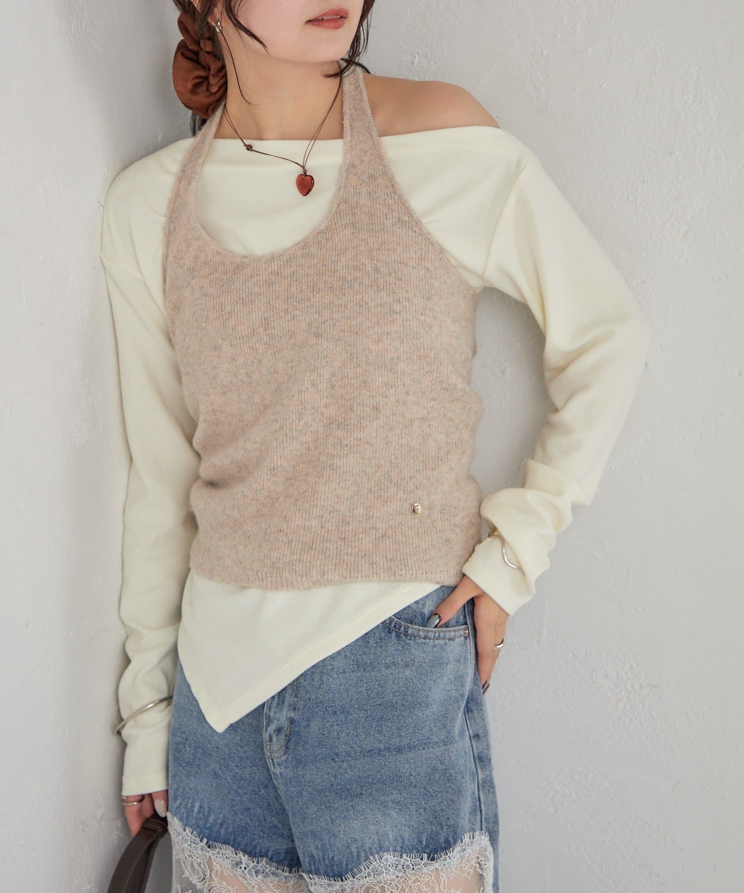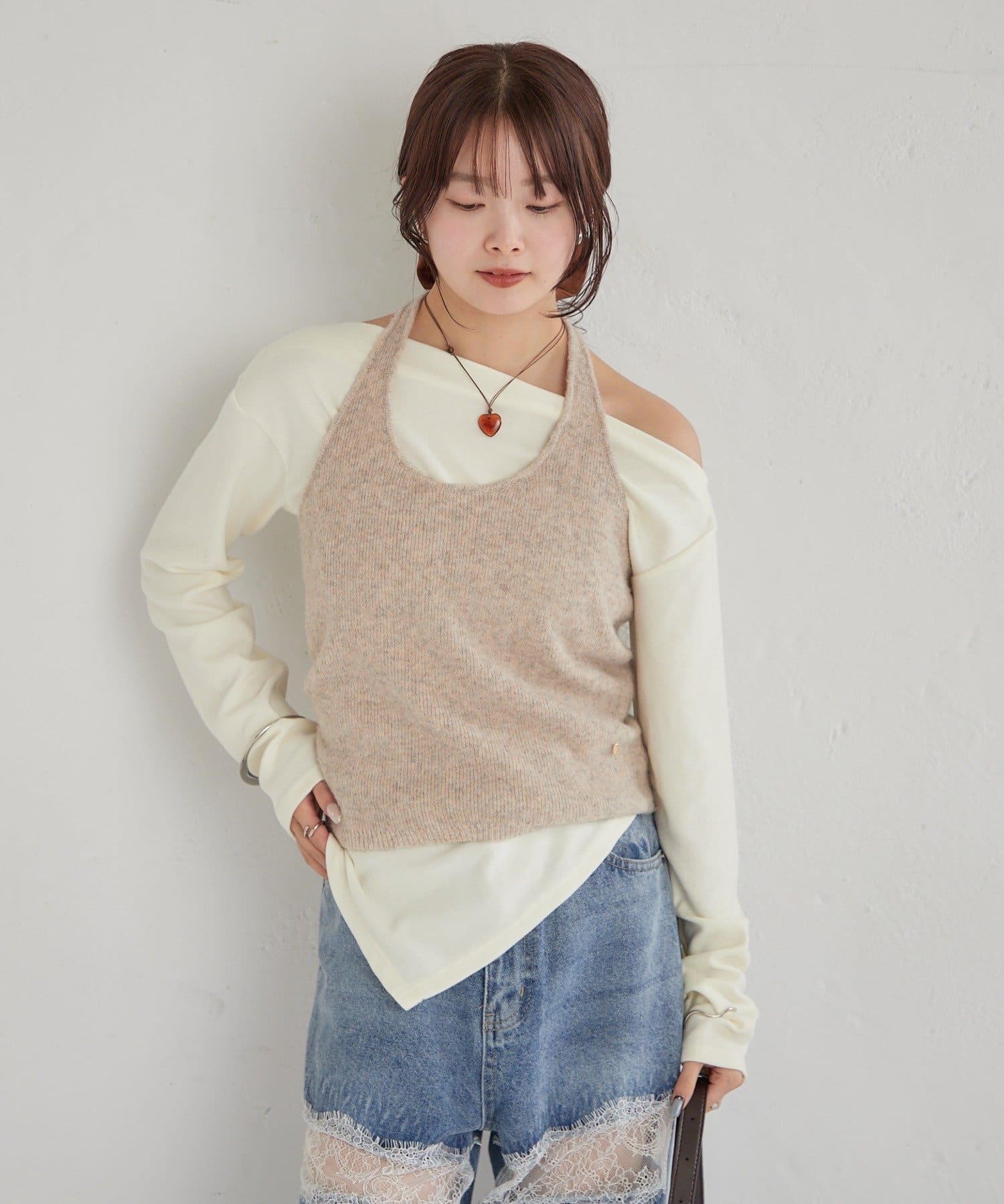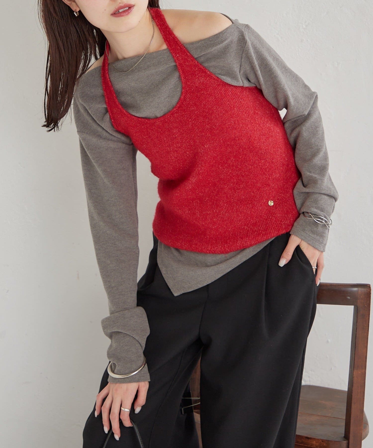 ・顔周りをすっきりと見せてくれるホルタービスチェで、こなれ感のあるスタイリングに仕上がります。