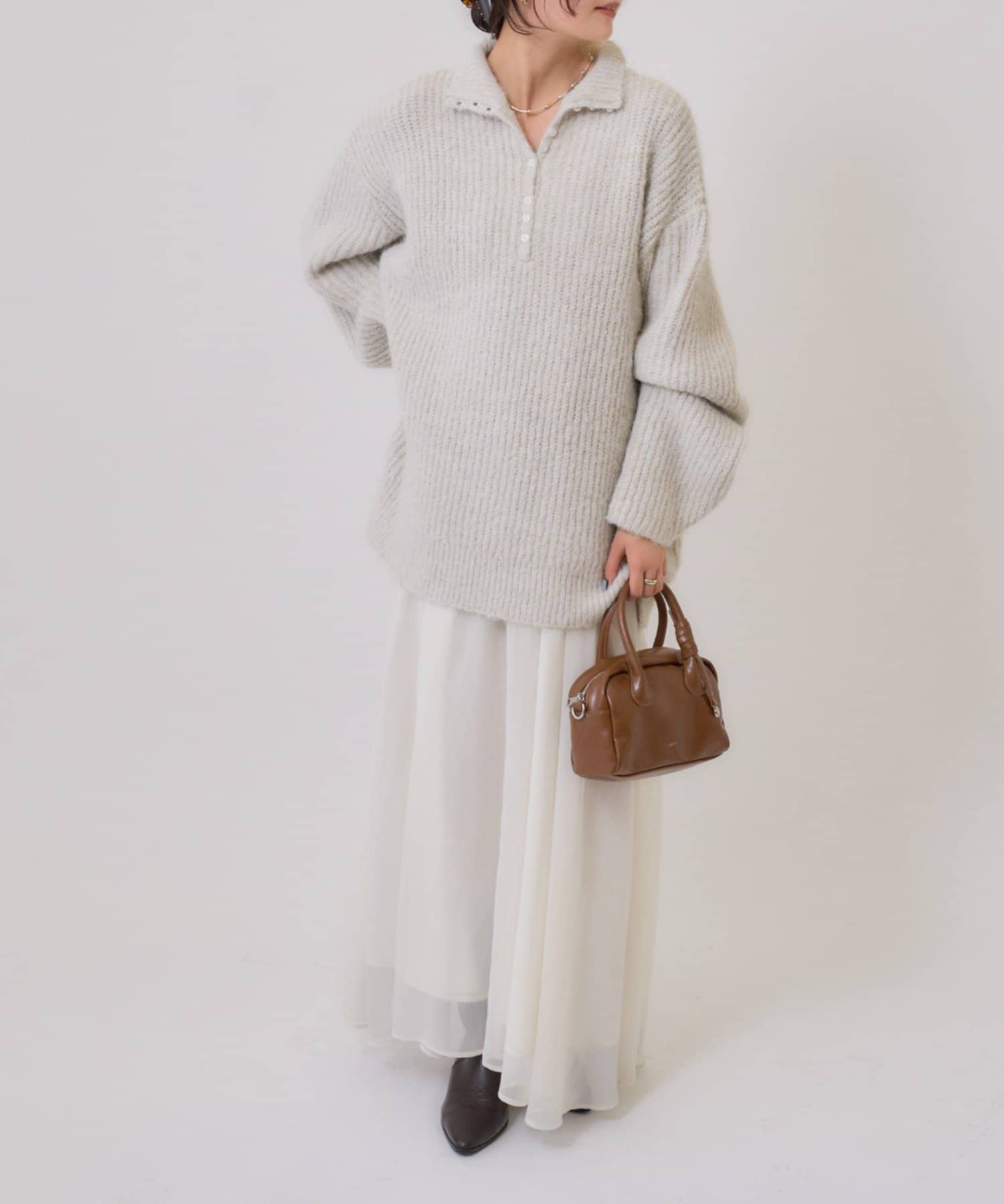 ・ふわふわニットはデニムやスラックス、ミニボトム×ブーツ合わせなど様々なスタイリングが叶います。