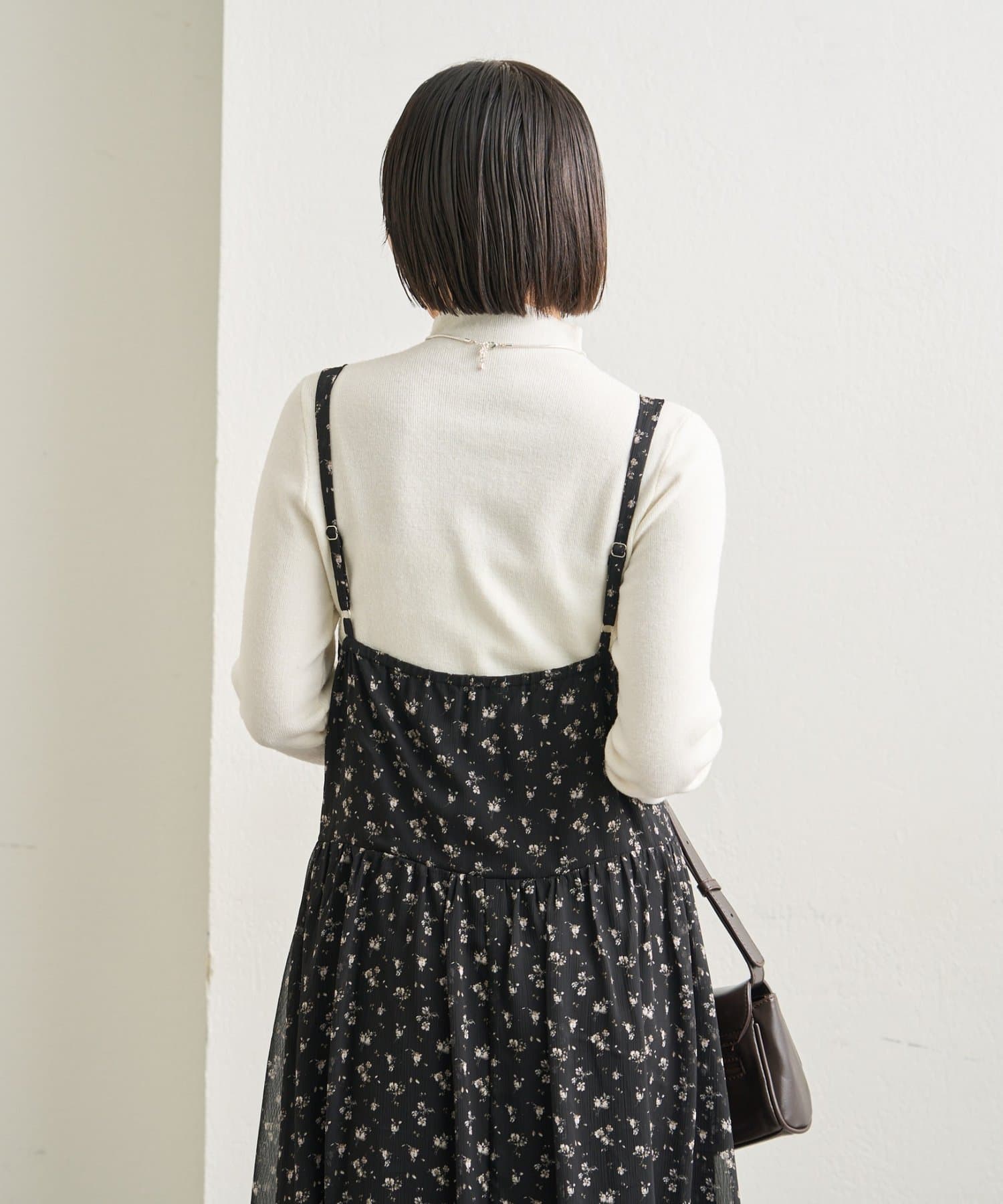 ・セットのニットとワンピースを合わせるだけで、旬のレイヤードスタイルが完成します。