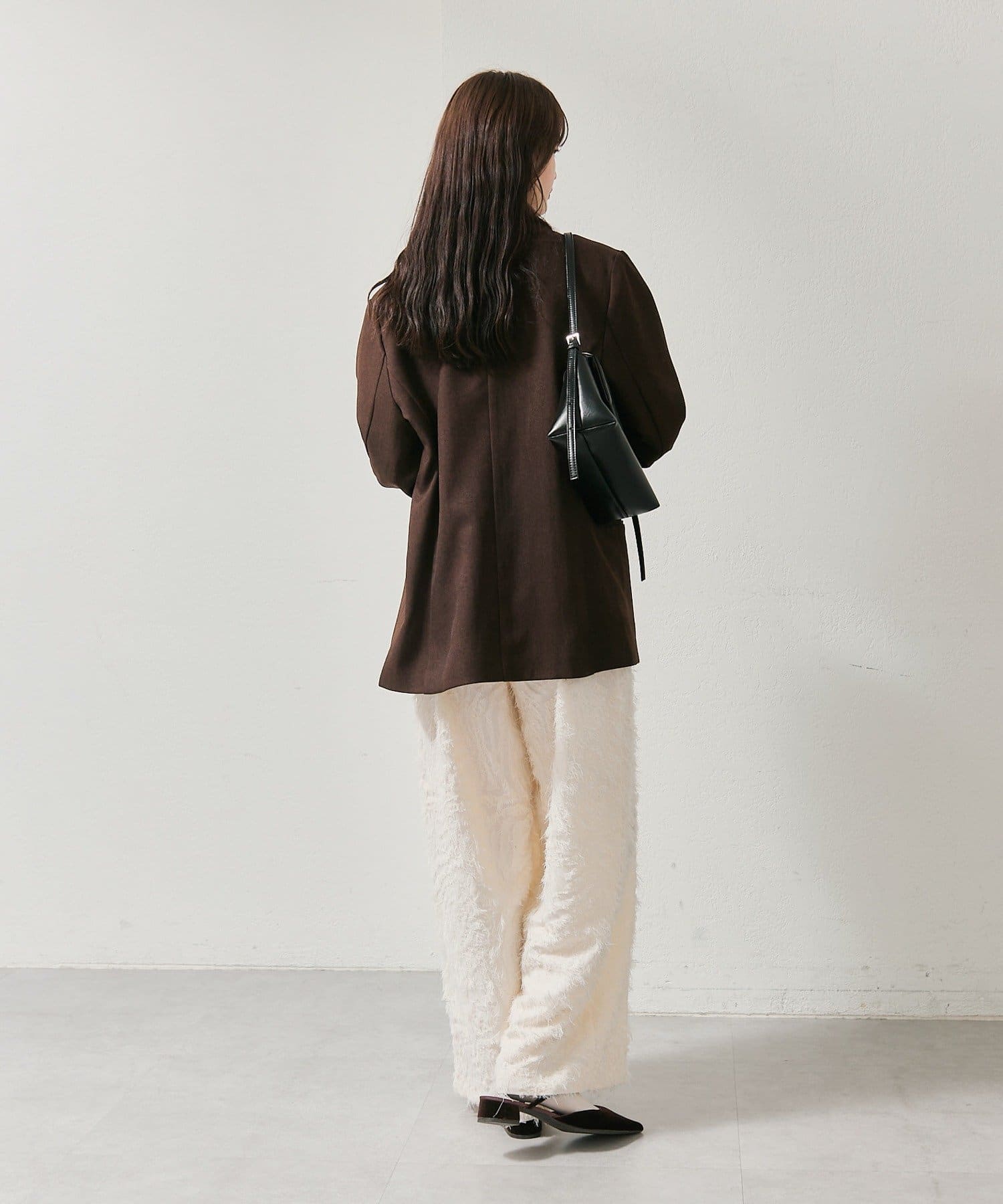 ・足元はローファーやブーツでクールにまとめたり、ヒールを合わせてフェミニンスタイルにも。