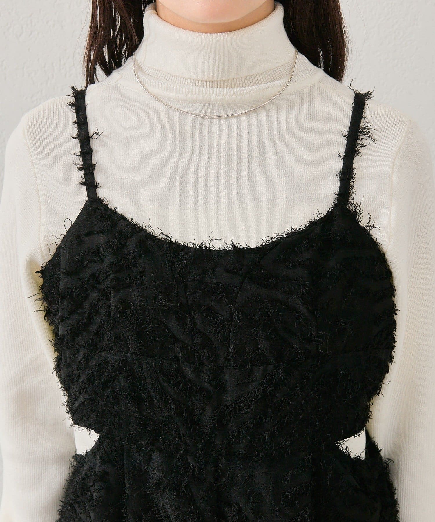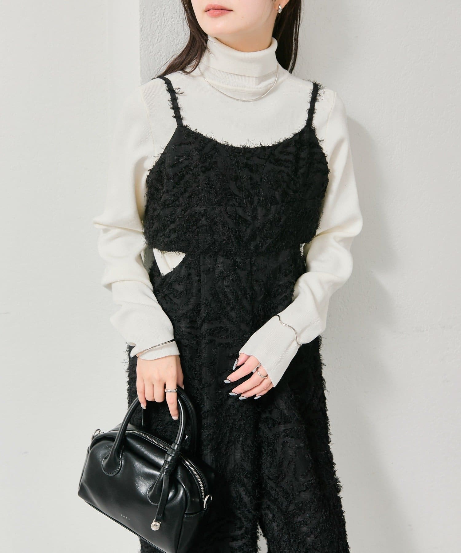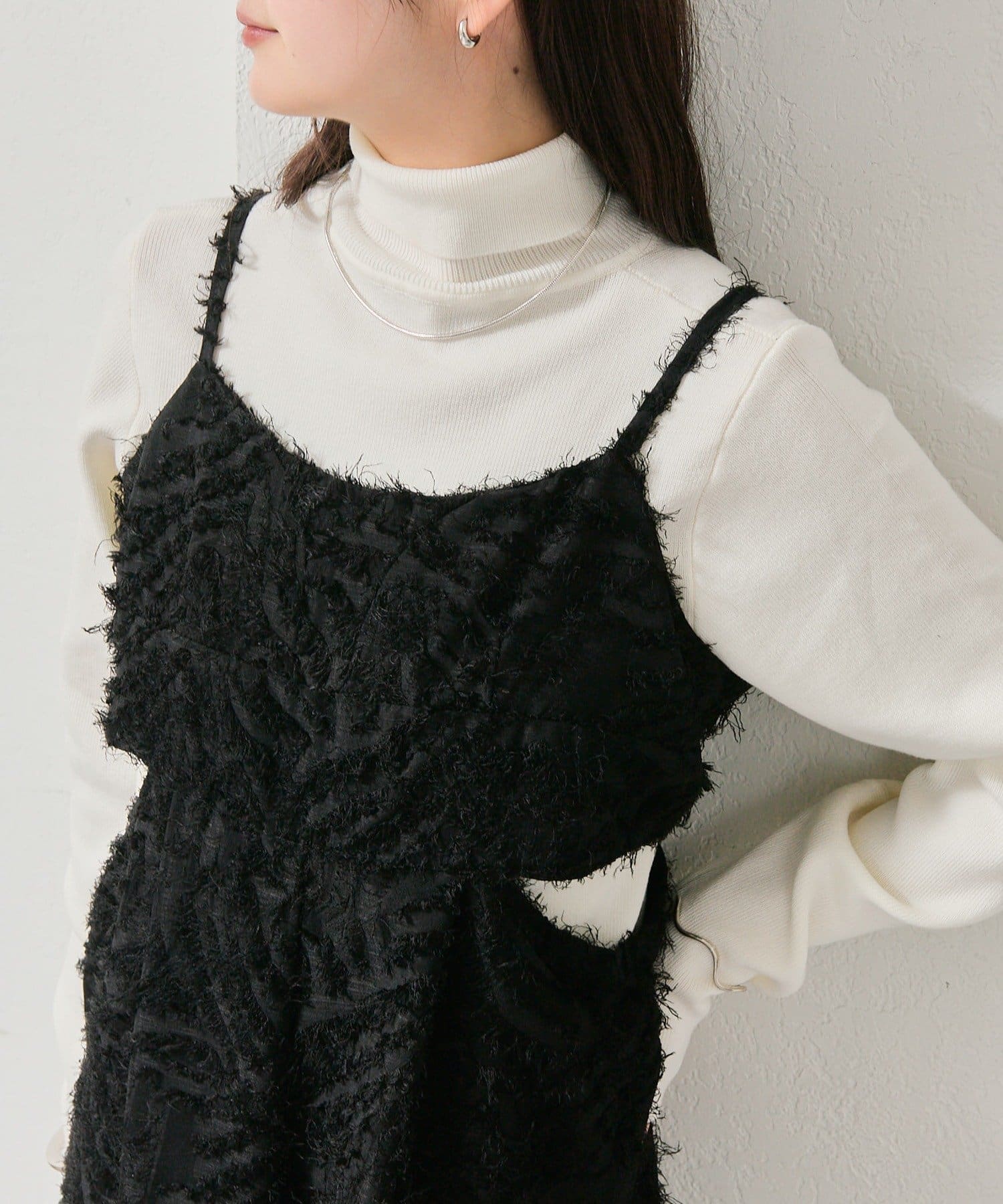 ・タートルニットやシャツをレイヤードして、秋冬らしいスタイリングに。