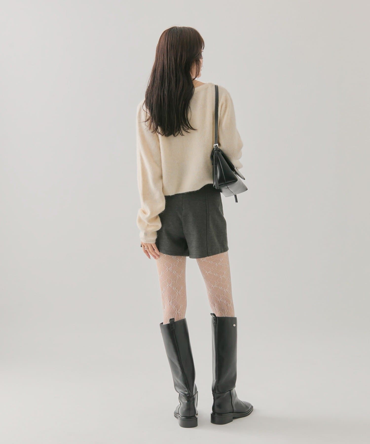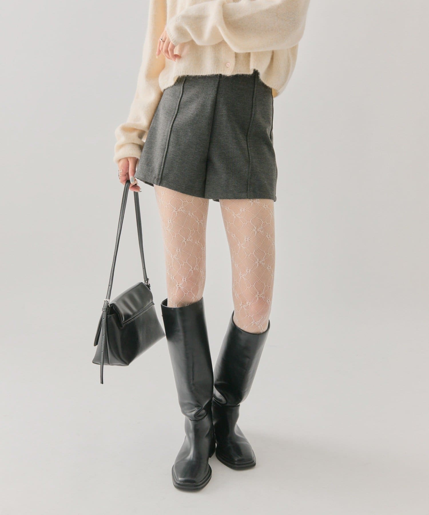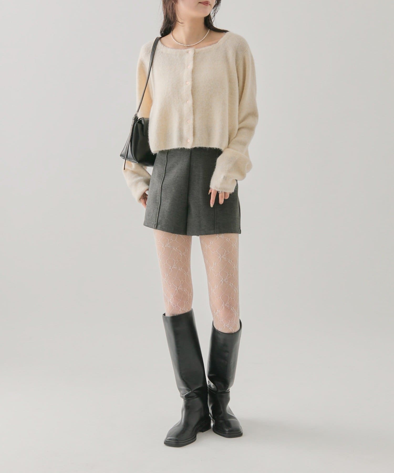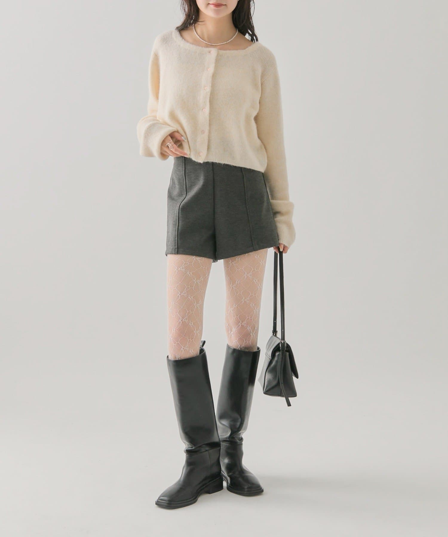・タイツとブーツ合わせのスタイリングも女子っぽく決まります。