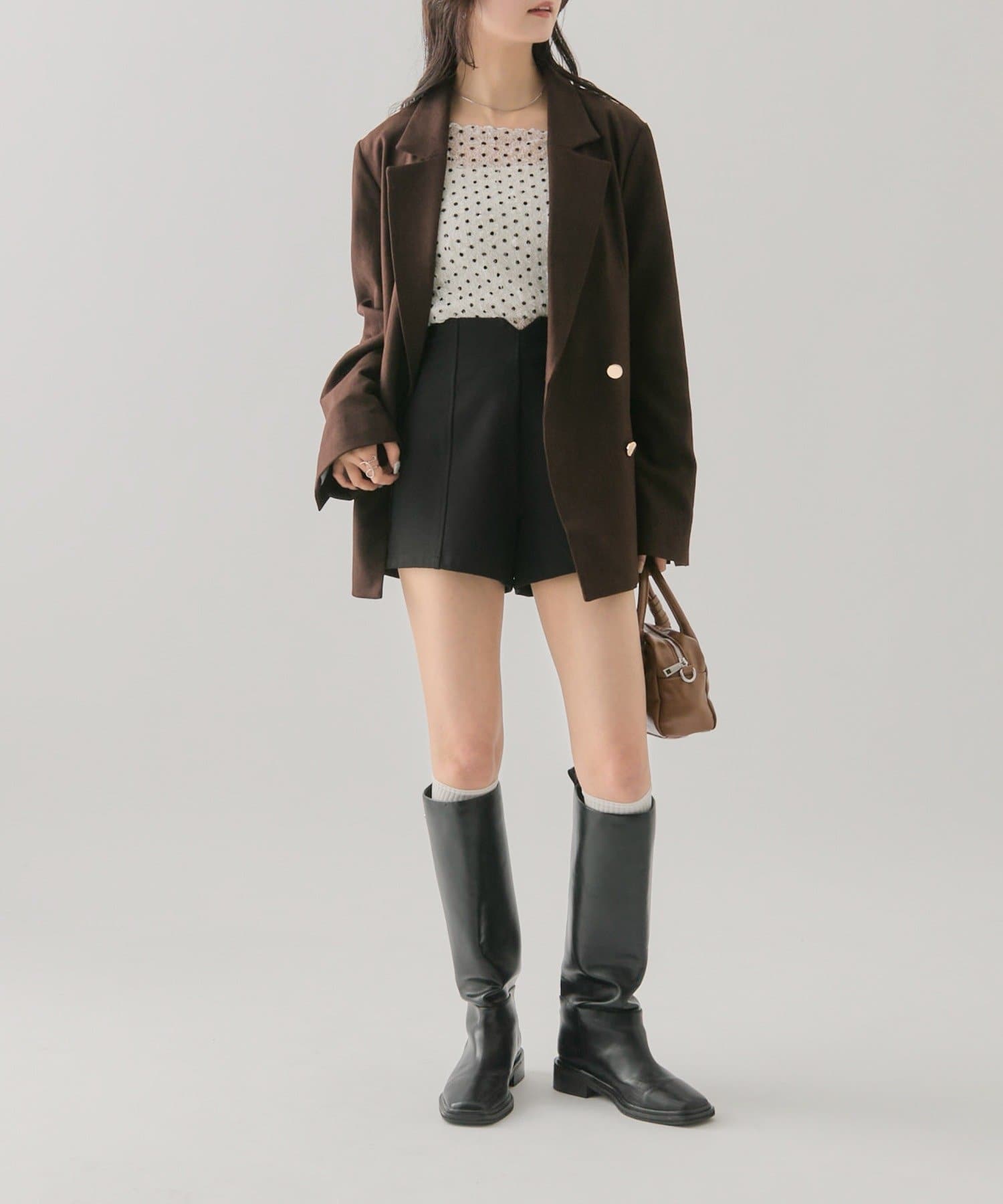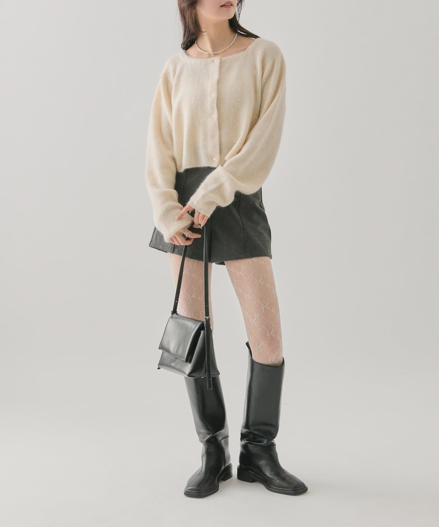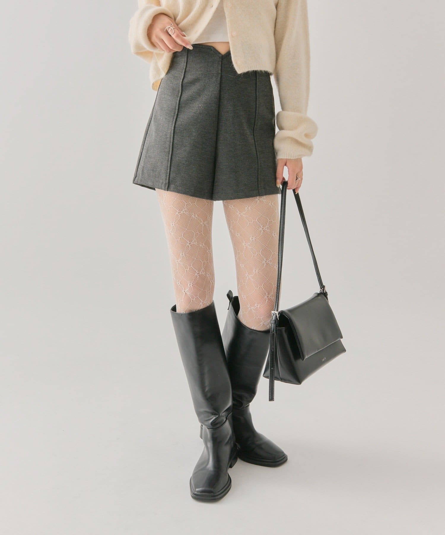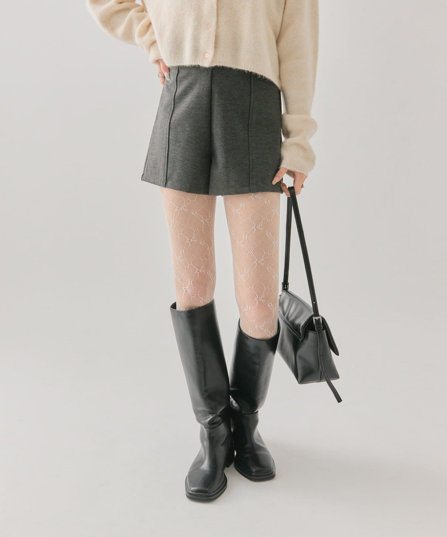 ・タイツとブーツ合わせのスタイリングも女子っぽく決まります。