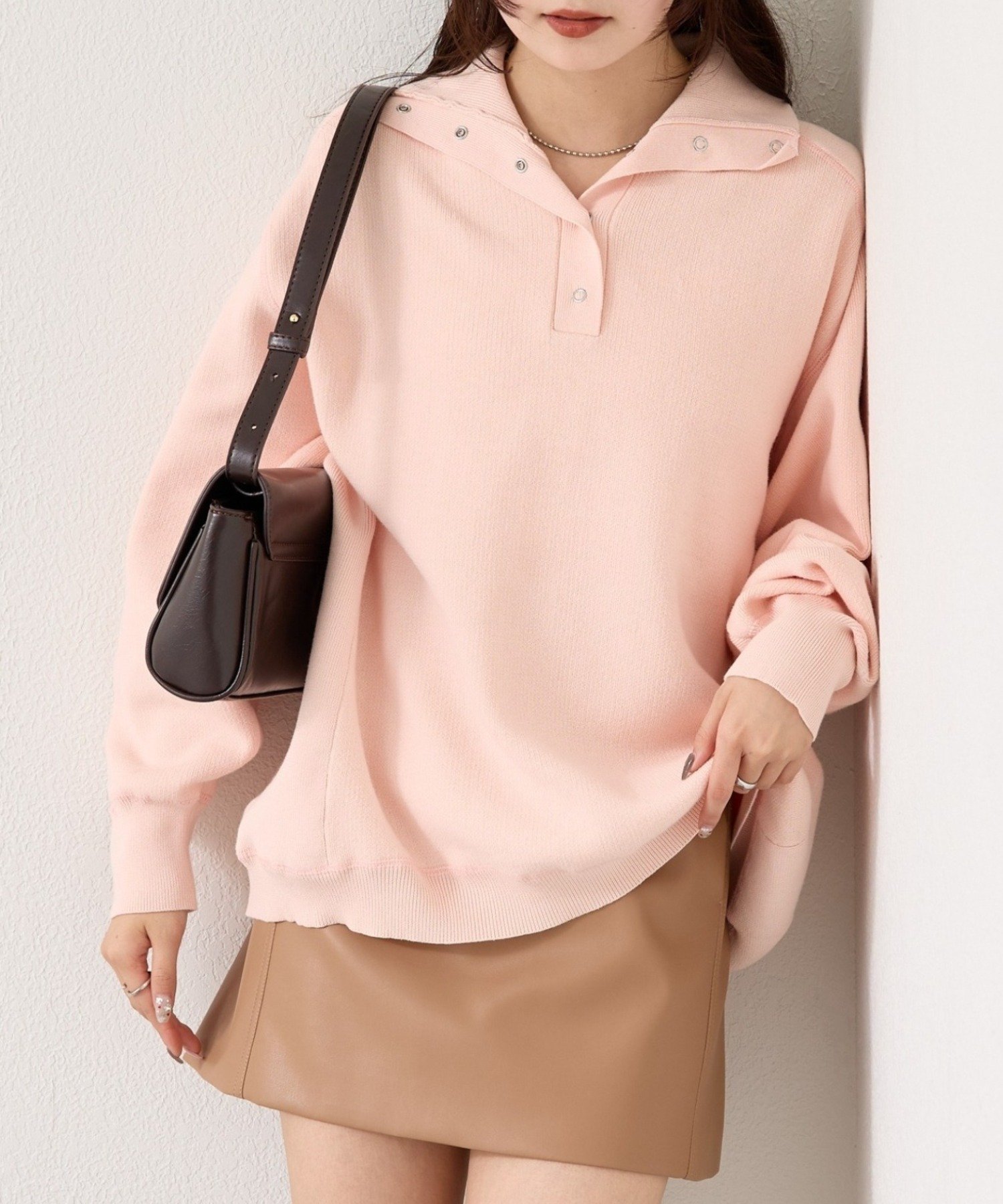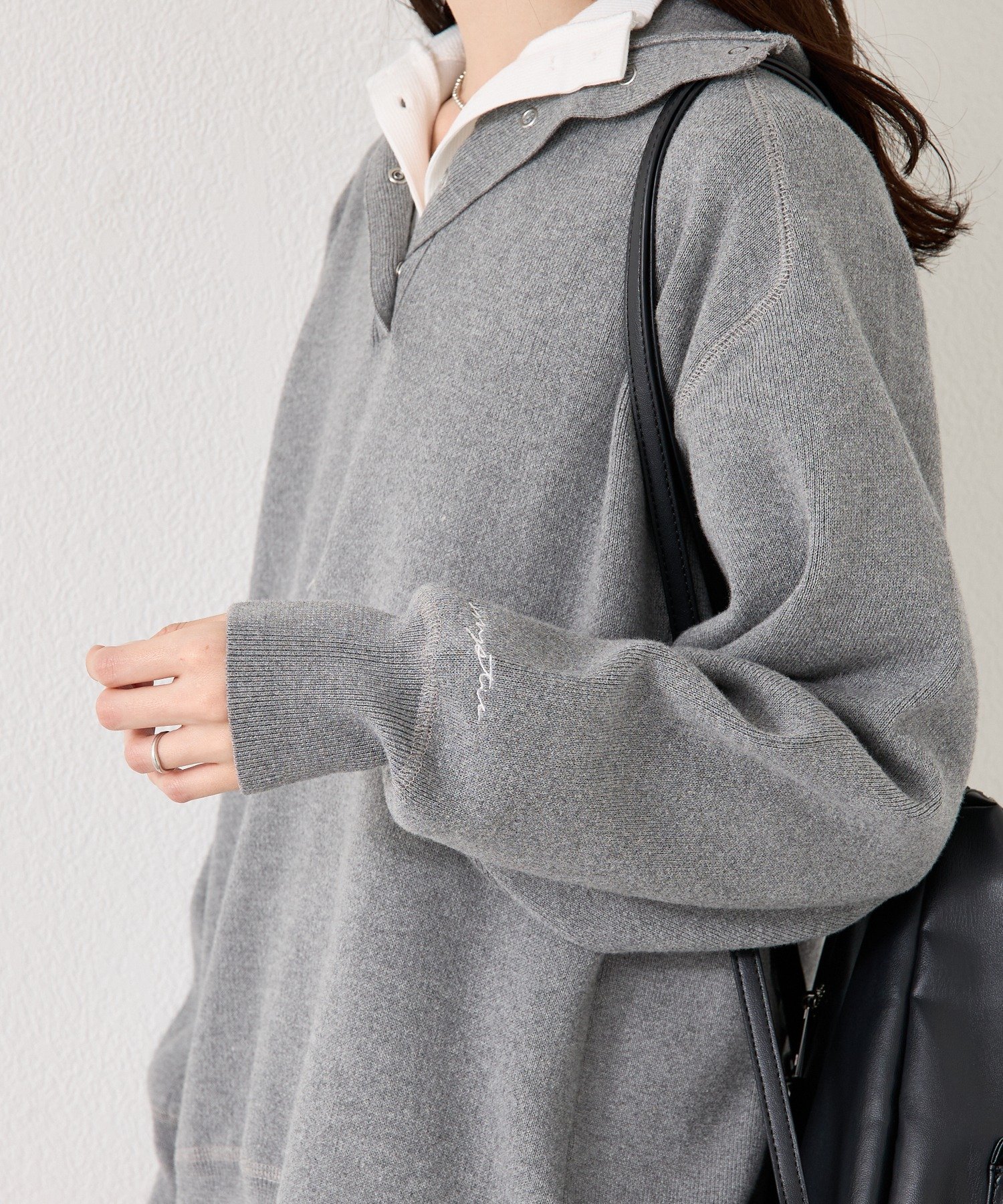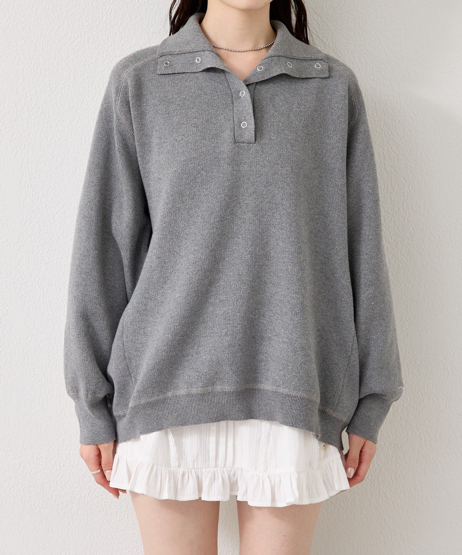 ・スウェットのようなカジュアルさを、表面感のあるニットで上品に仕上げたヘンリートップス。