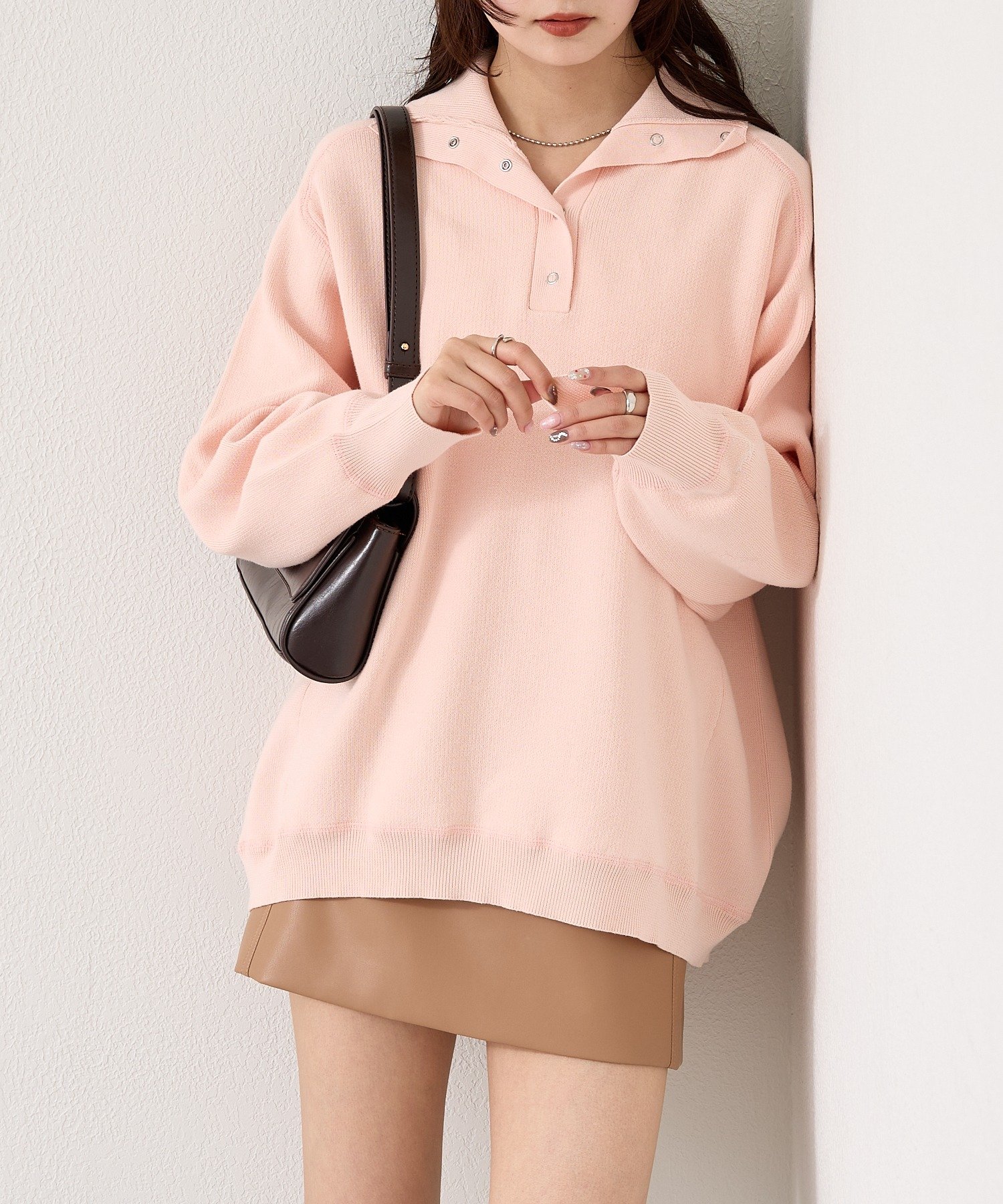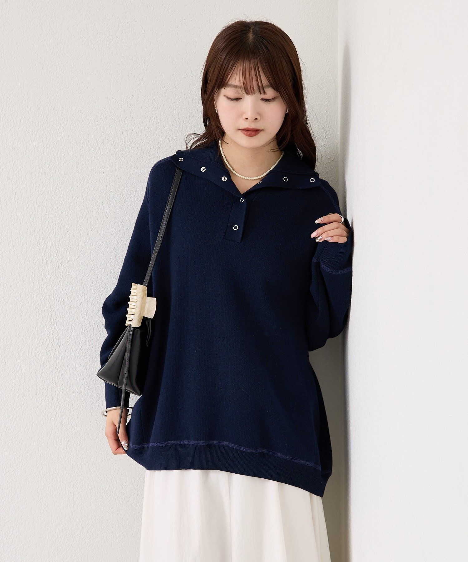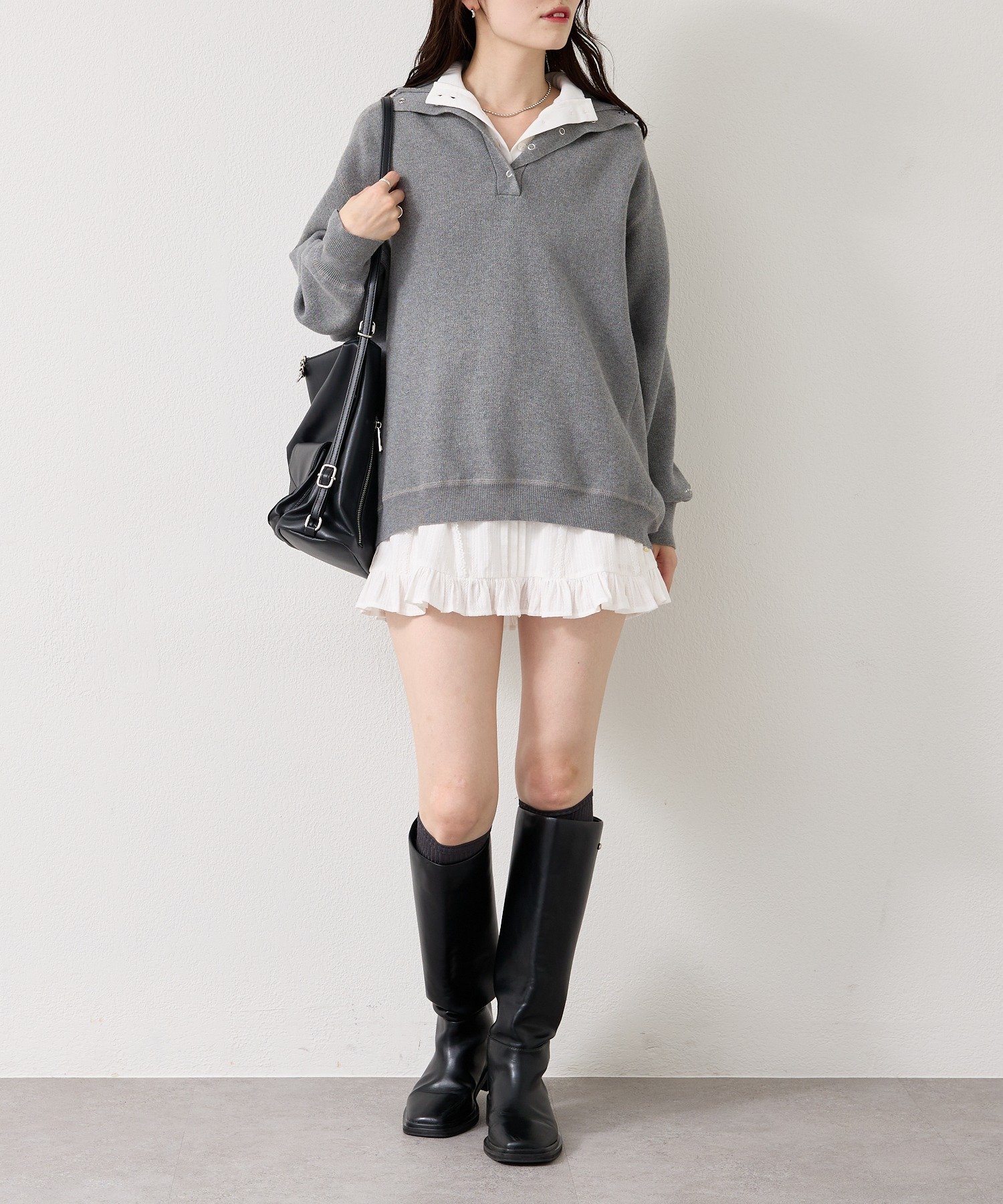・スウェットのようなカジュアルさを、表面感のあるニットで上品に仕上げたヘンリートップス。