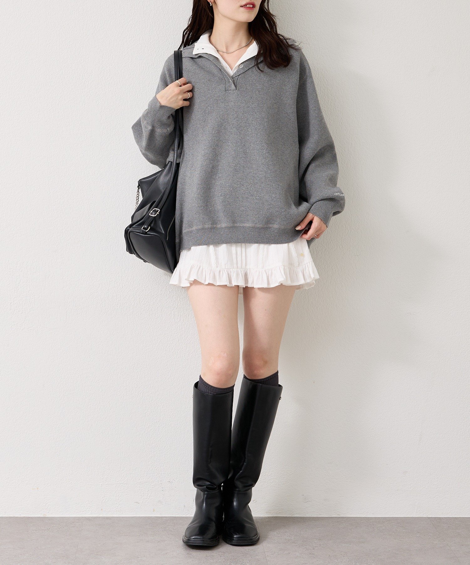 カジュアルなトップスなので、ミニボトムやロングスカートで甘さをプラスするのも◎