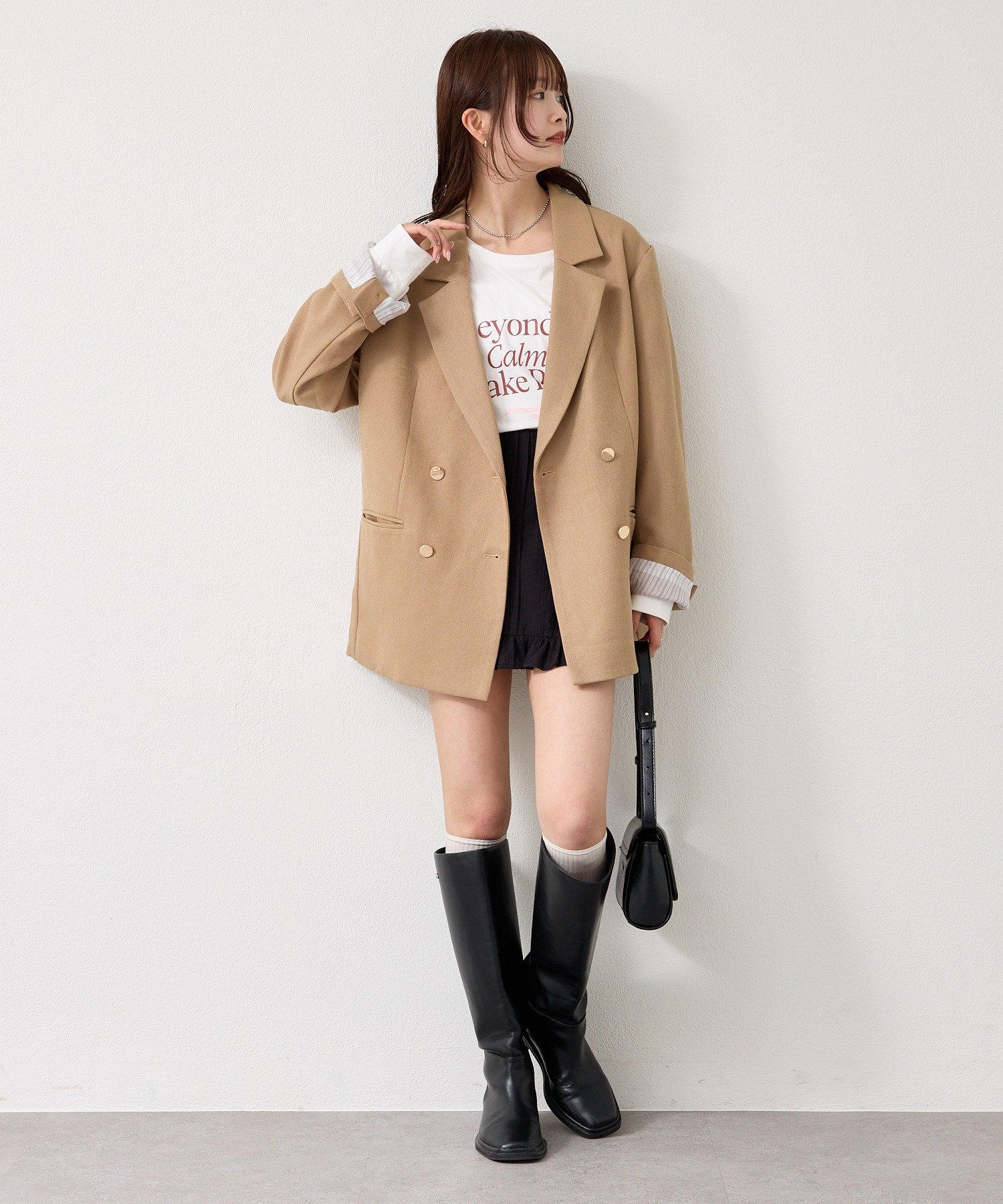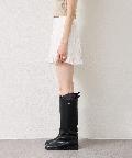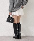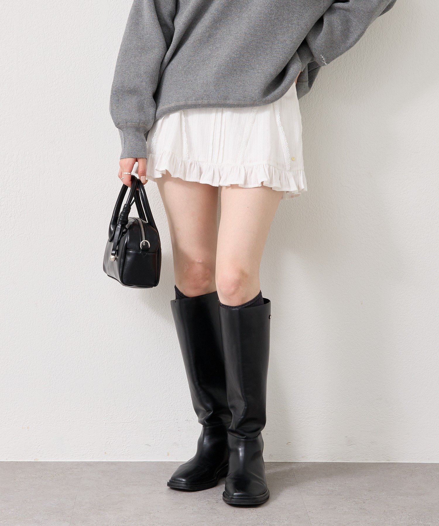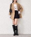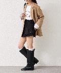足元はロングブーツを合わせるとスッキリバランスよく決まります。