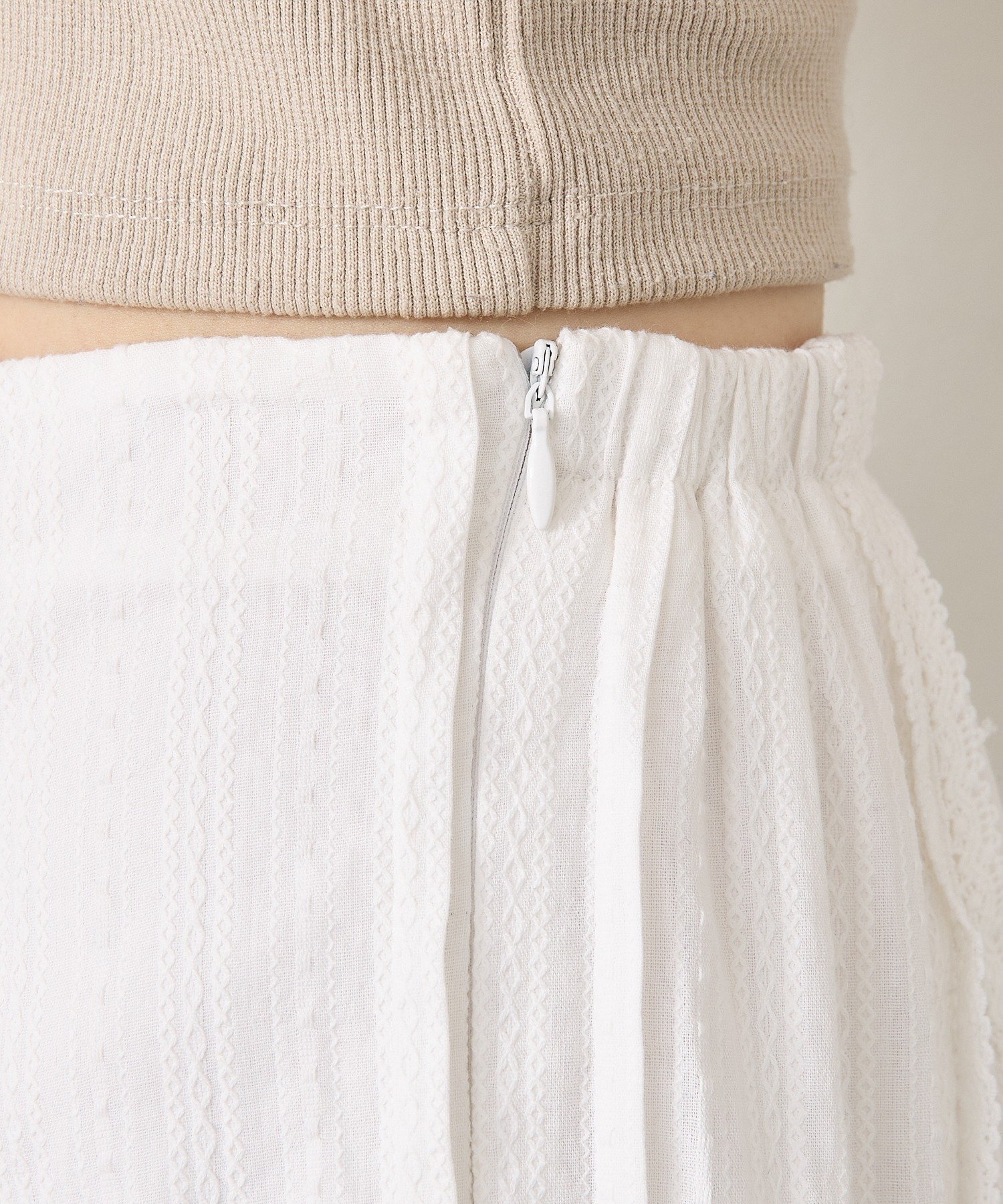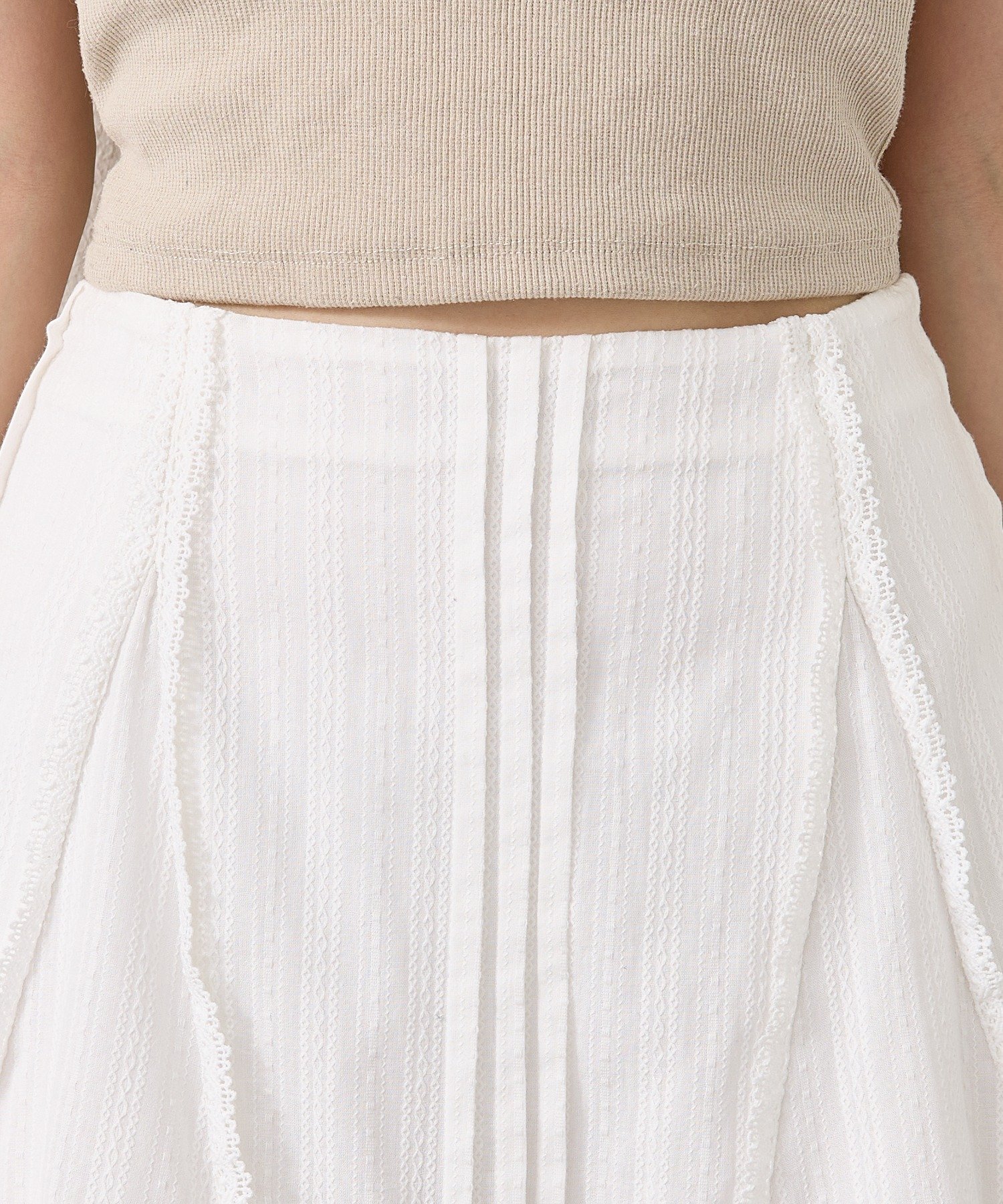 フロント左側のプレートがワンポイントになって可愛いスカートです。