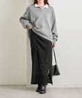 ・サイドのギャザーが女性らしく、裾のスリットが抜け感を演出してくれます。