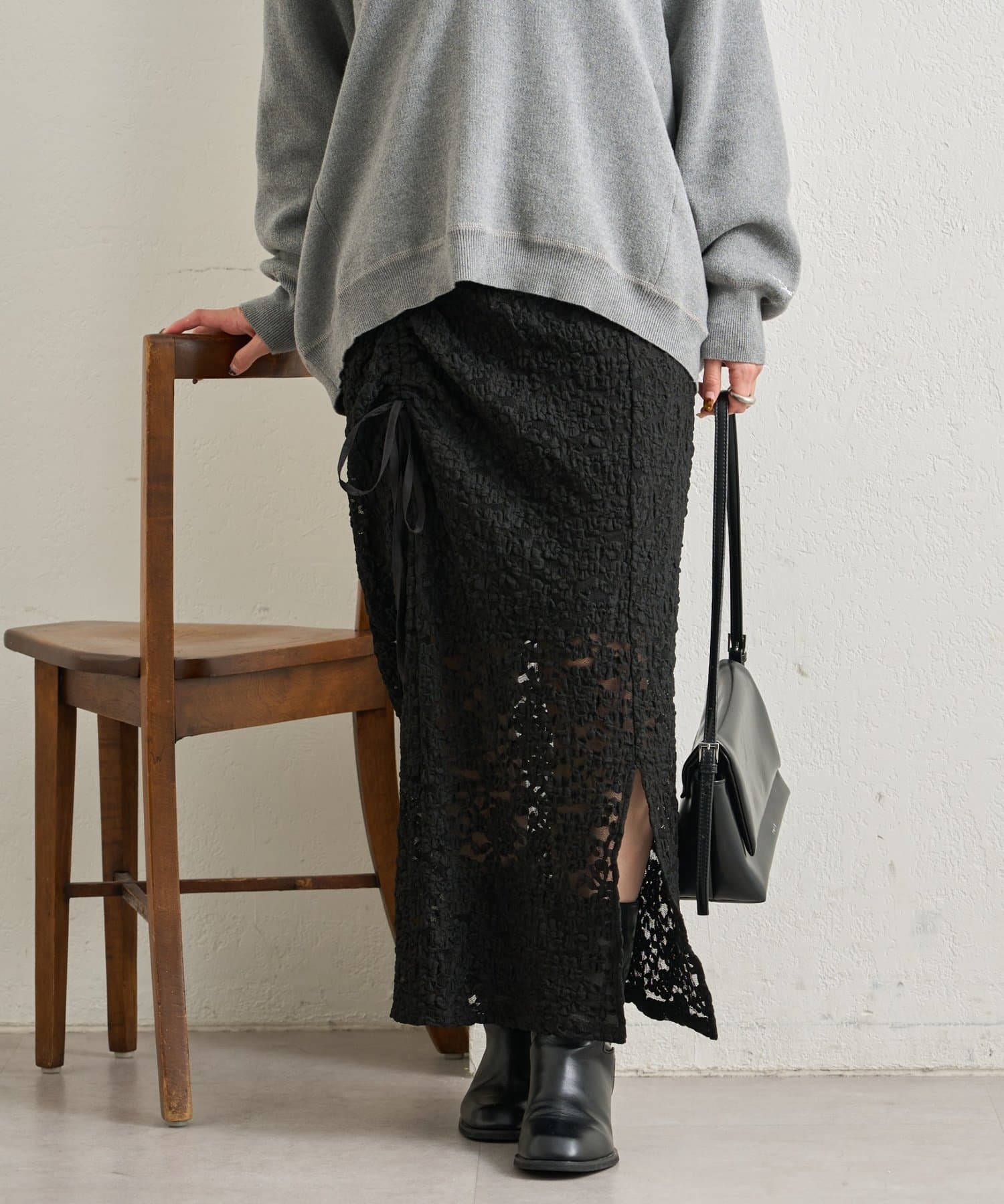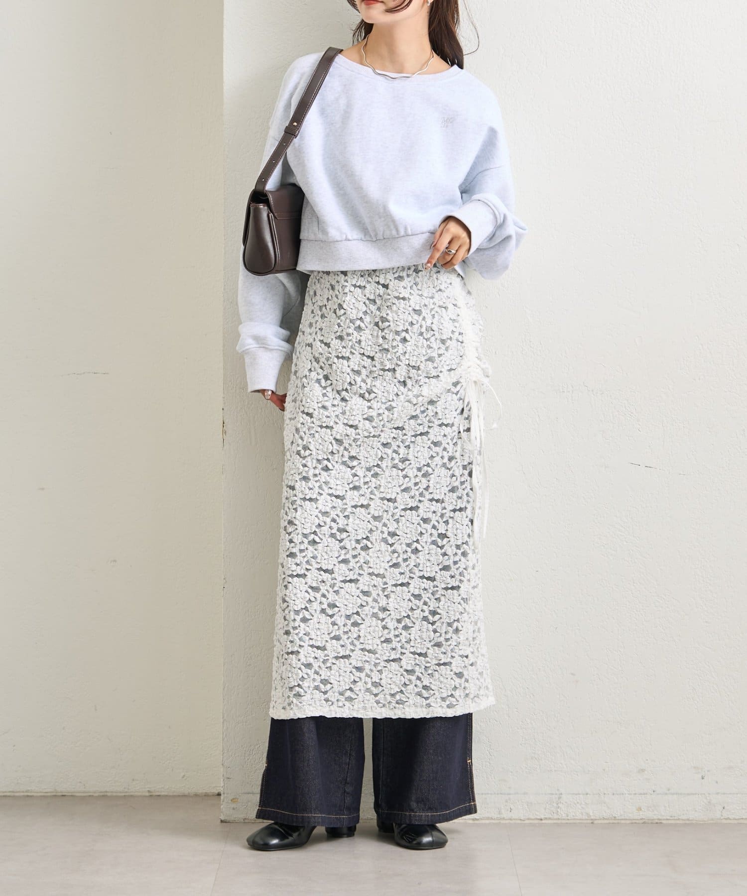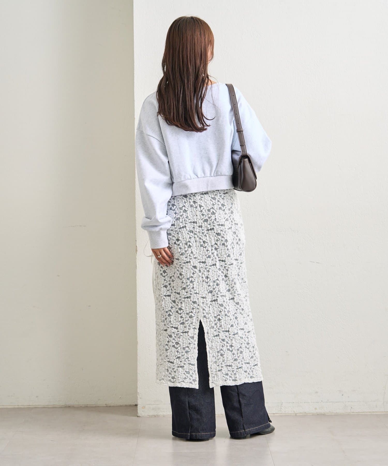 ボトムスに重ねてレイヤードスタイルにも◎着回しができるレーススカート