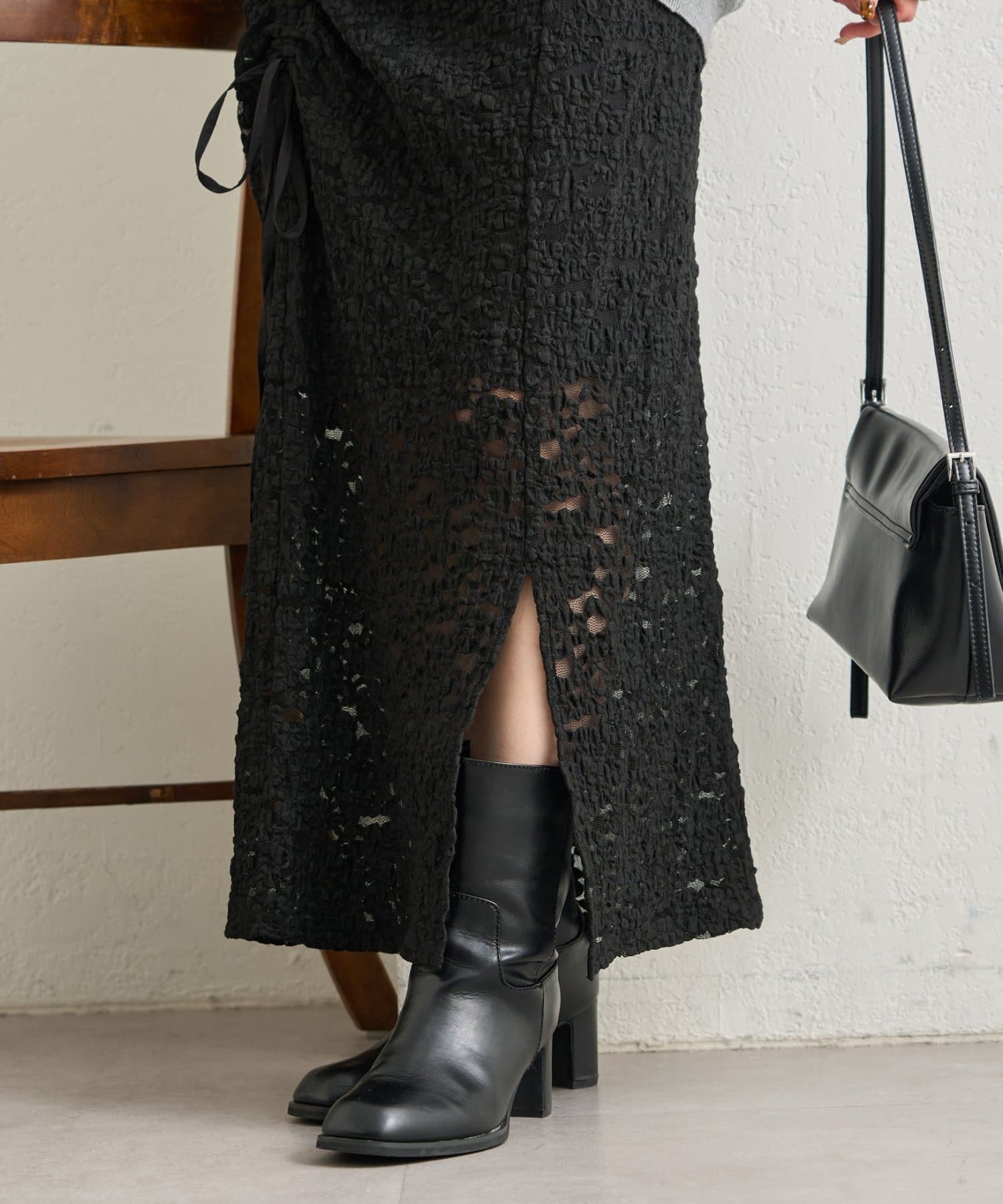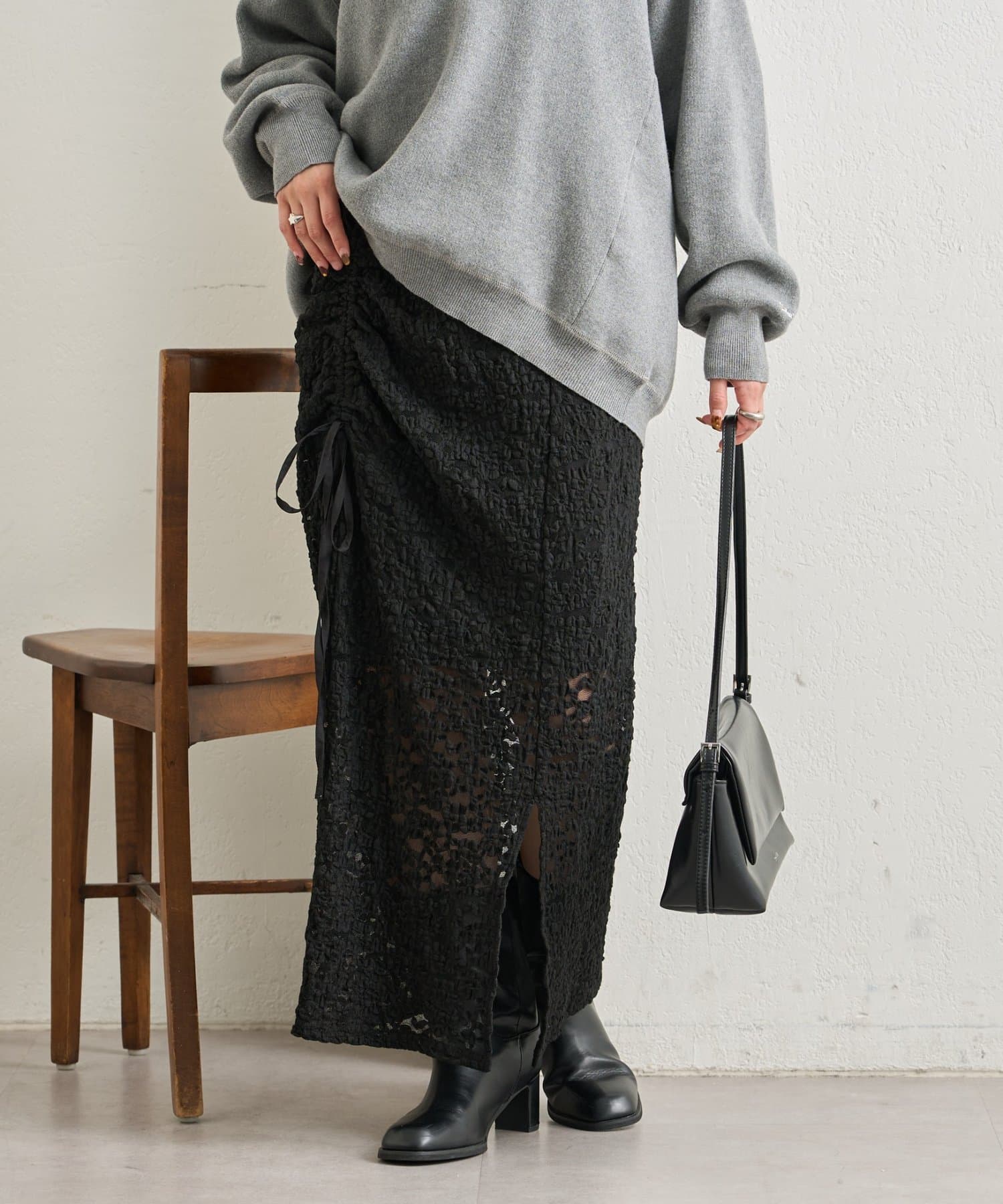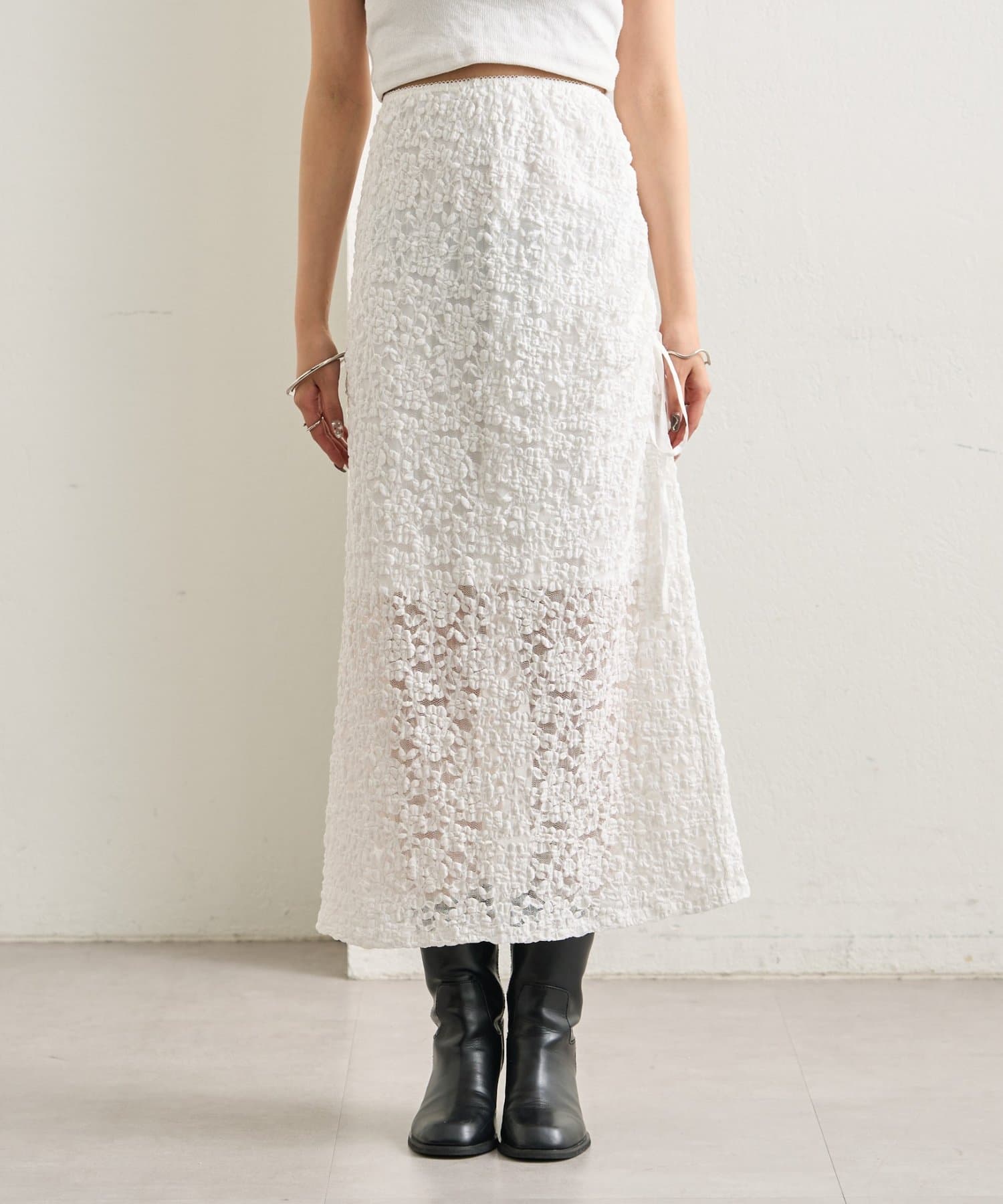 ボトムスに重ねてレイヤードスタイルにも◎着回しができるレーススカート