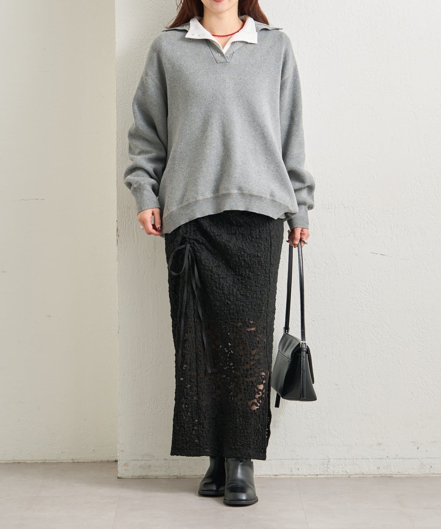 ・程よい透け感で、レース素材がスタイリングに甘さをプラス。