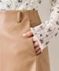 ・トレンドのフェイクレザーで、上品な光沢感が魅力的なミニスカート。
