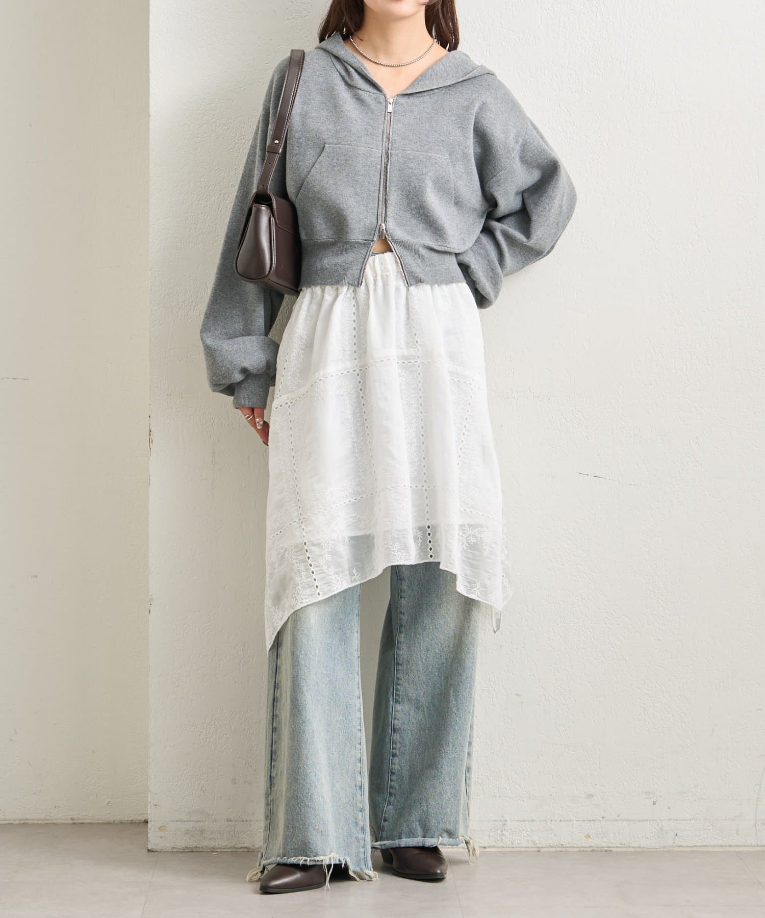 ・いつものボトムに重ねるだけで一気にトレンド感の出るアイテムです。