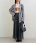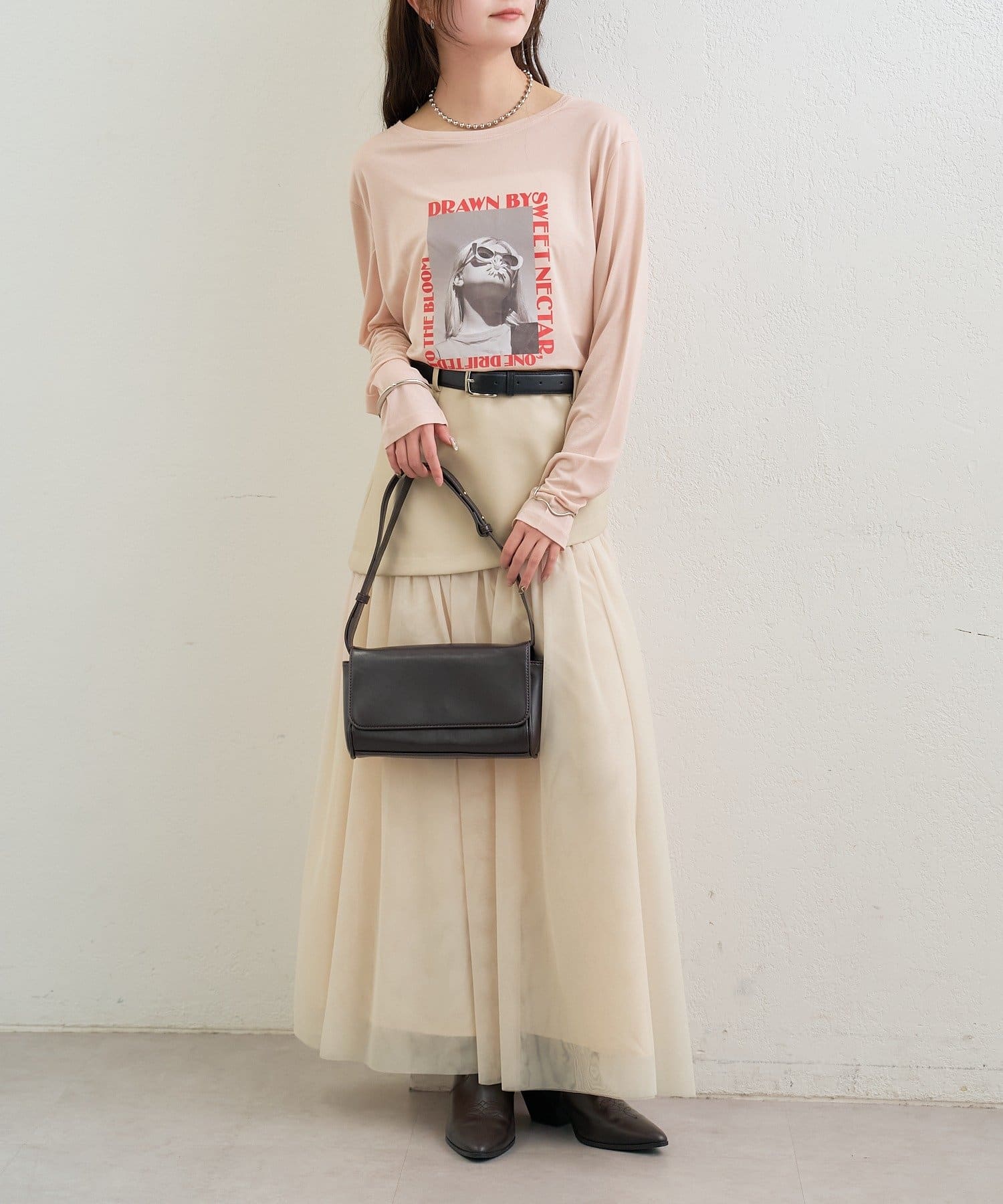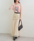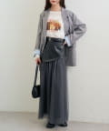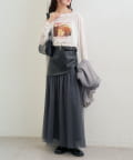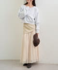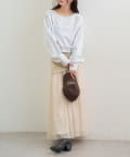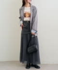・シンプルなトップスを合わせてスカートを主役にしたスタイリングに。