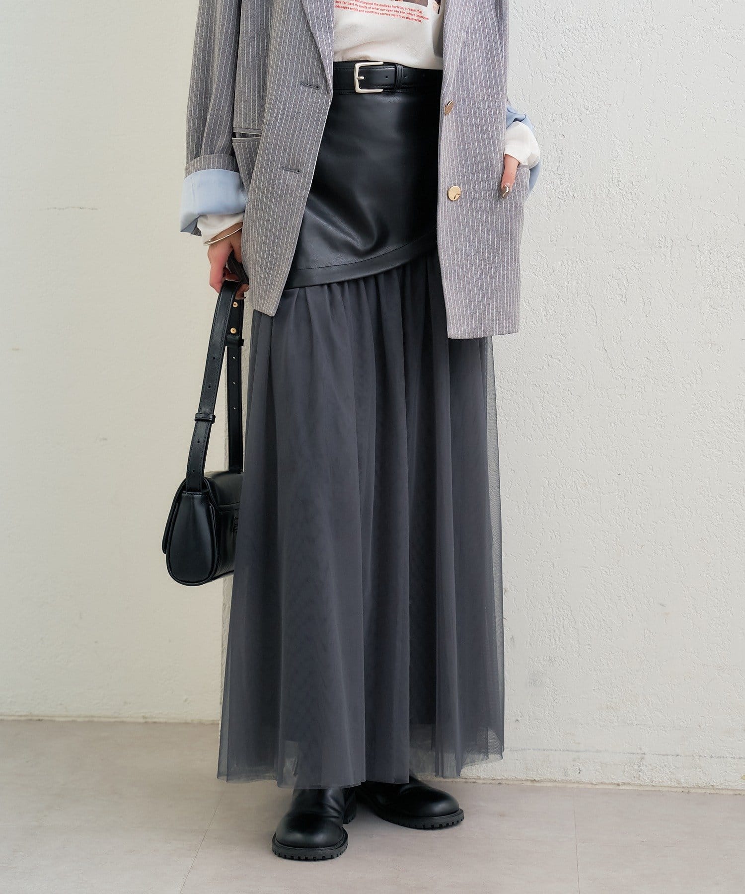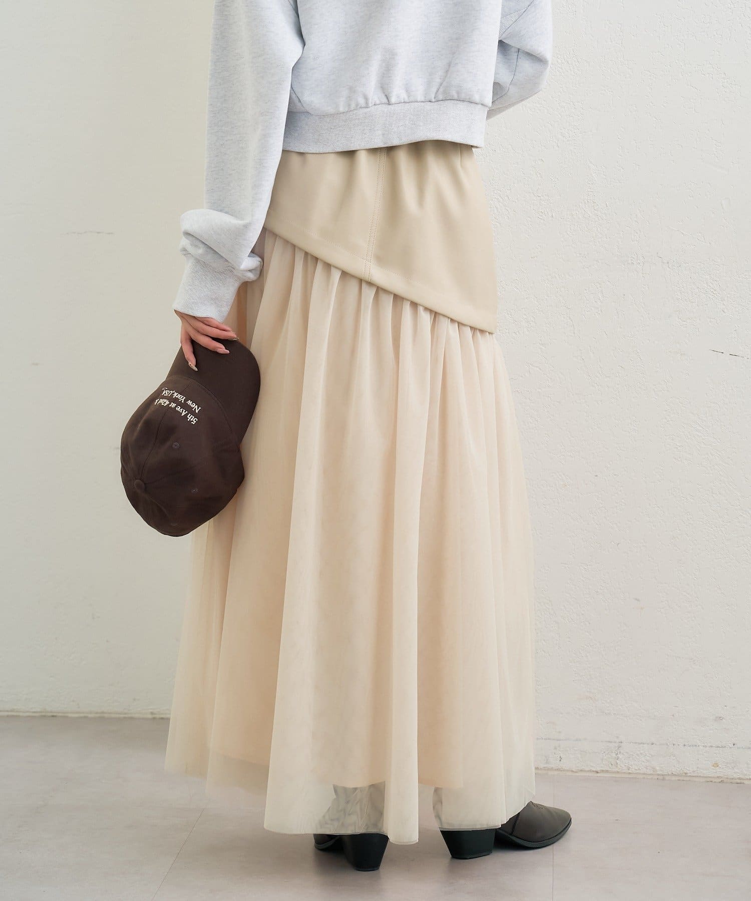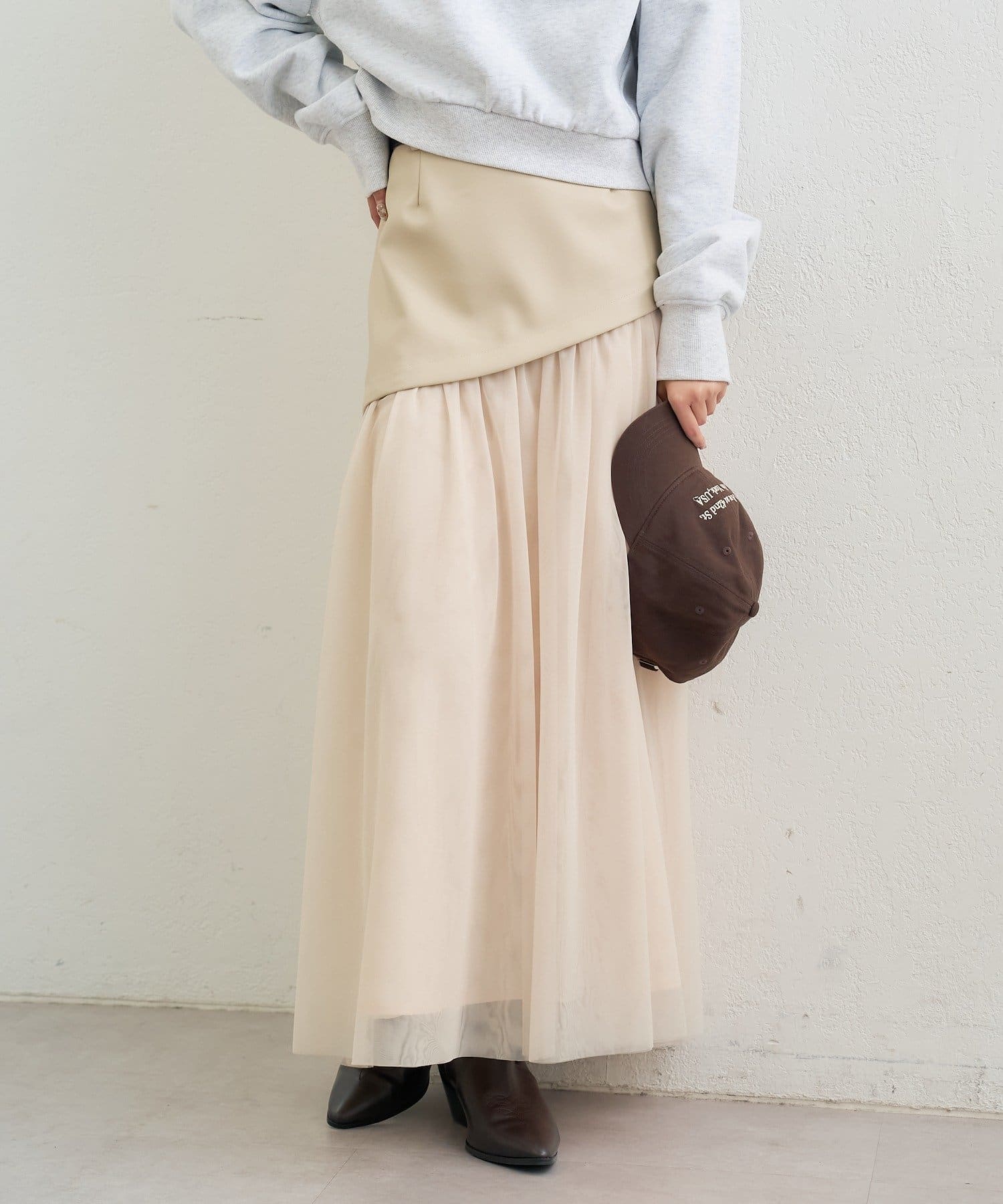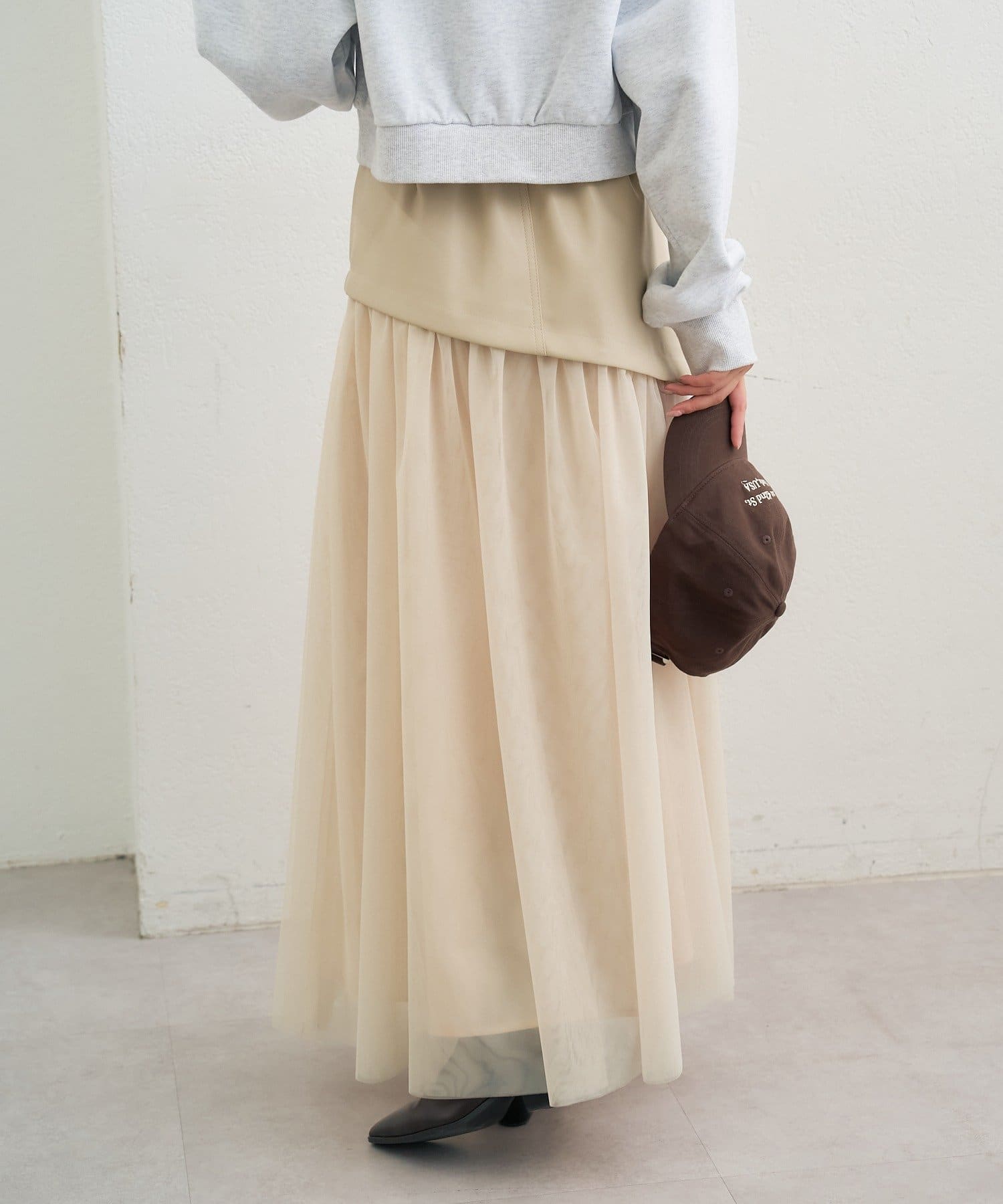 異素材レイヤードで甘さ控えめなチュールスカートが登場!