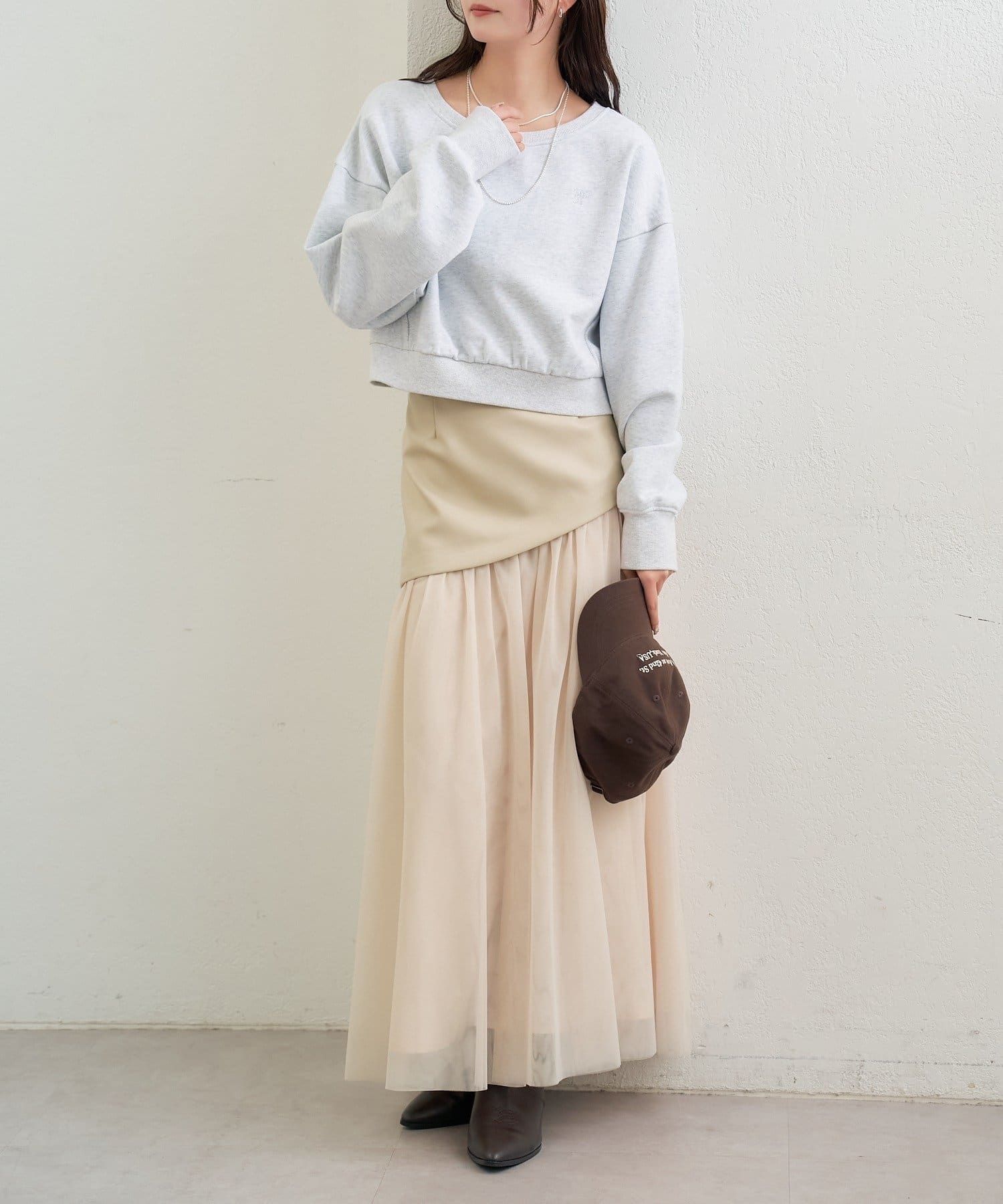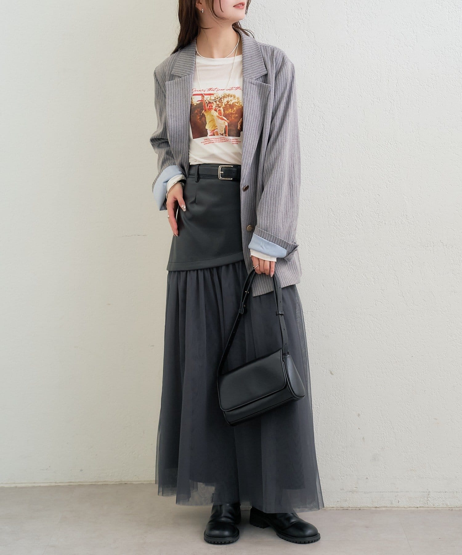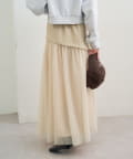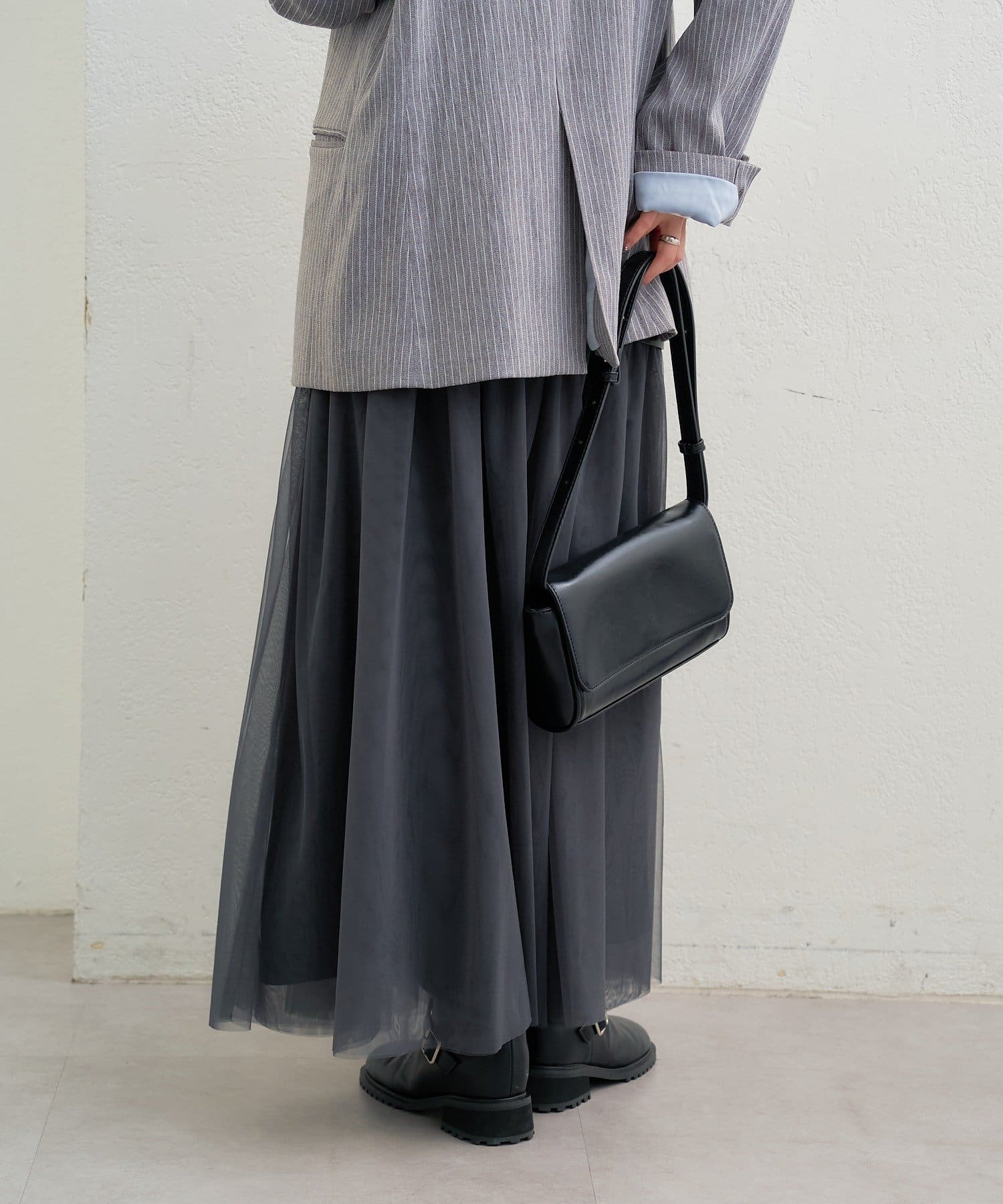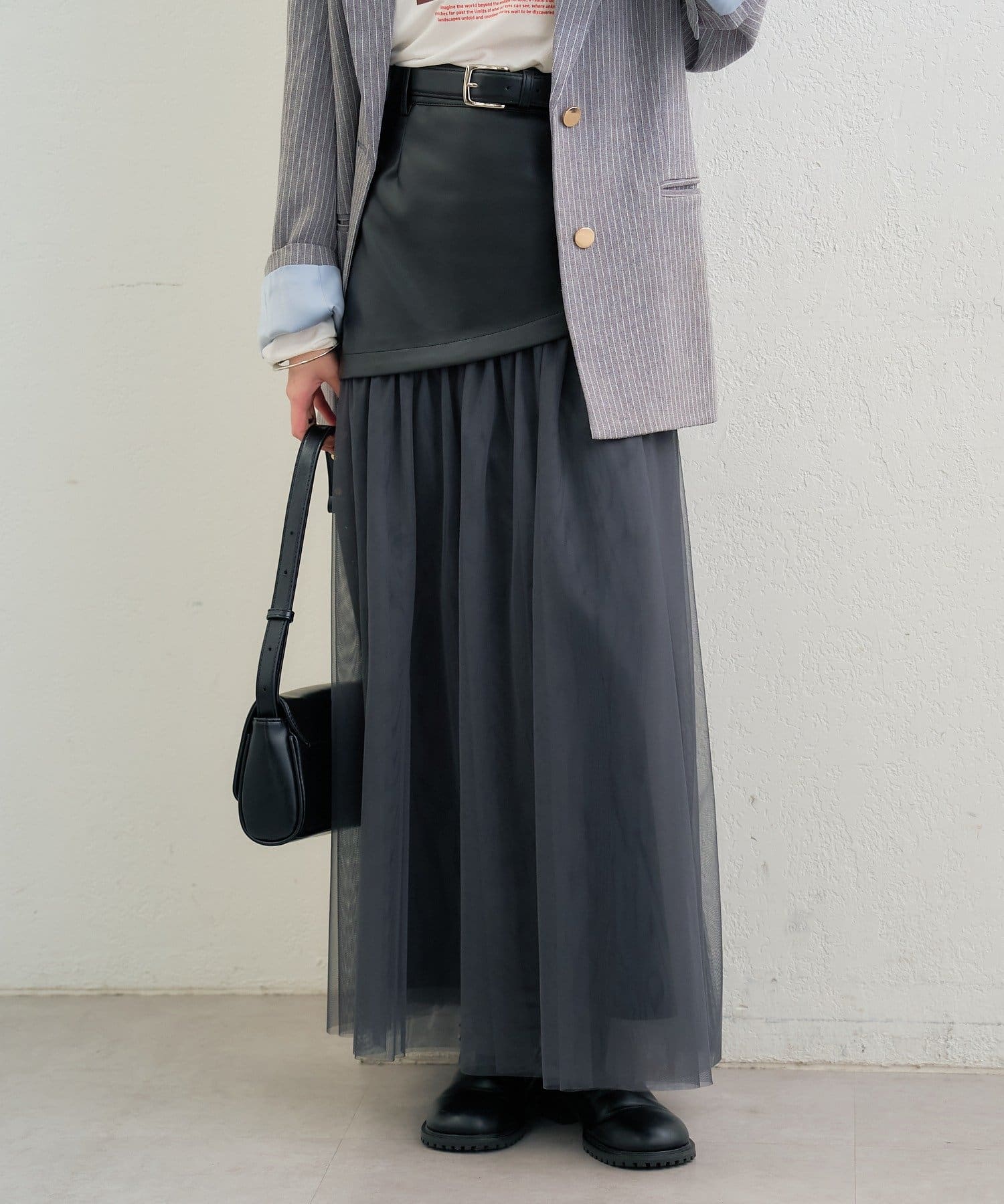 異素材レイヤードで甘さ控えめなチュールスカートが登場!