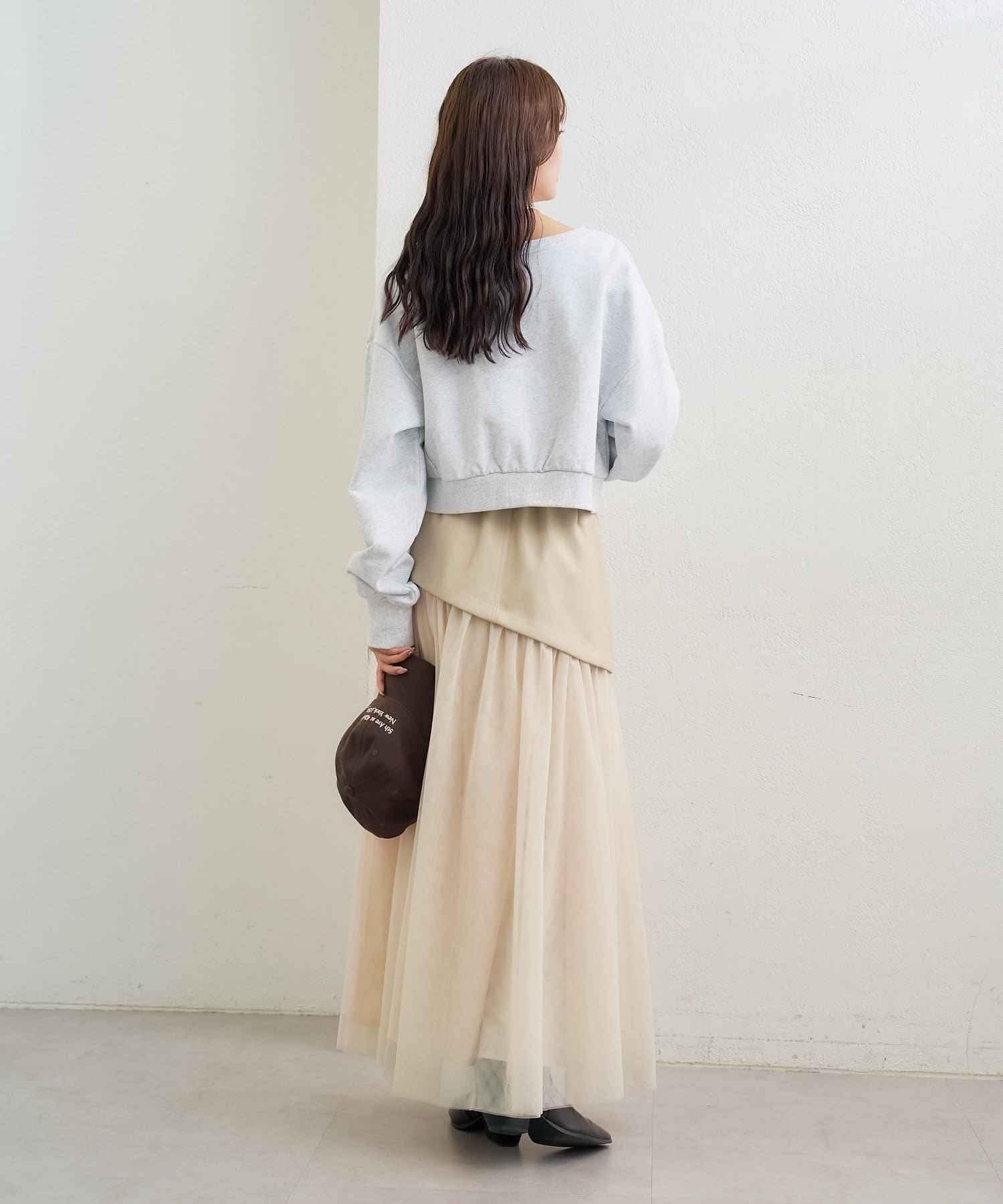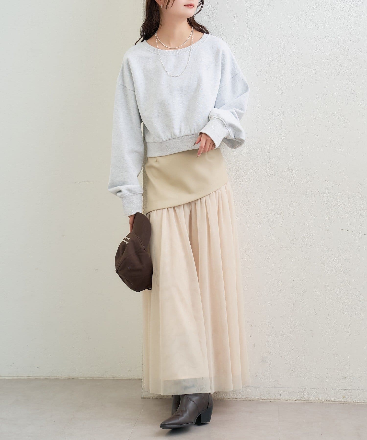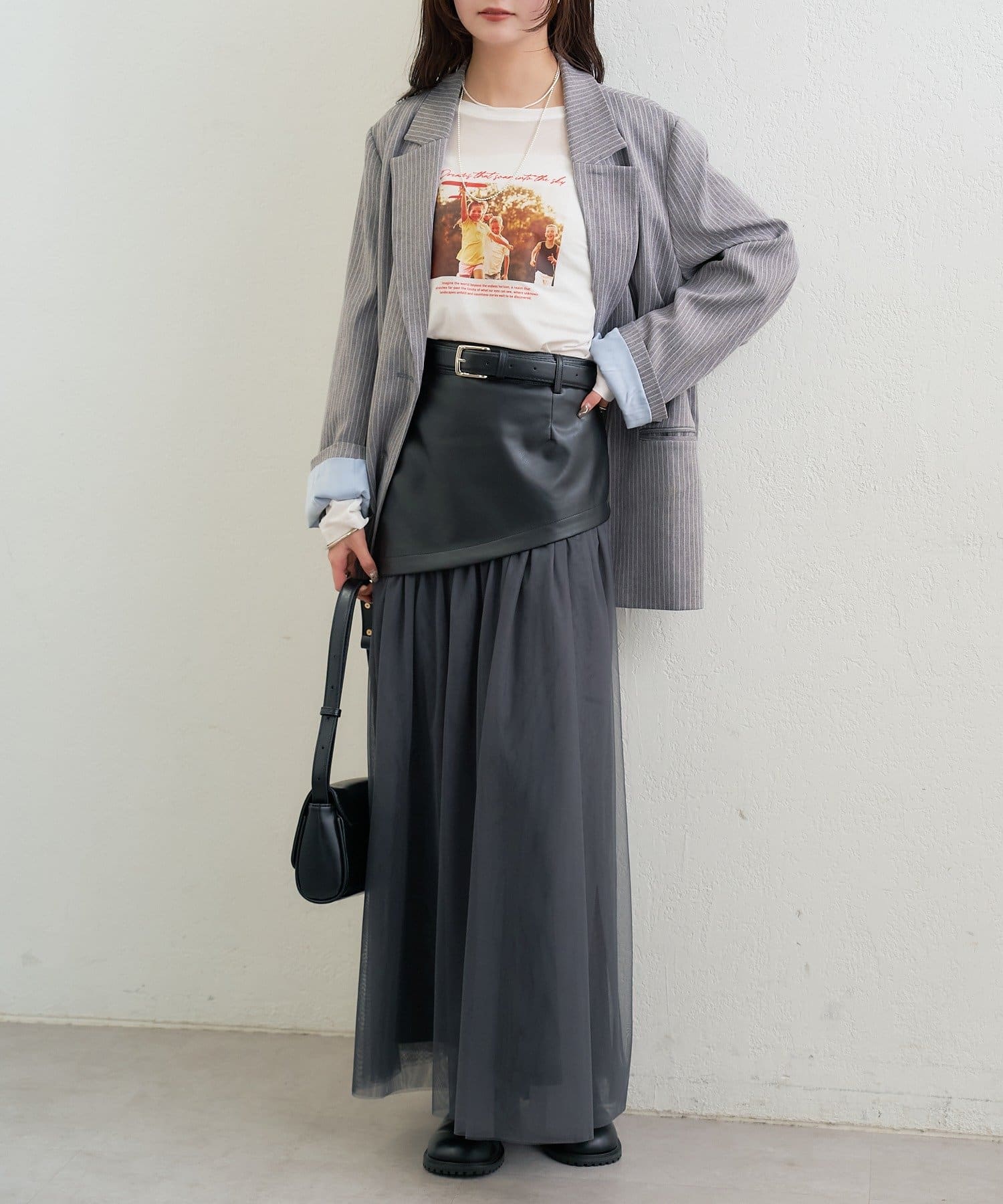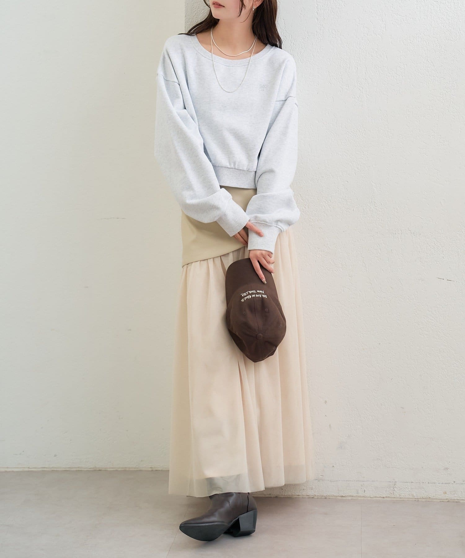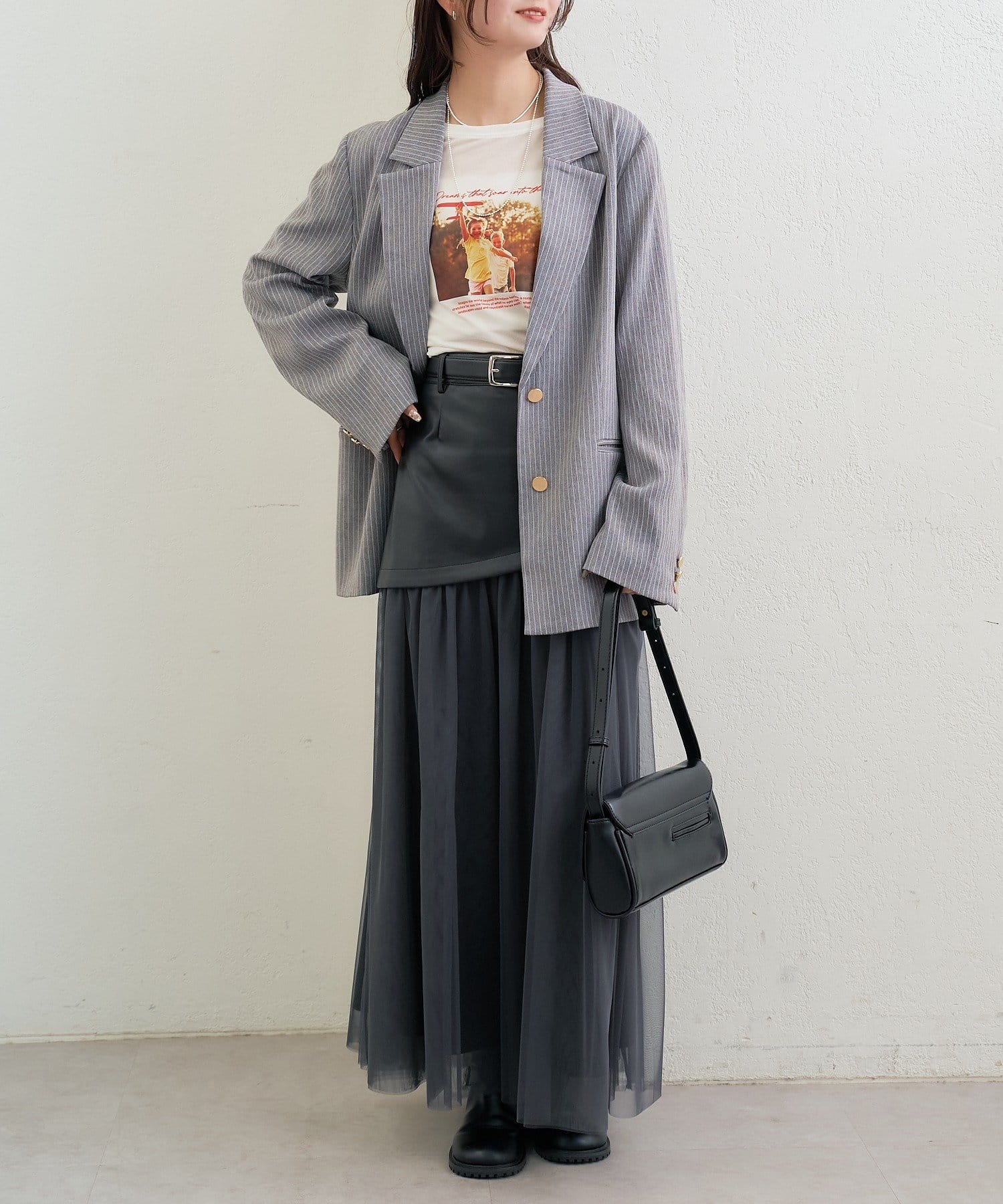 異素材レイヤードで甘さ控えめなチュールスカートが登場!
