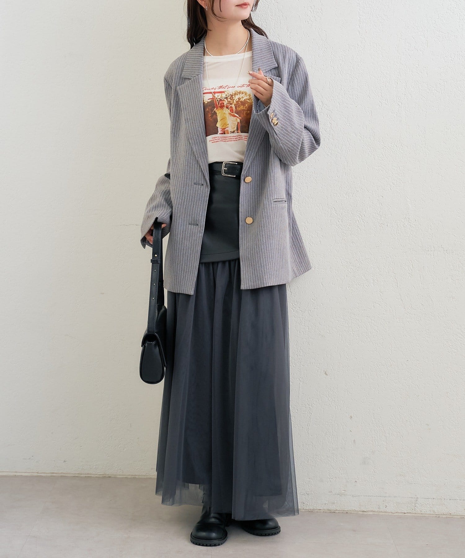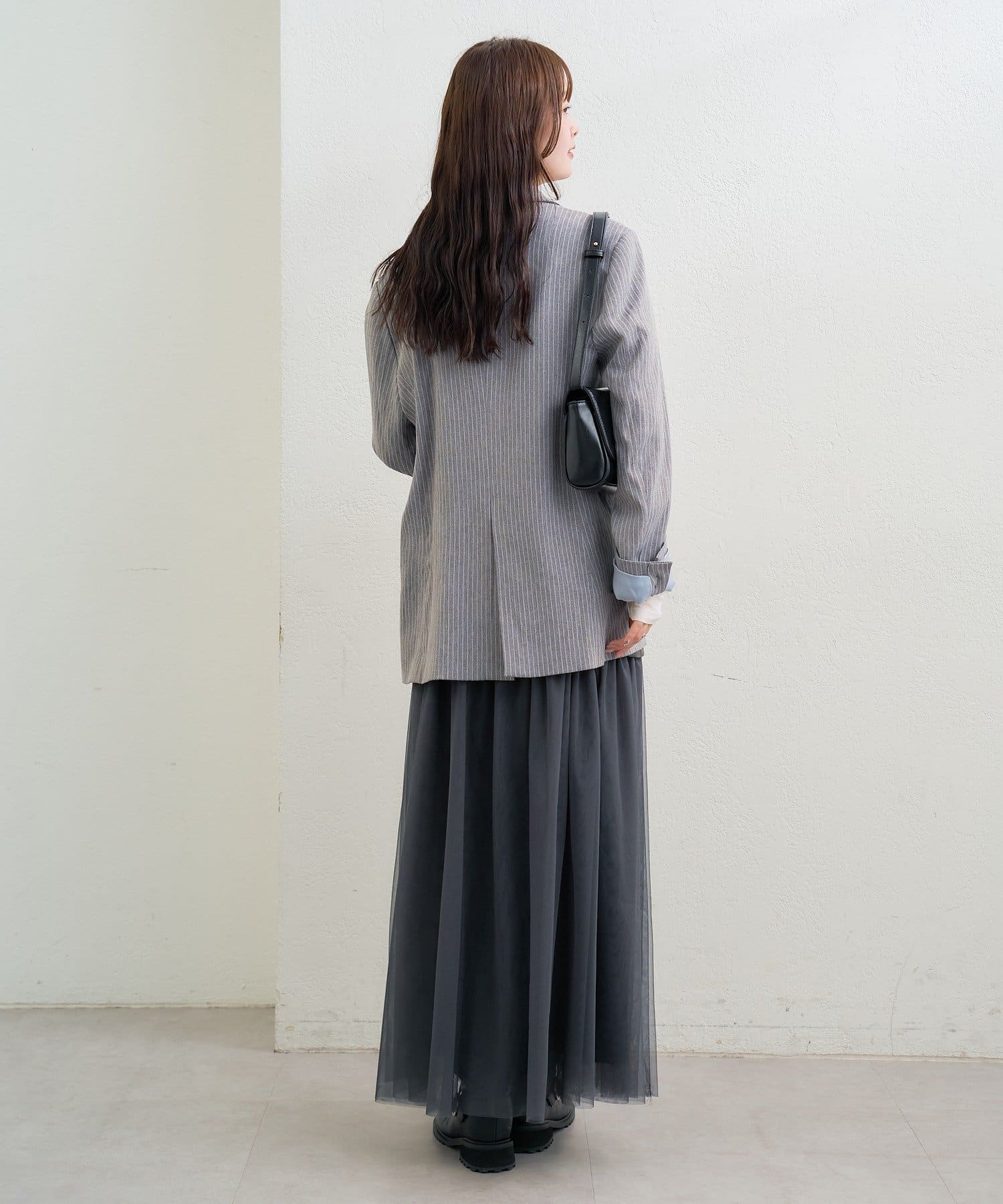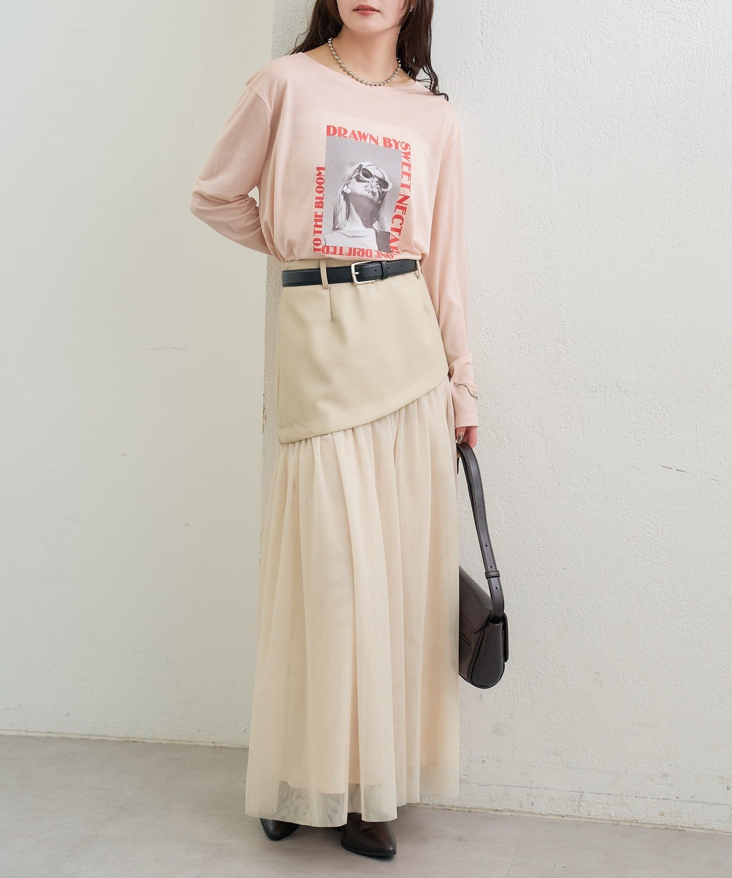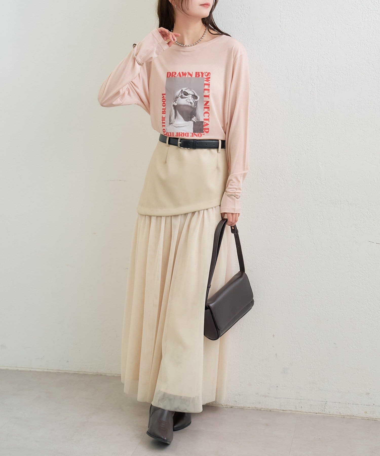 異素材レイヤードで甘さ控えめなチュールスカートが登場!