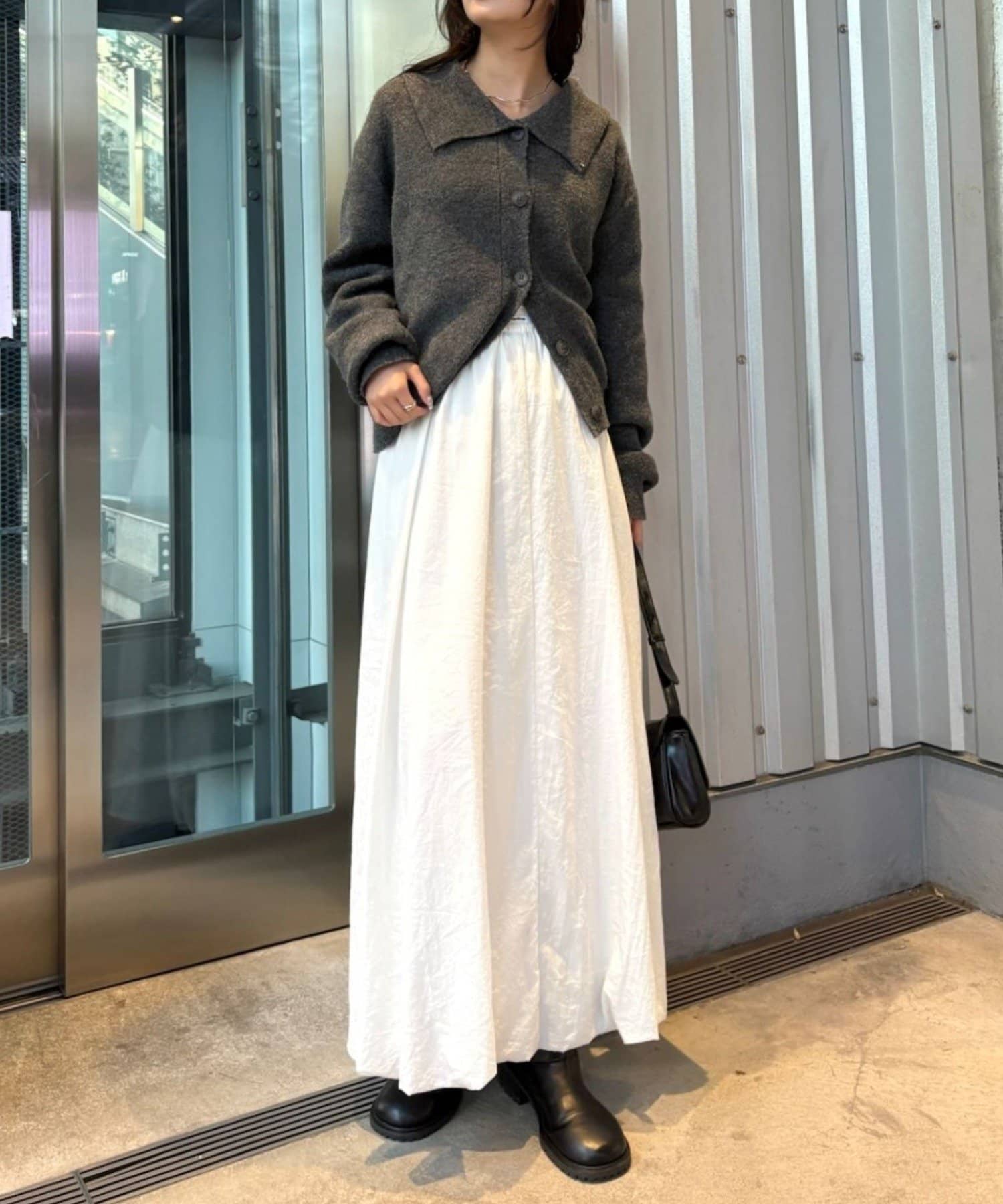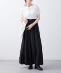 ・バルーンシルエットのロングスカートで上品さや大人な女性を表現。