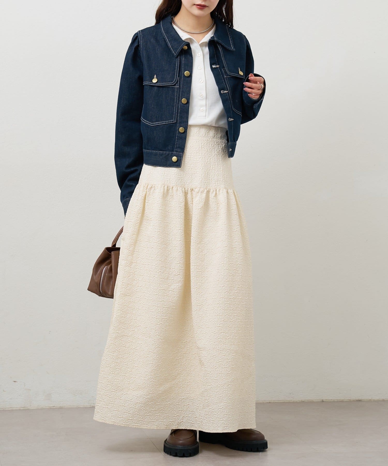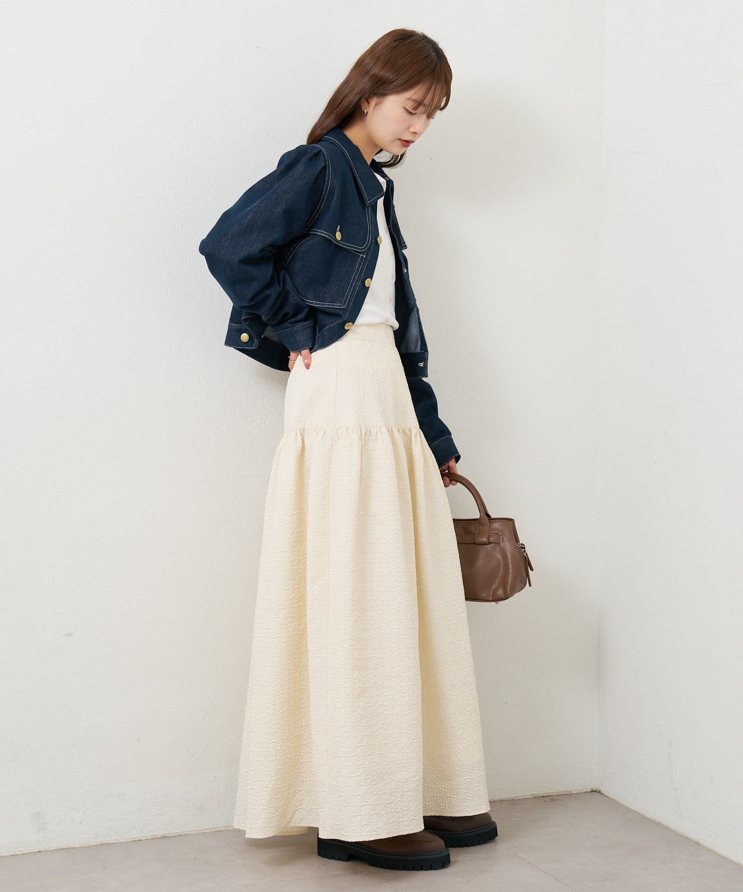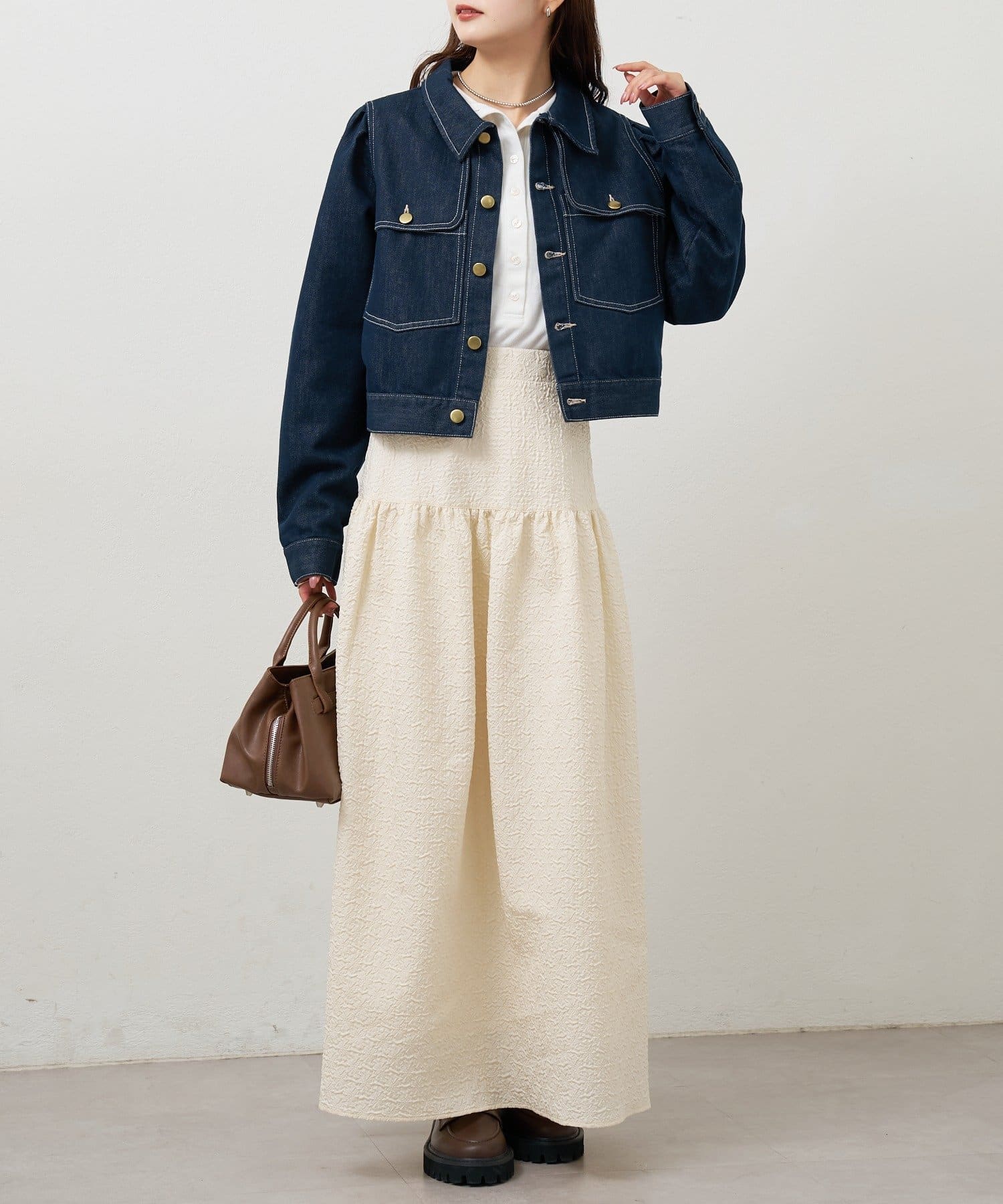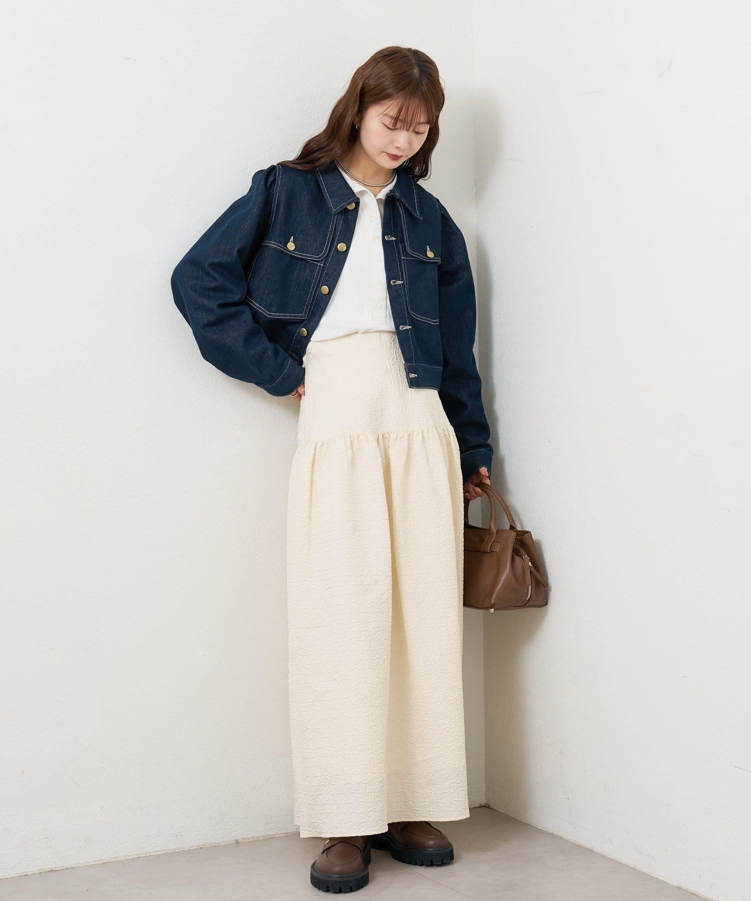 ・コンパクトなニットやカーディガンと合わせるとバランスよく決まります。