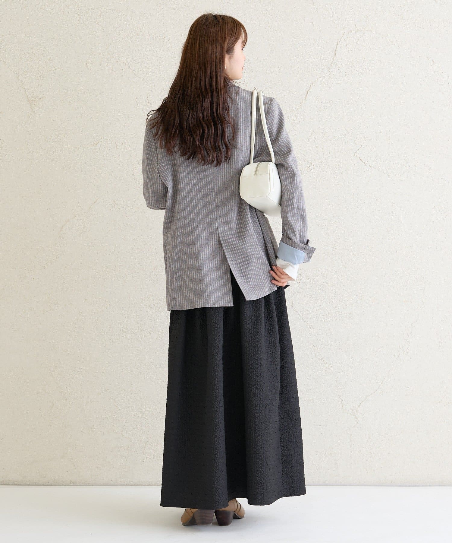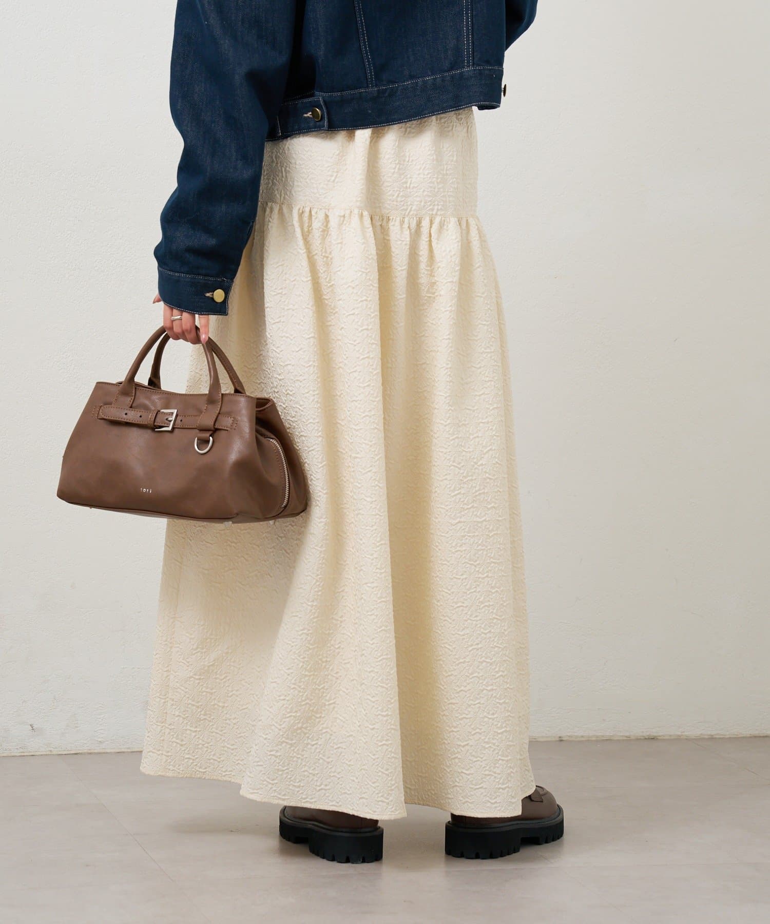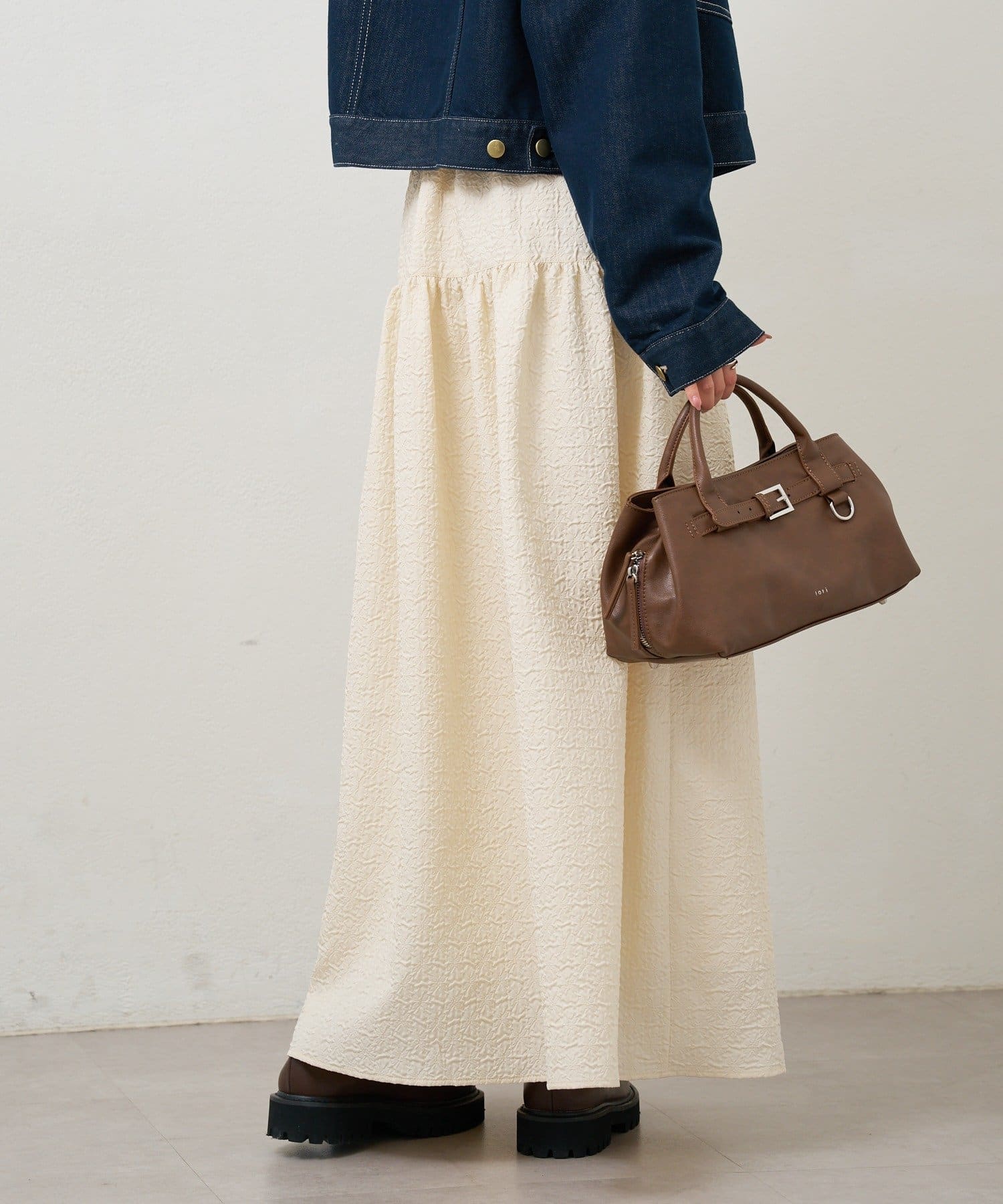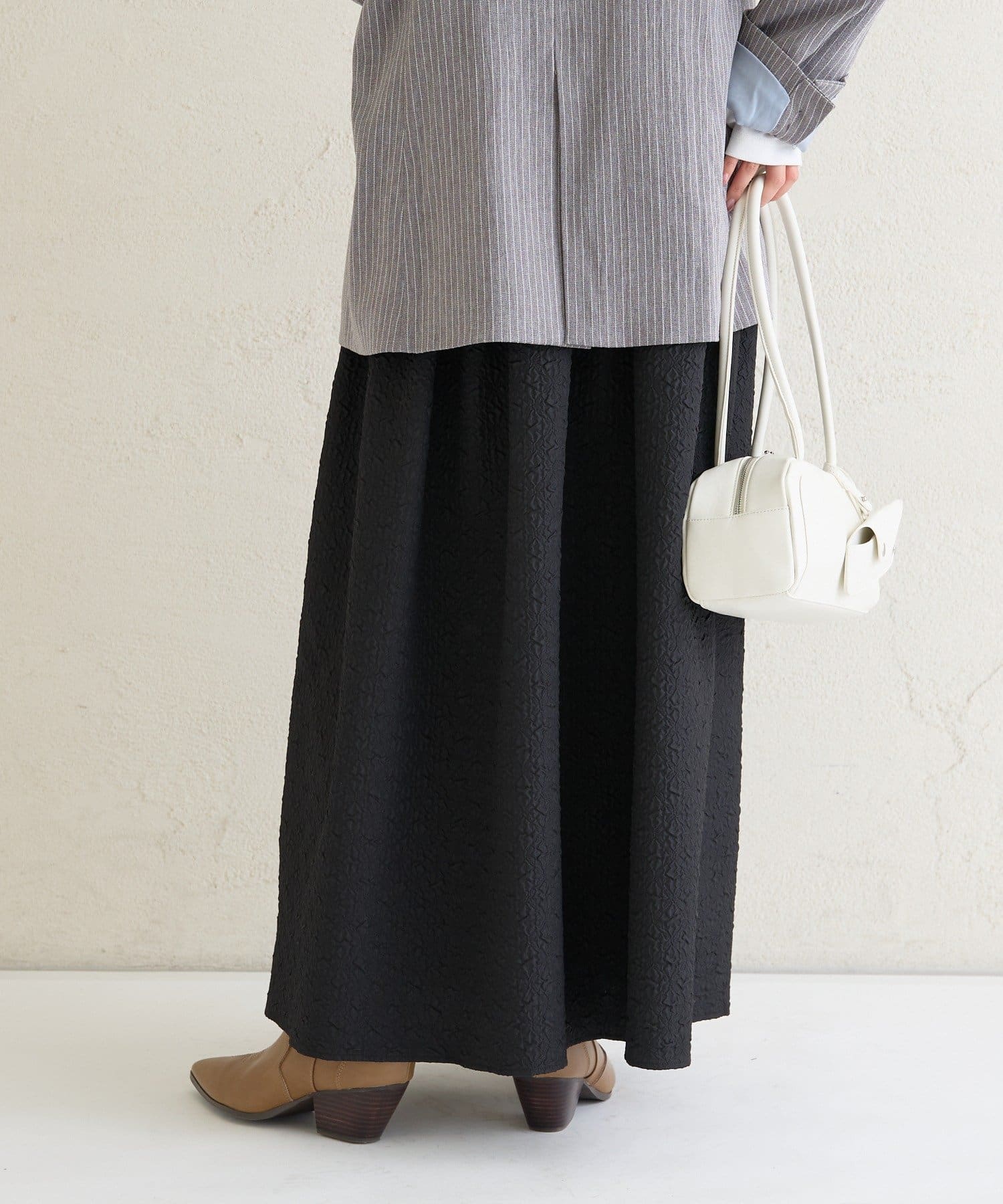 表面感のあるエンボス素材が、スタイリングのアクセントになります。