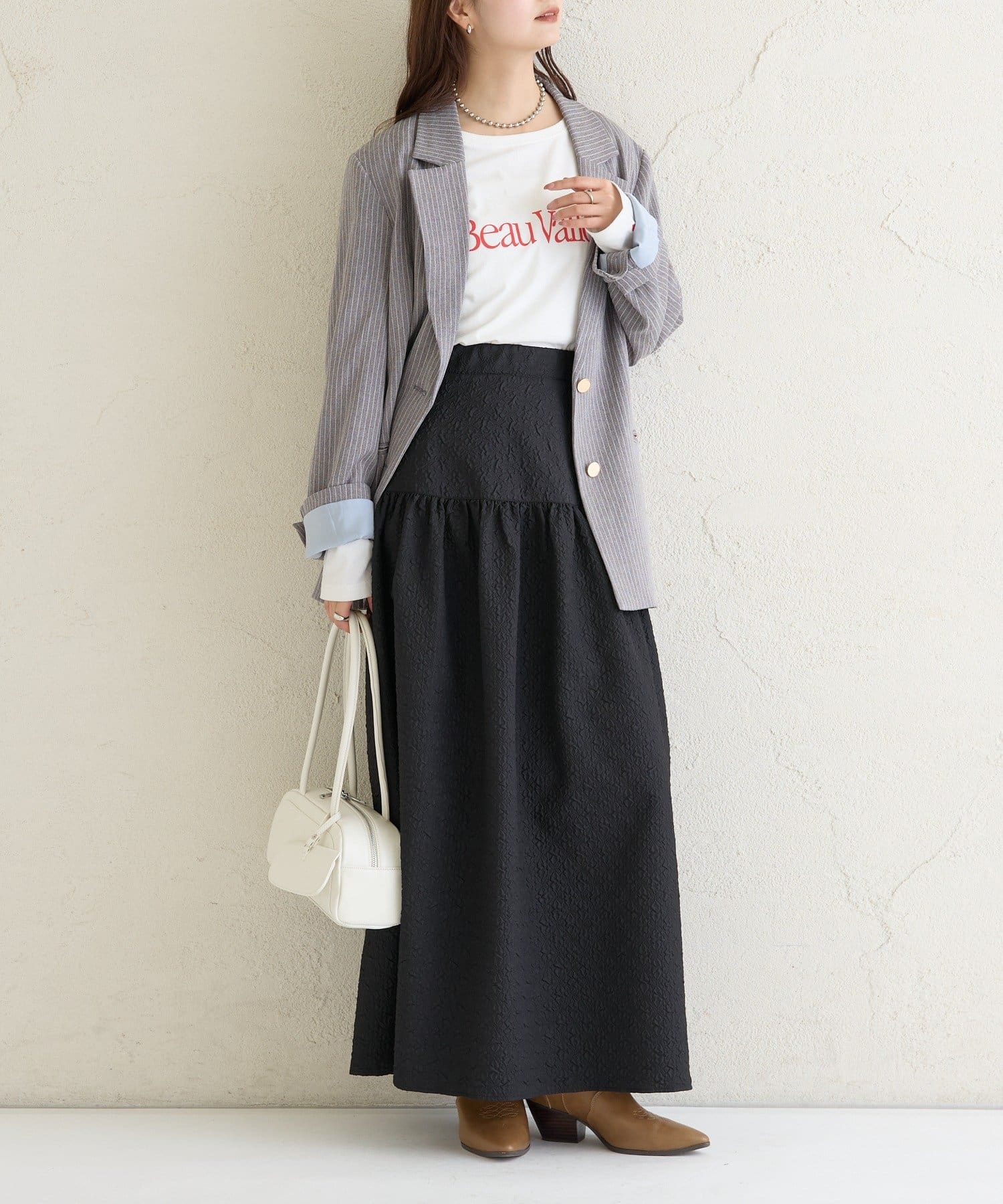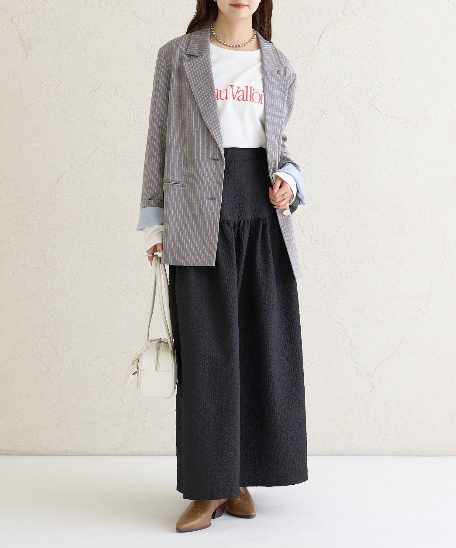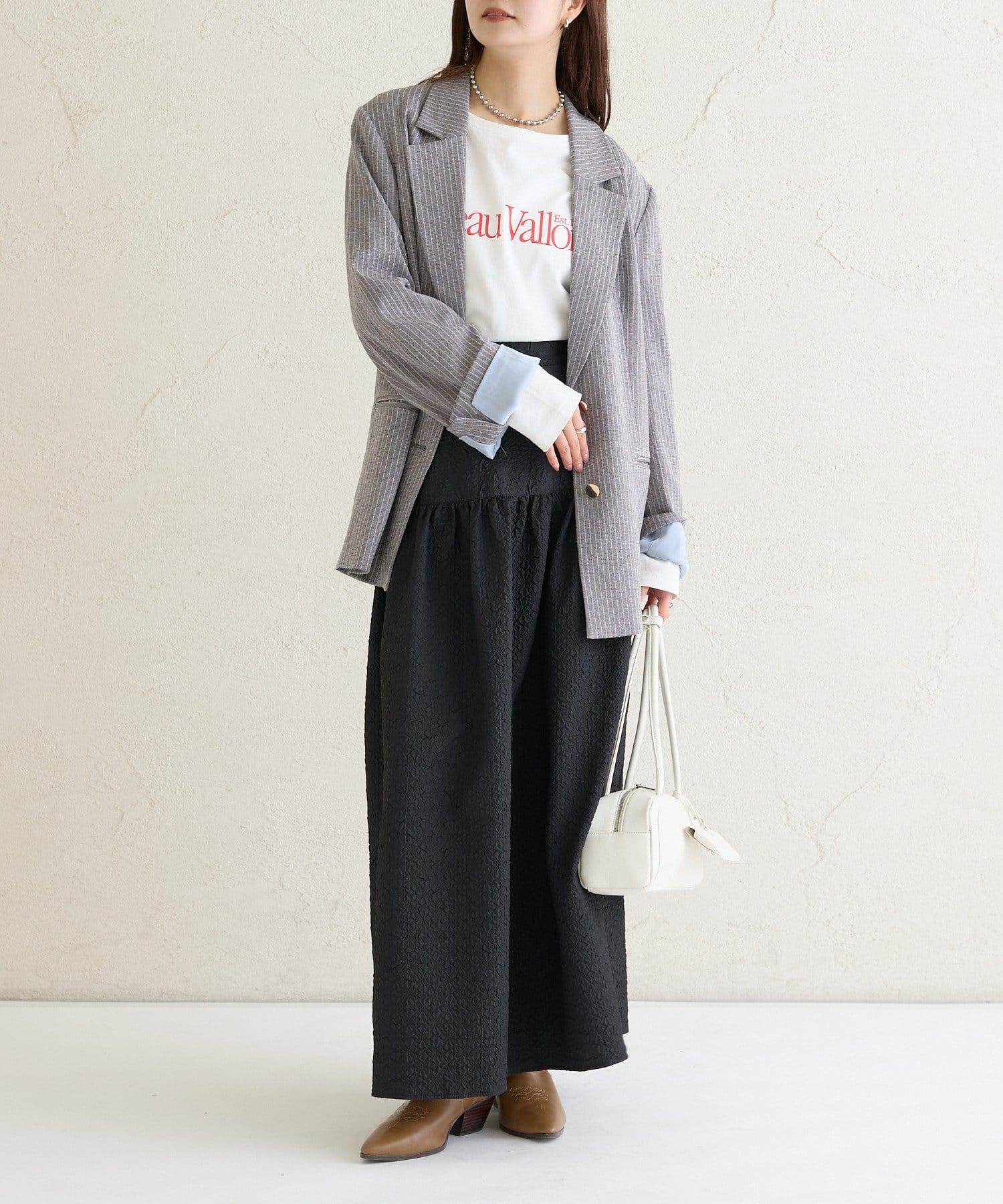 ・オーバーサイズのトップスを合わせてカジュアルダウンしたスタイリングにも。