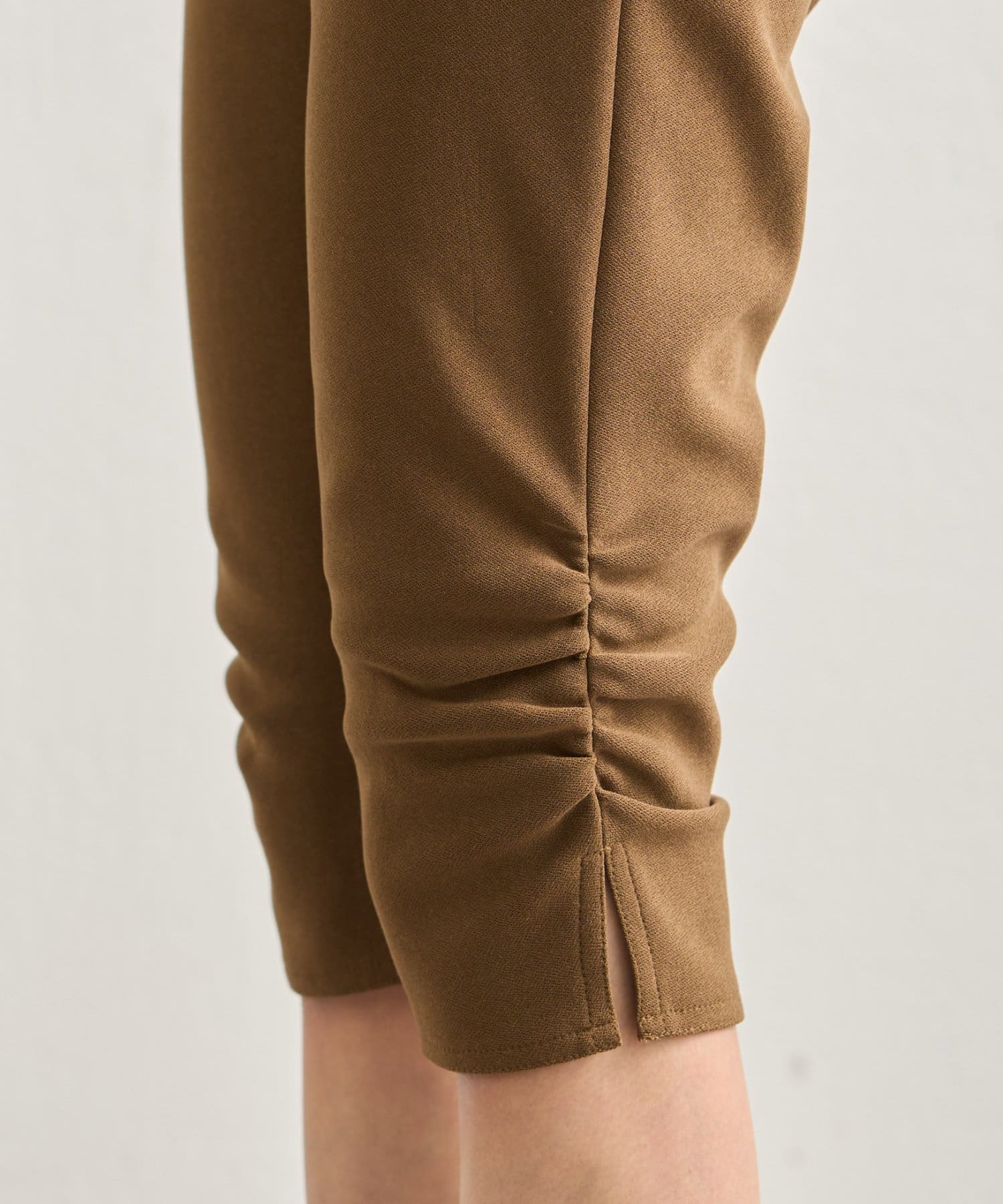 裾のギャザーでトレンド感のあるアイテムに仕上げたバイカーパンツ