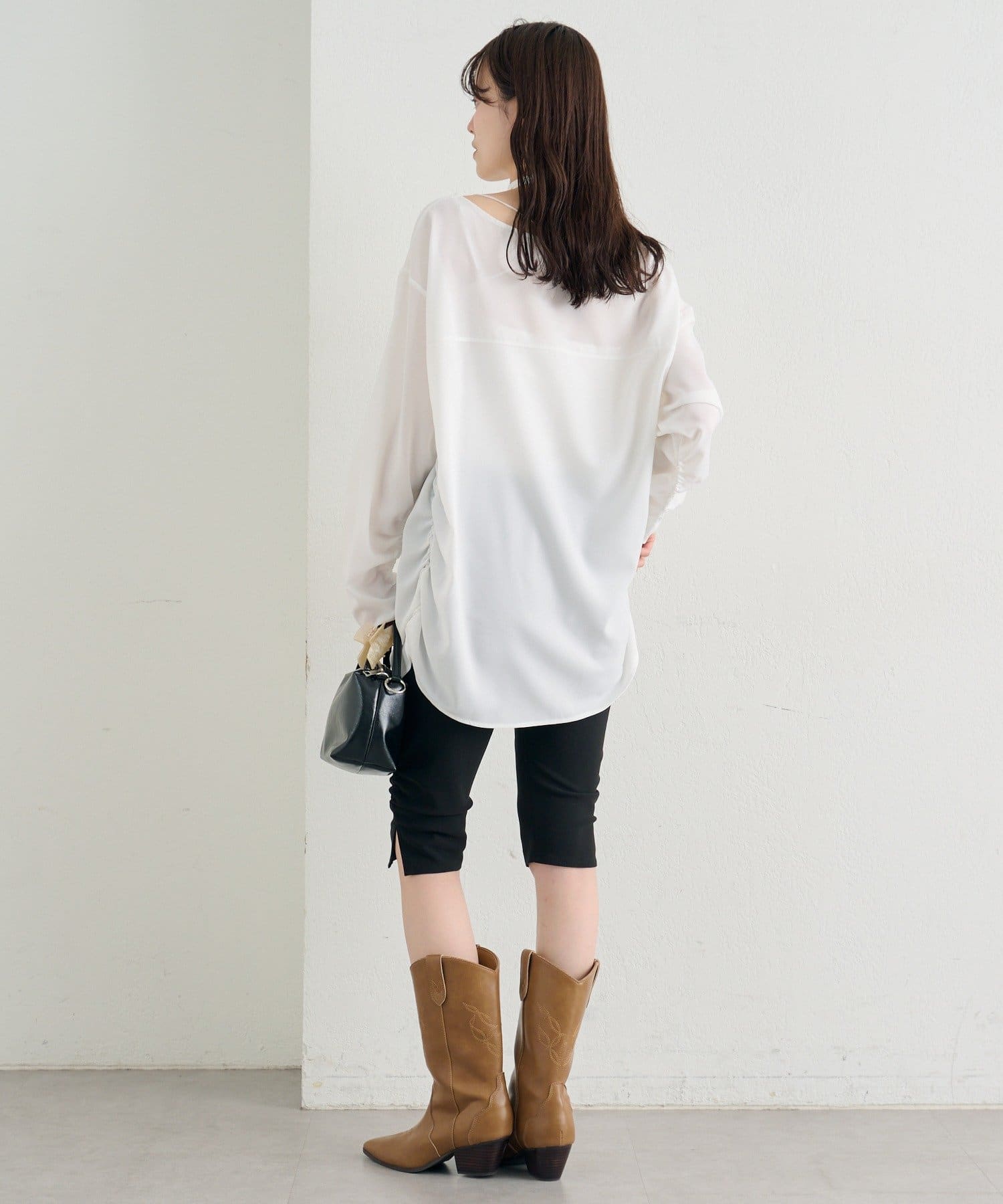 ロング丈のトップスを合わせると腰回りも気になることなくバランスよく履いていただけます!