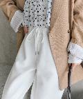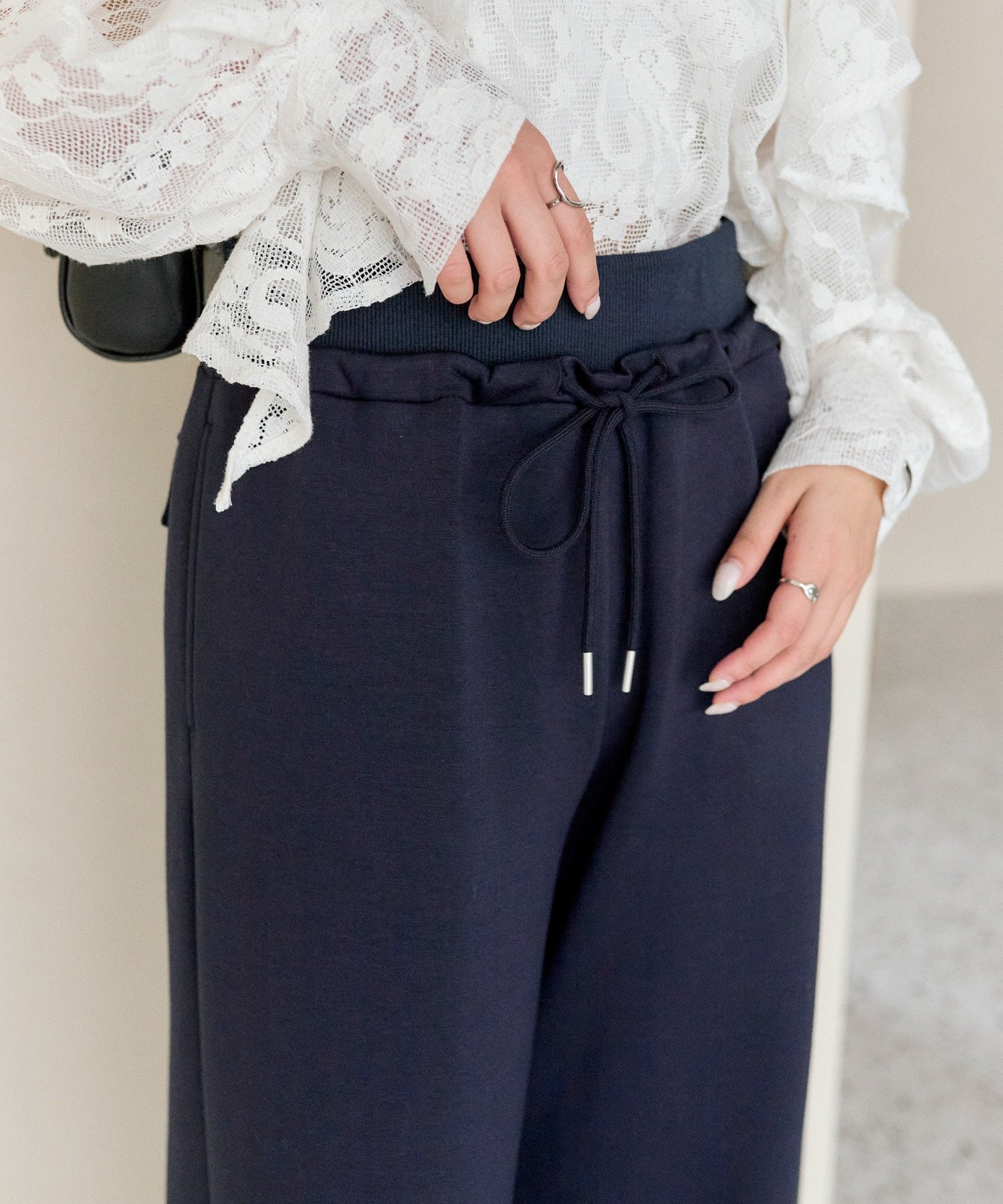 ・ウエストは紐で調整可能で、リラックス感のある履き心地。
