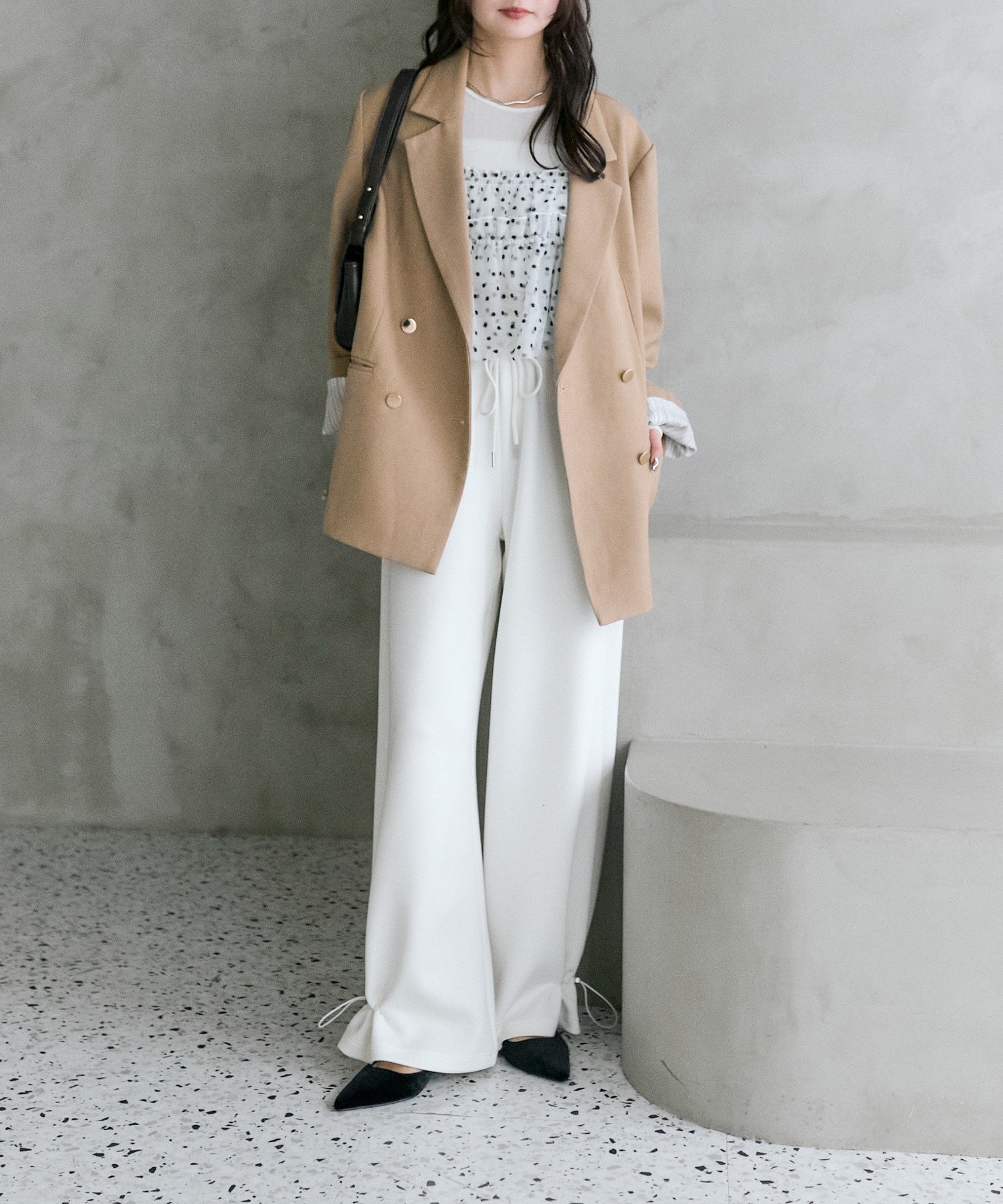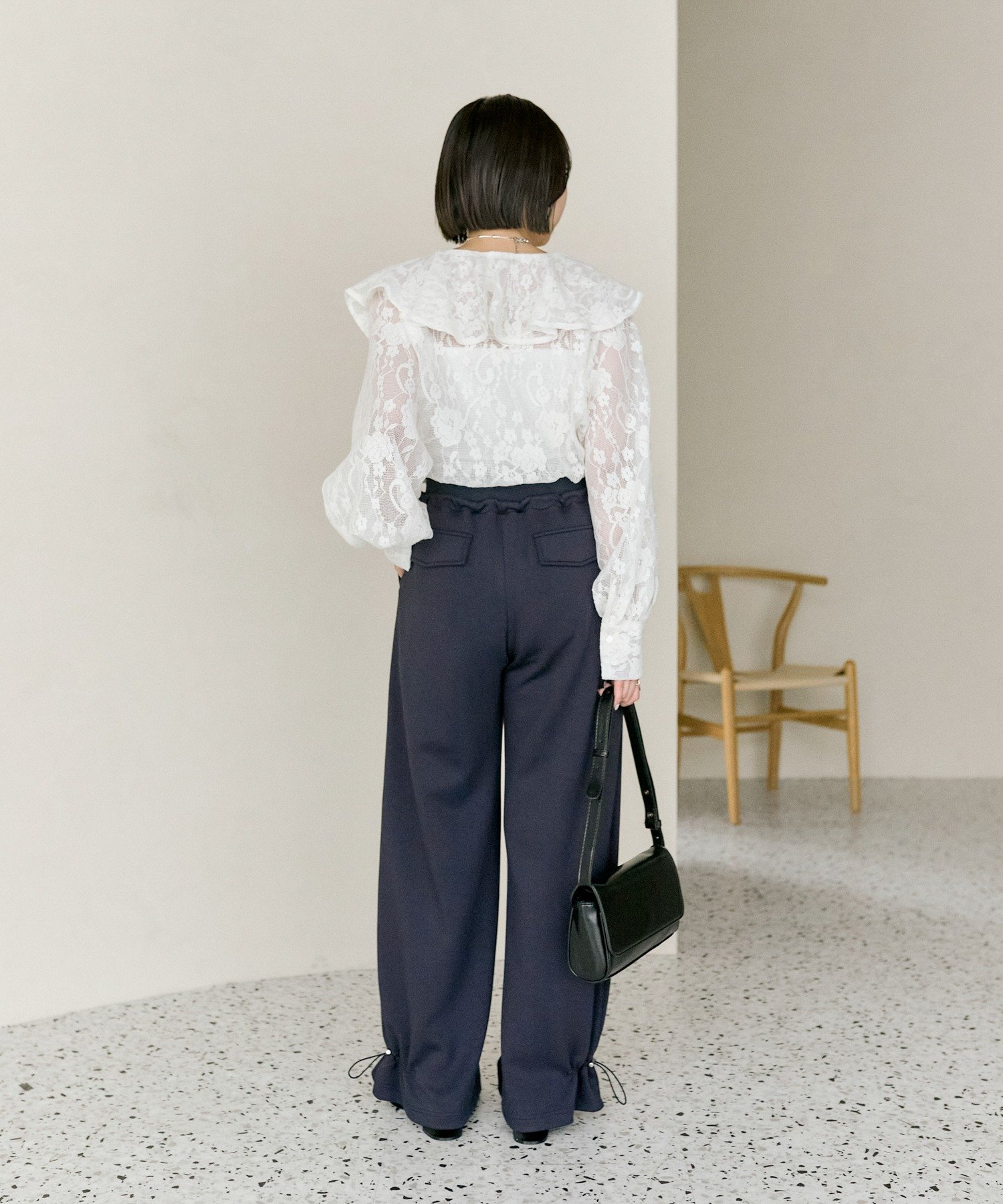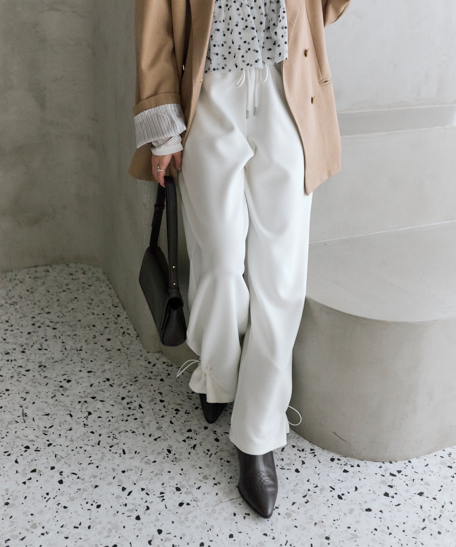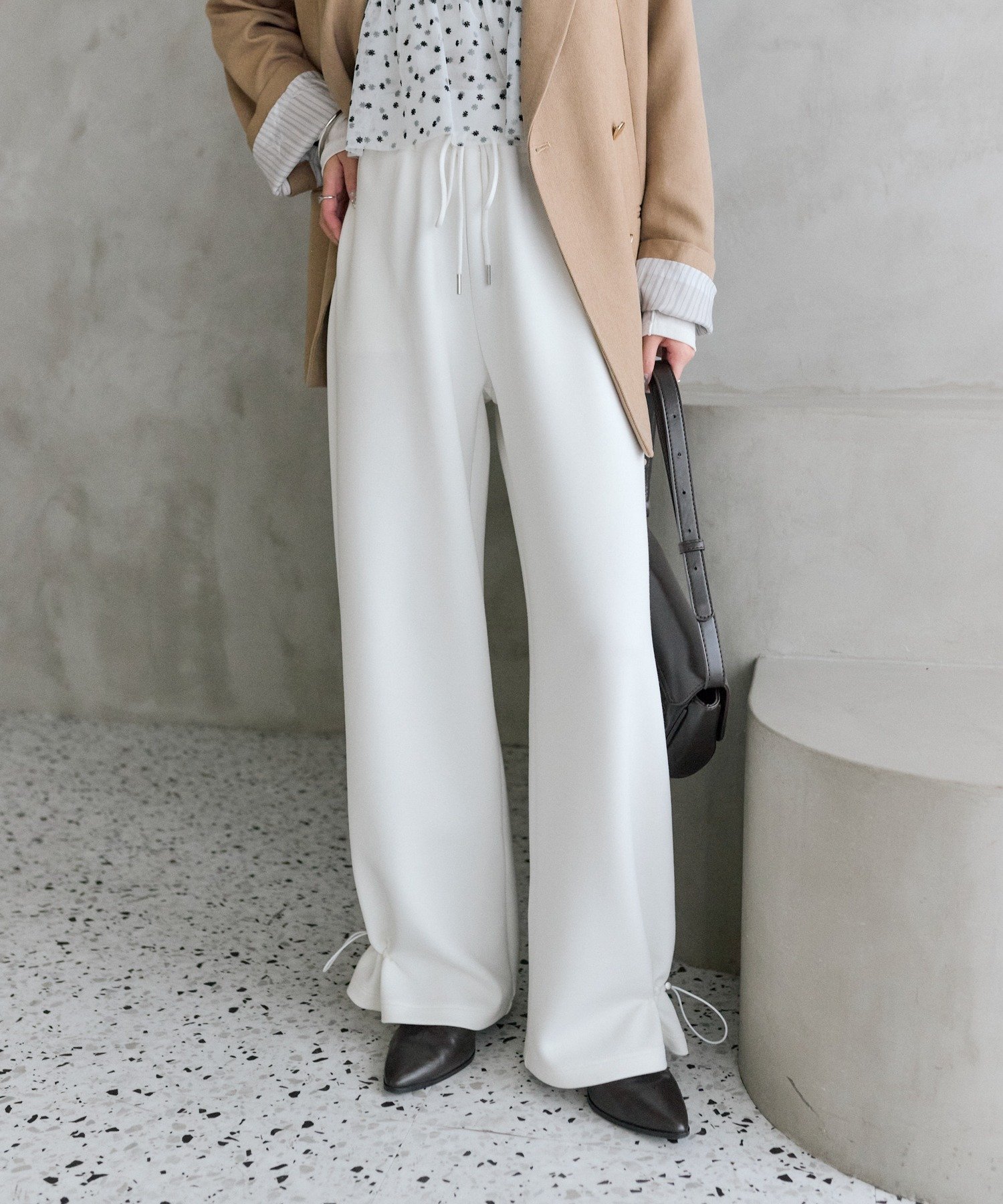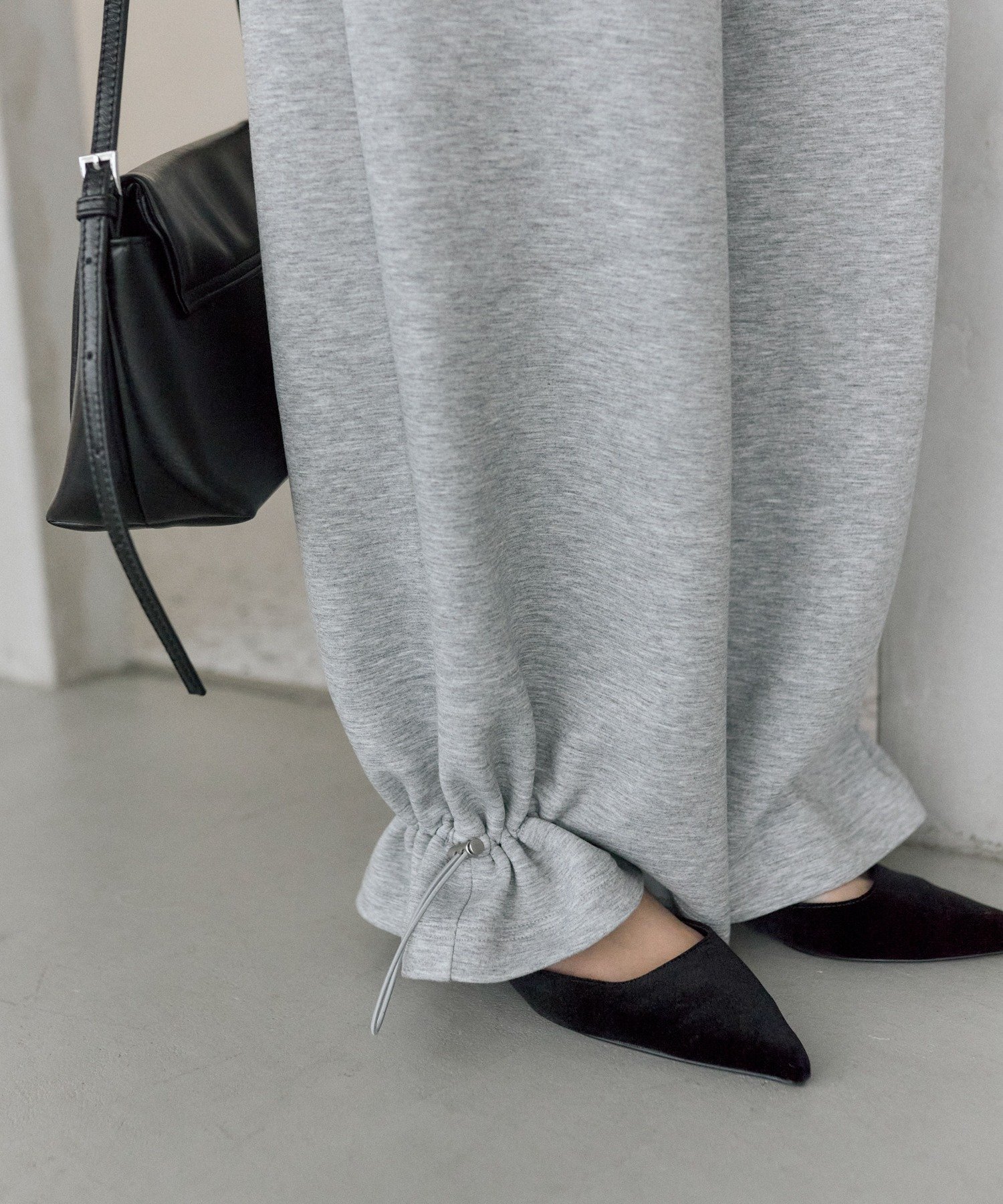 裾を絞って雰囲気を変えられるのが嬉しいポイント。