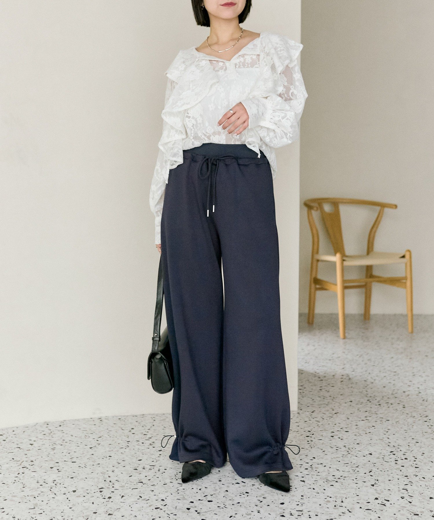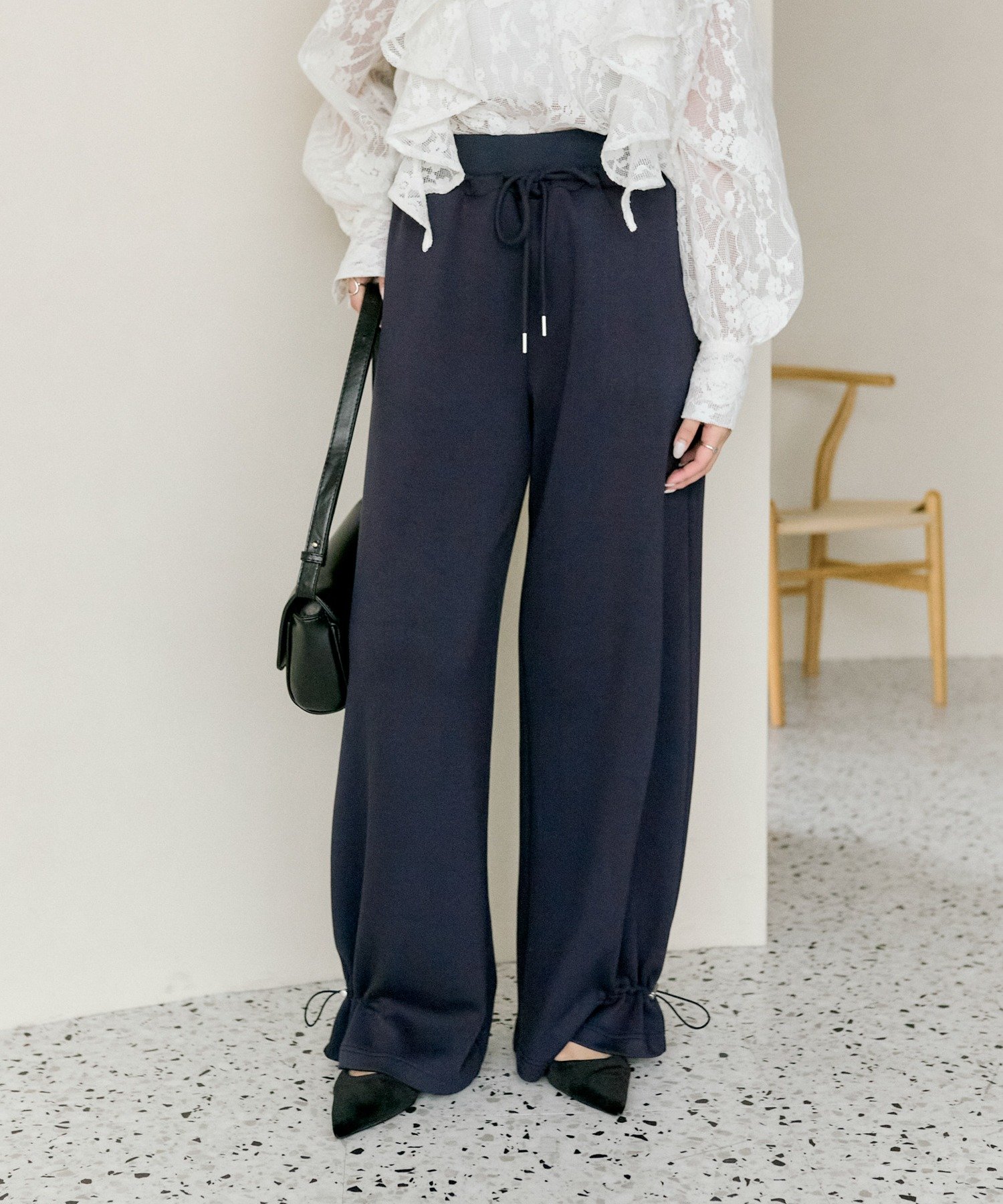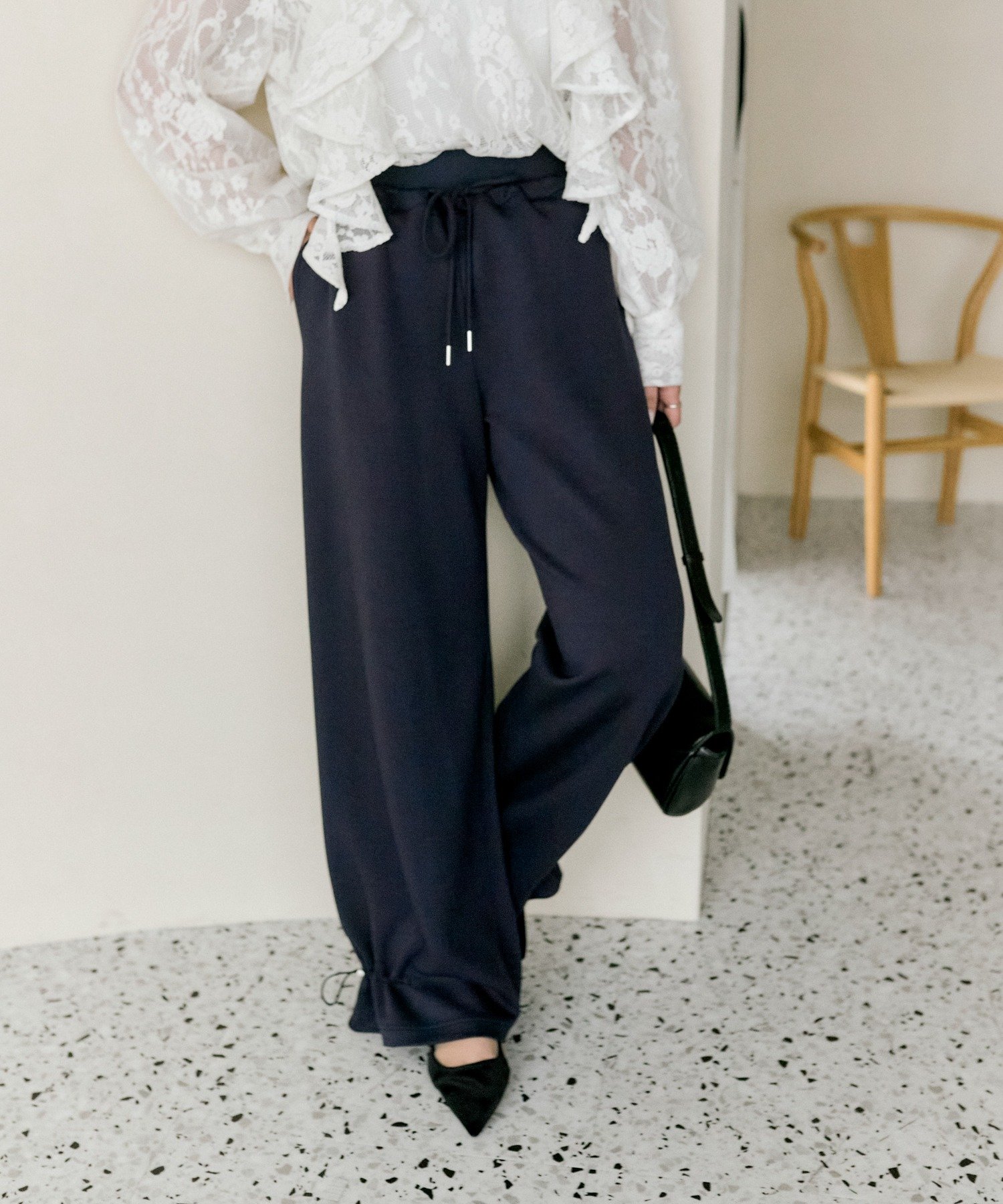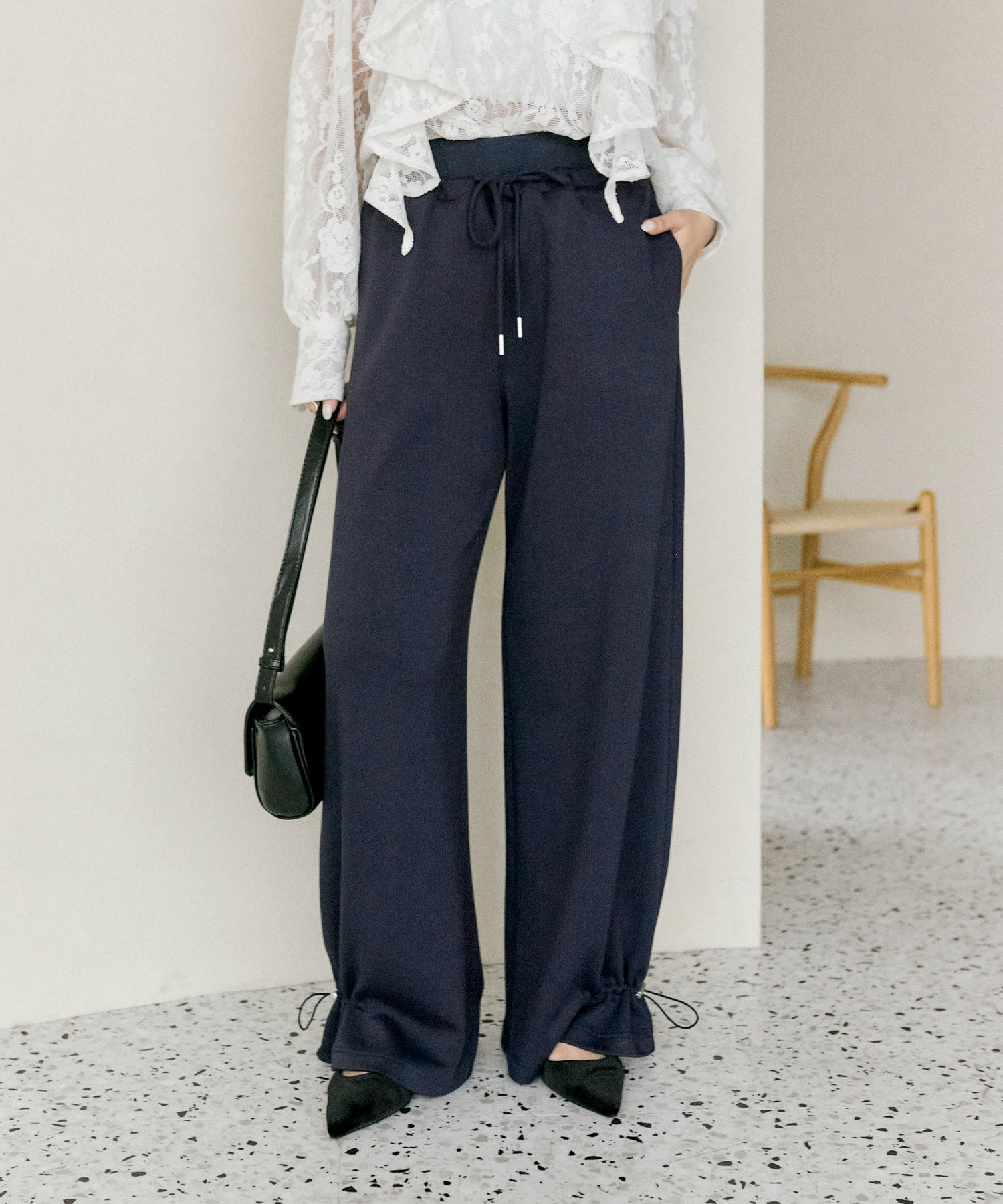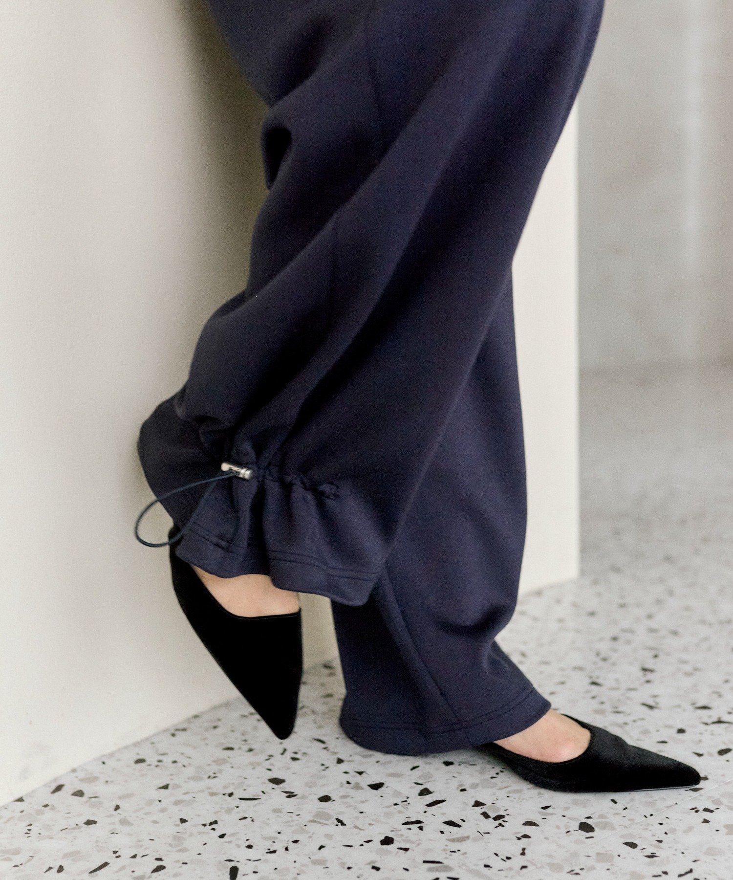 ドローストリングでシルエットの変化を楽しめるイージーパンツ