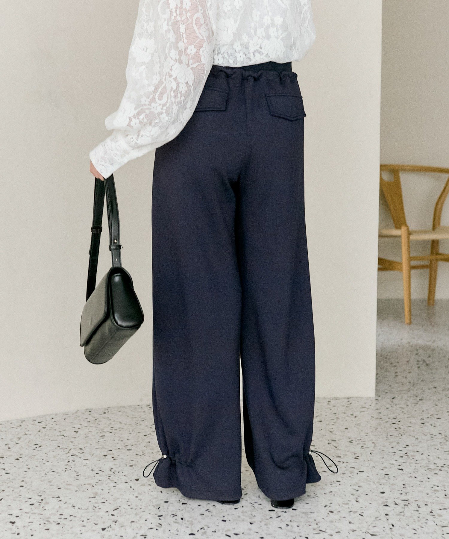 ・裾のドローストリングで絞れるため、ワイドからバルーン風までシルエット調整が可能。