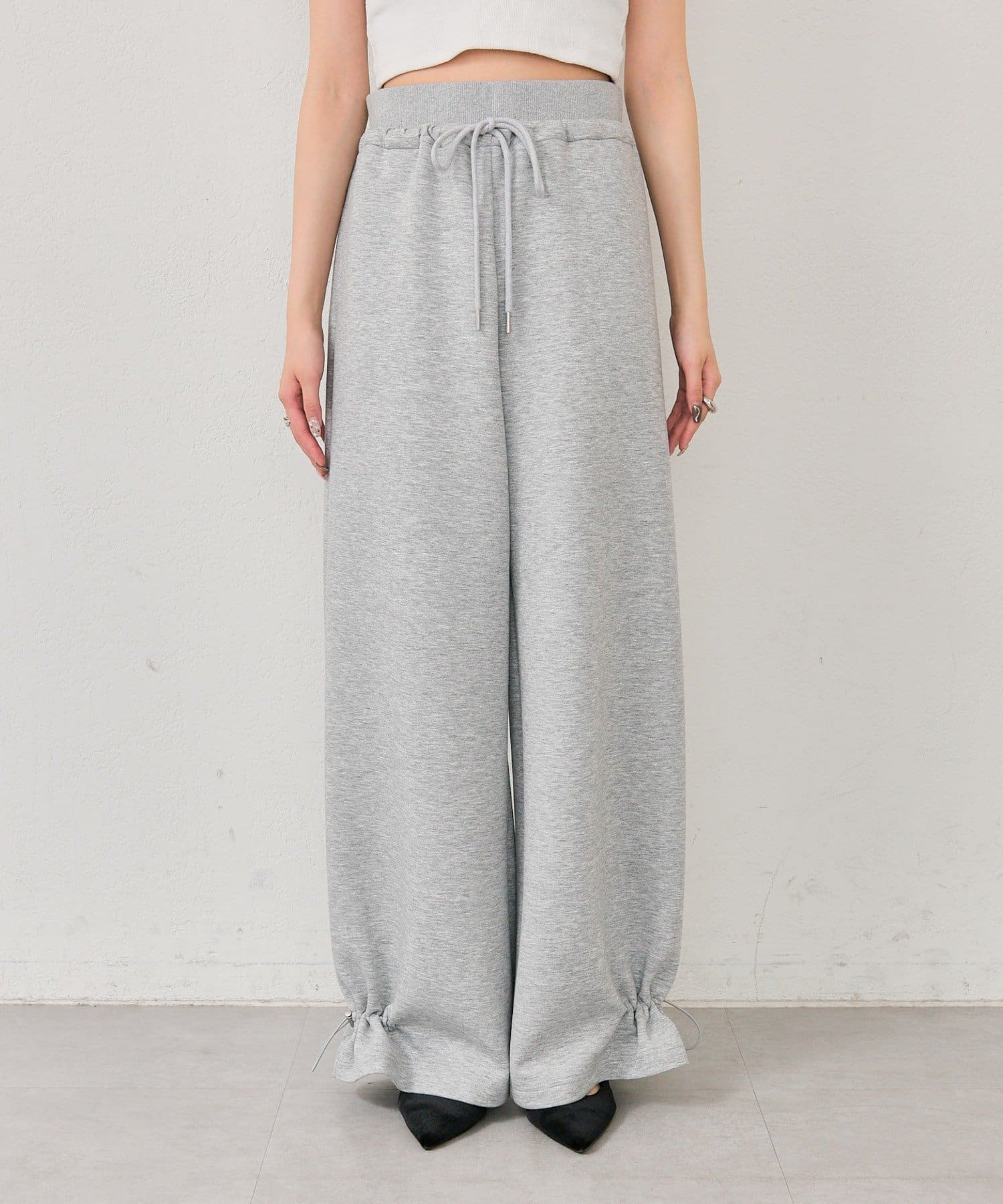 ドローストリングでシルエットの変化を楽しめるイージーパンツ