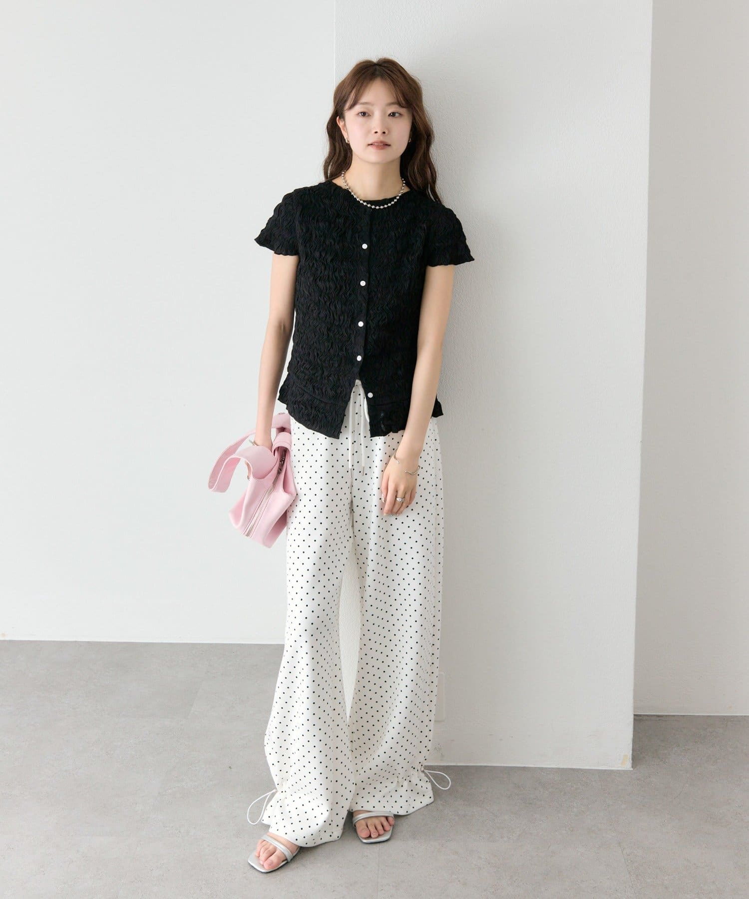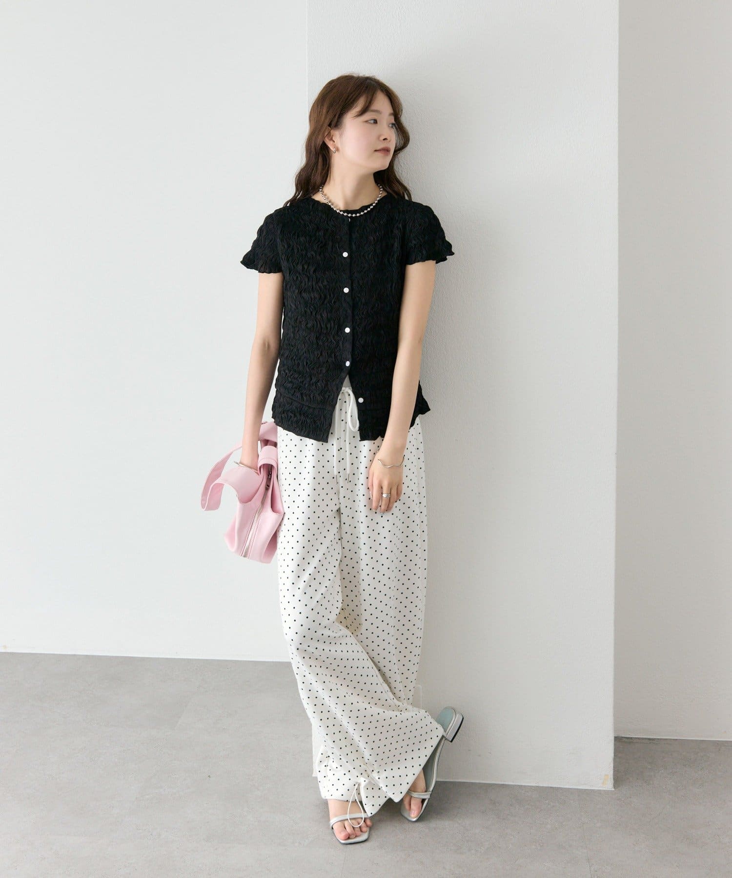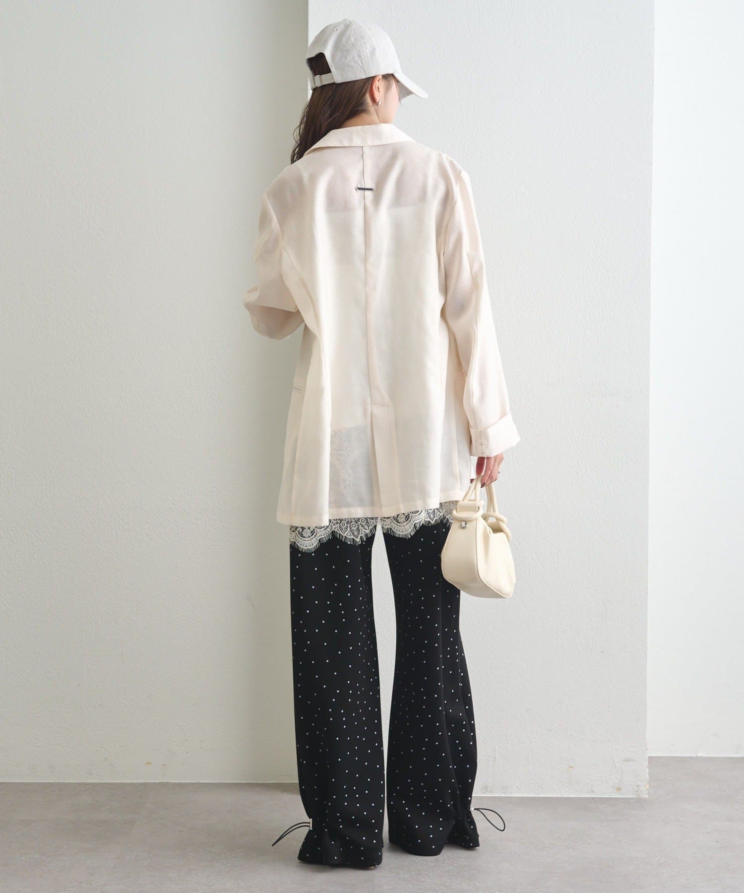 ・落ち感のある素材で、ボリュームがありながらもすっきりとした印象に。