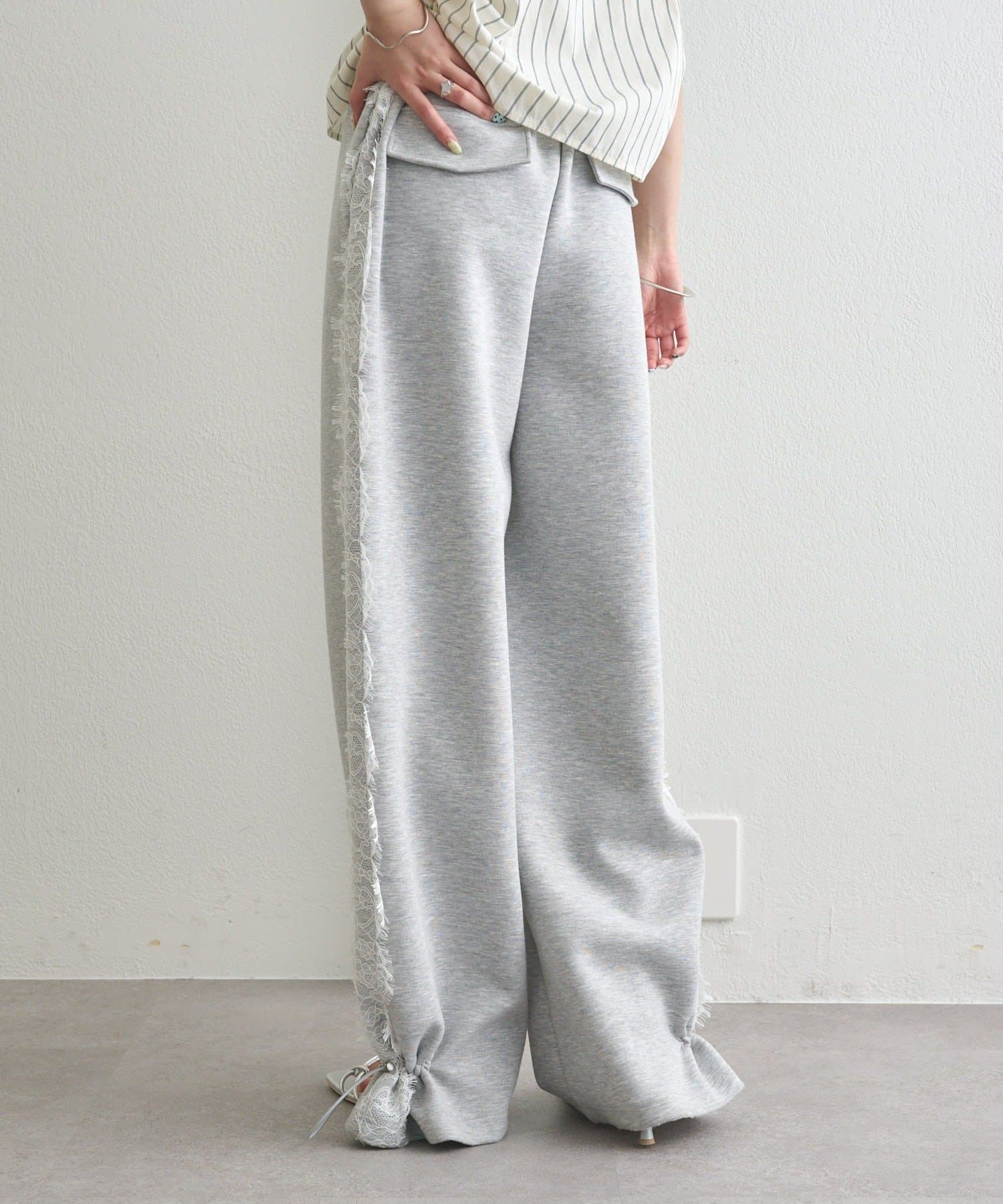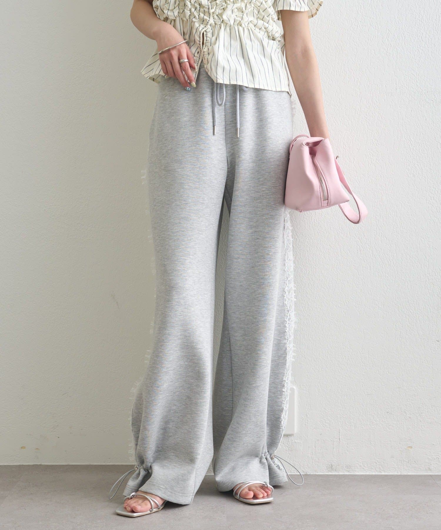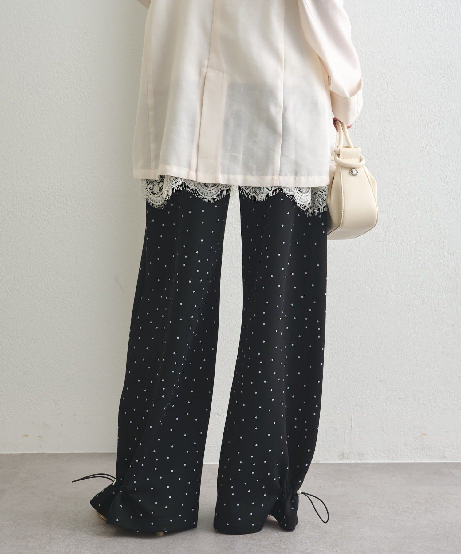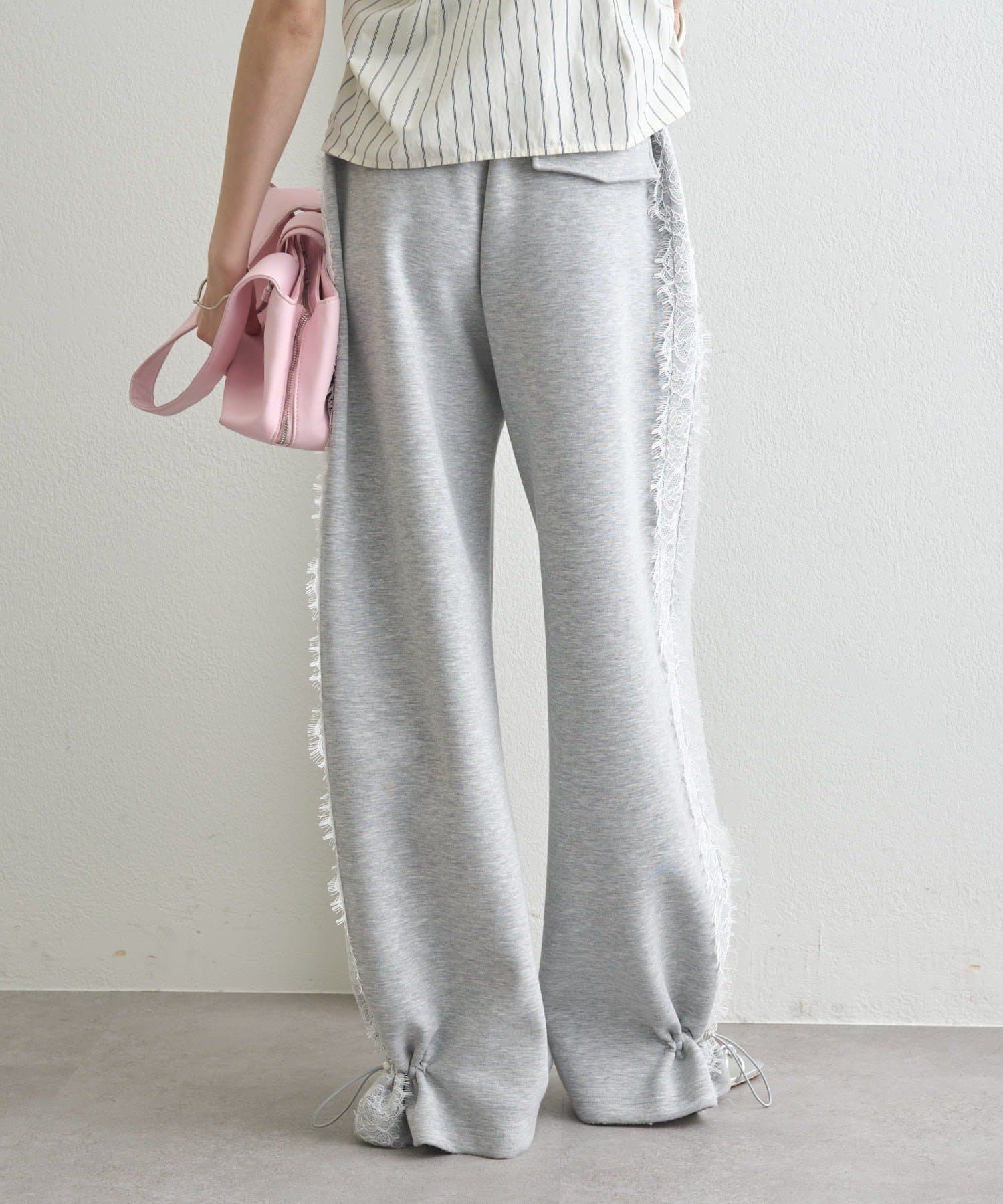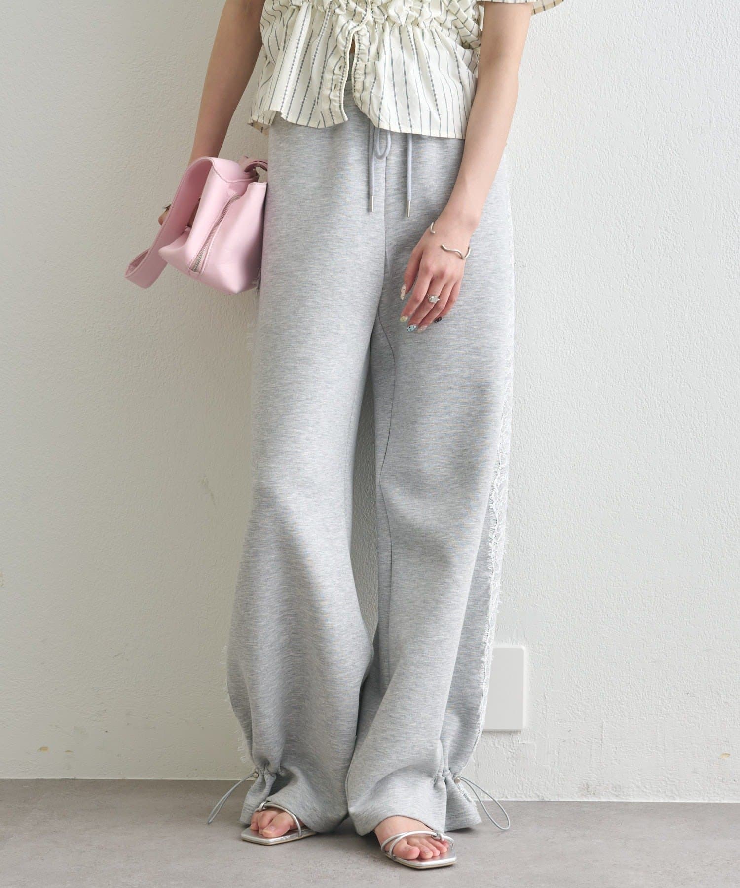《新色ドット/レースライン》【楽ちんなのに美脚効果◎】裾ドロストスウェットパンツ