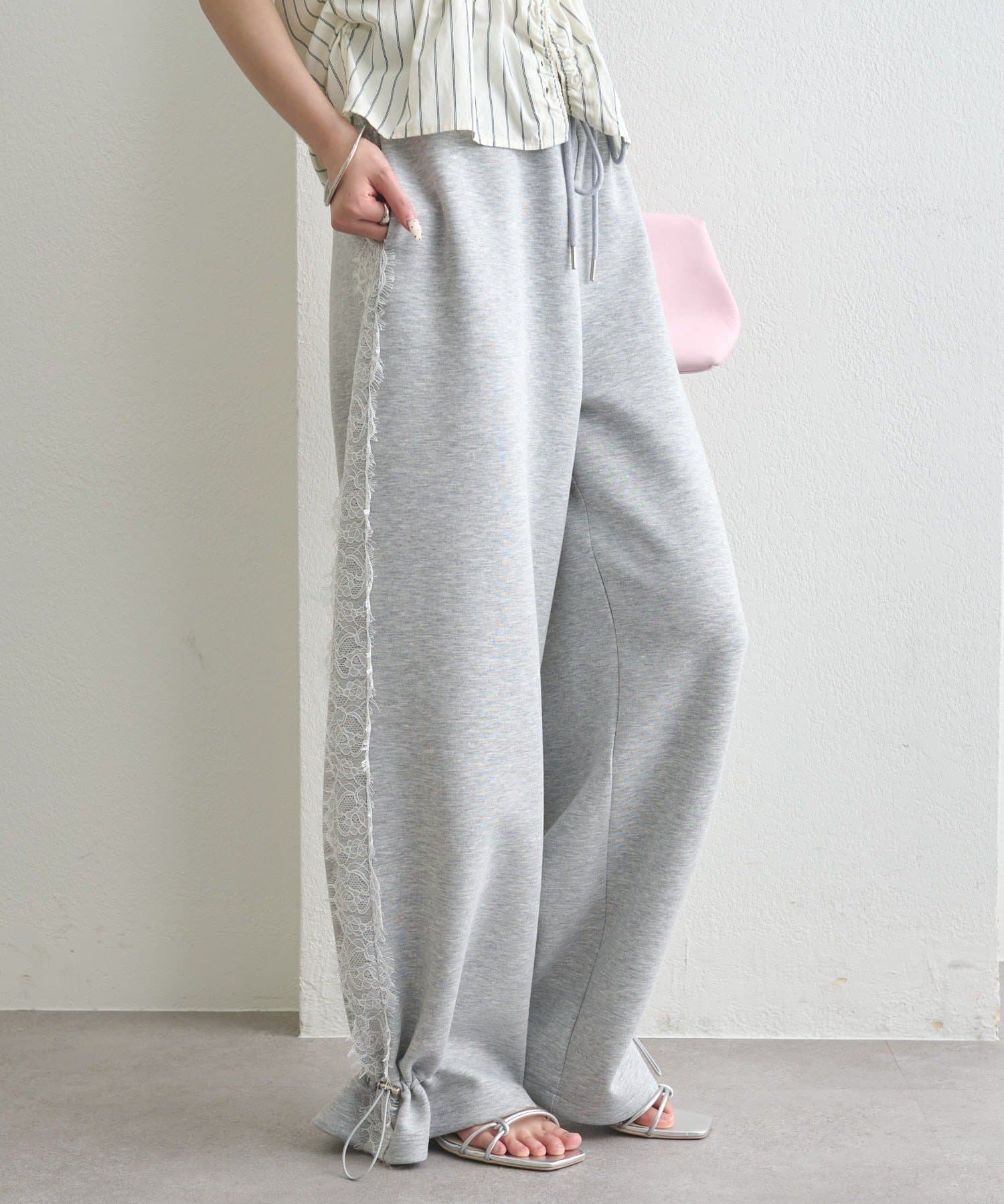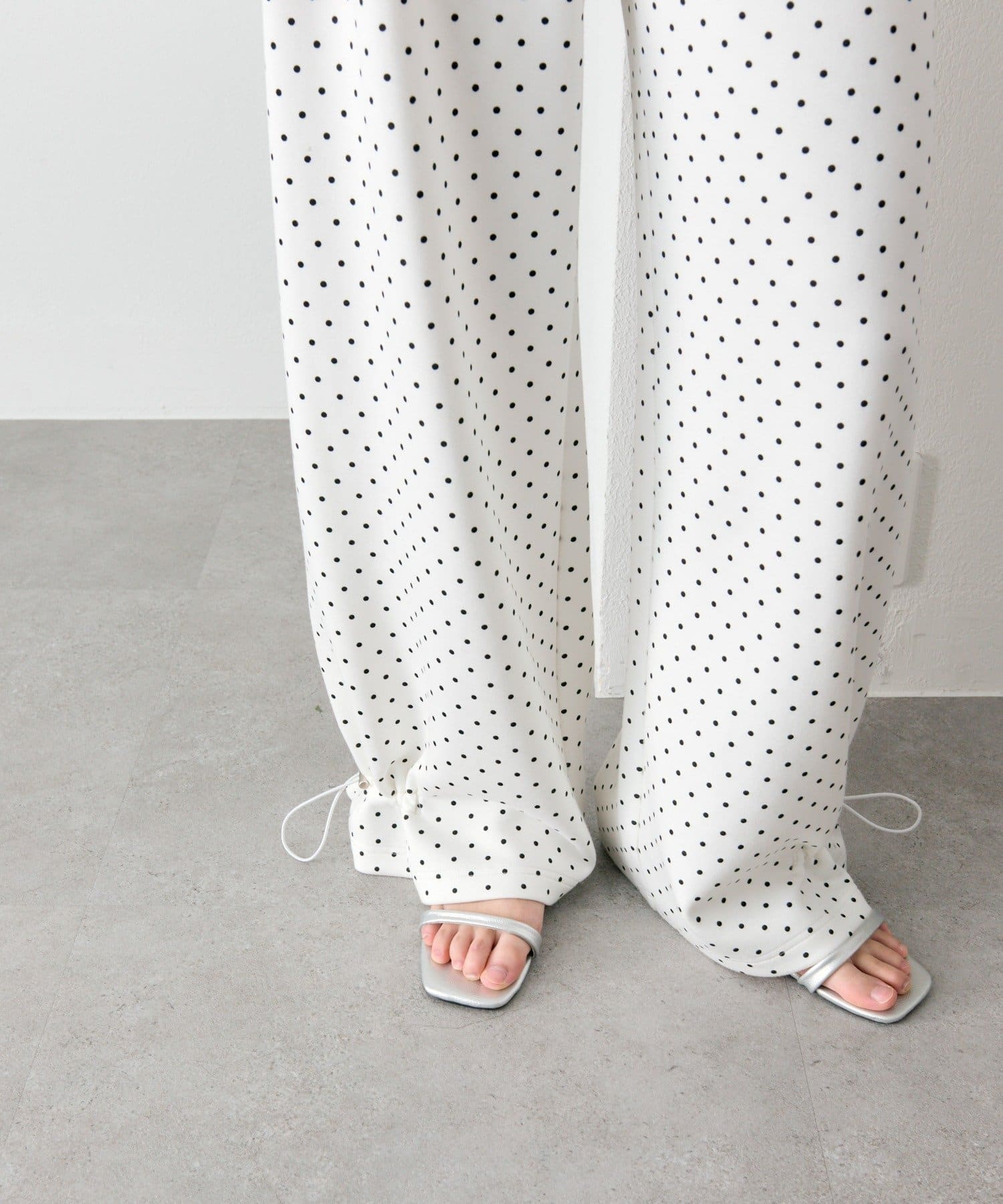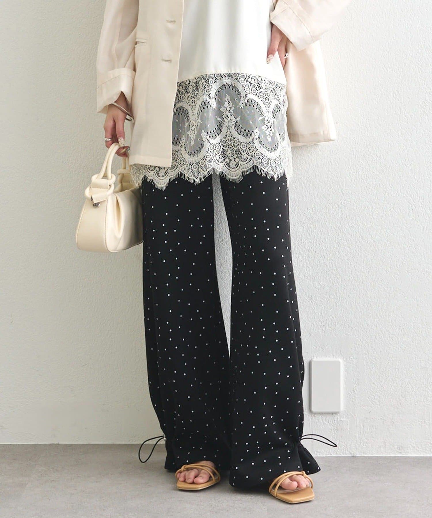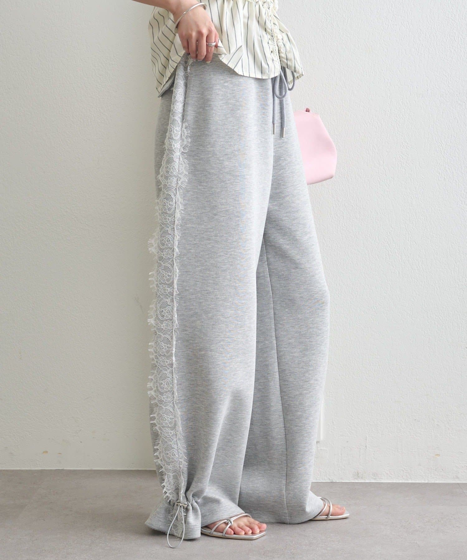 《新色ドット/レースライン》【楽ちんなのに美脚効果◎】裾ドロストスウェットパンツ