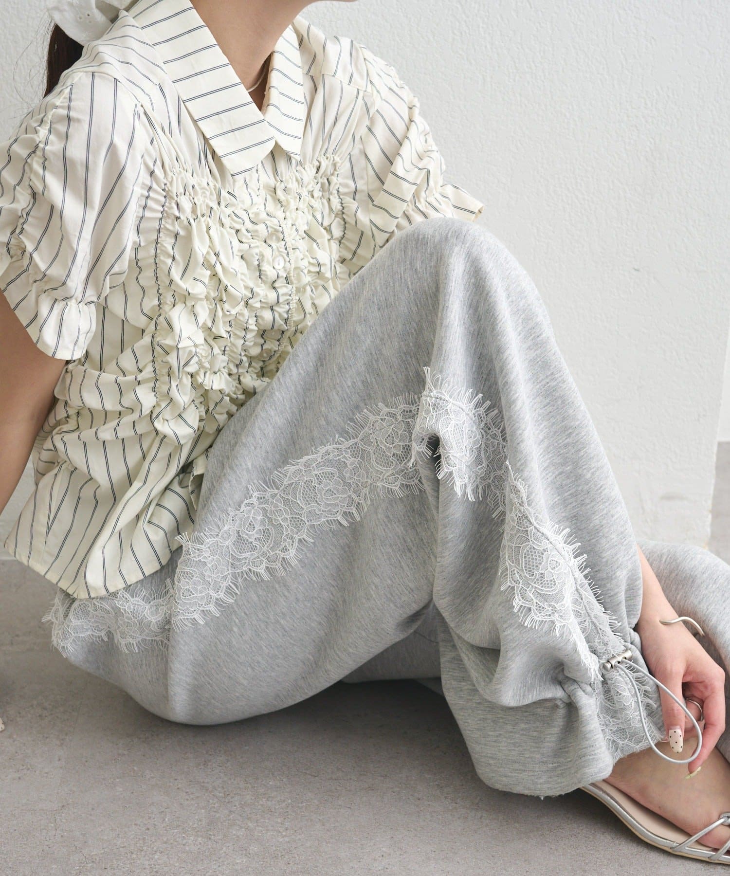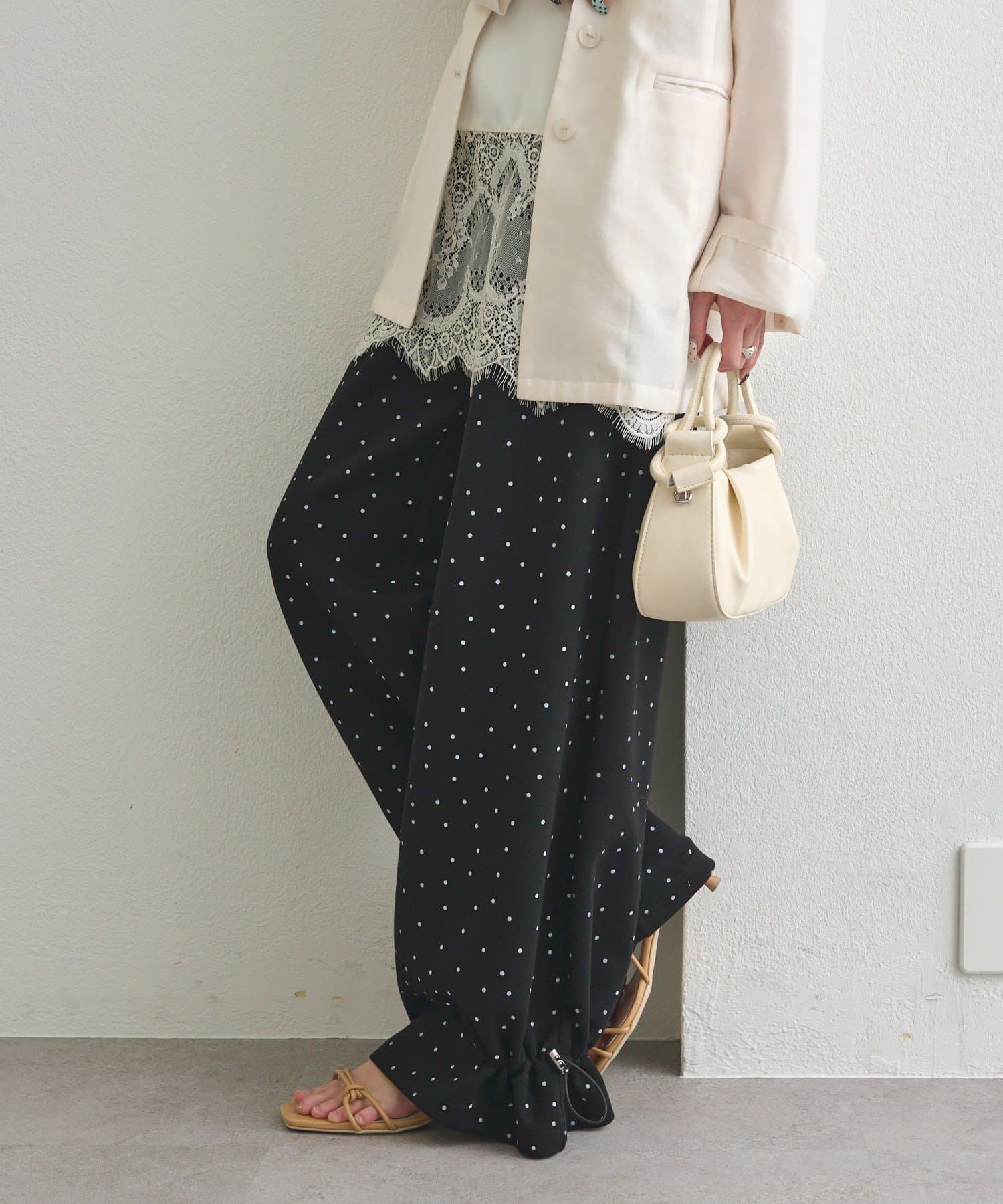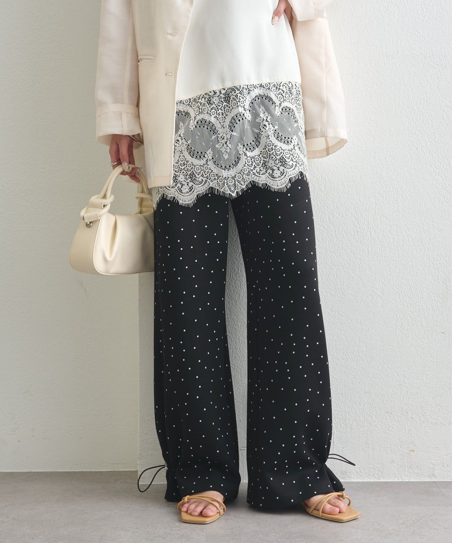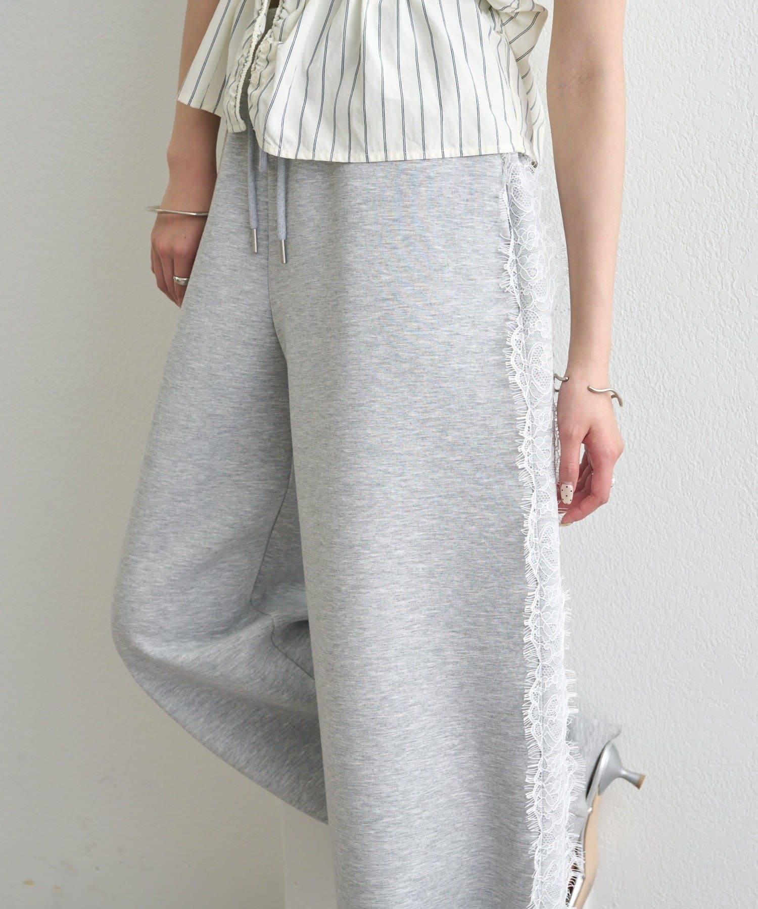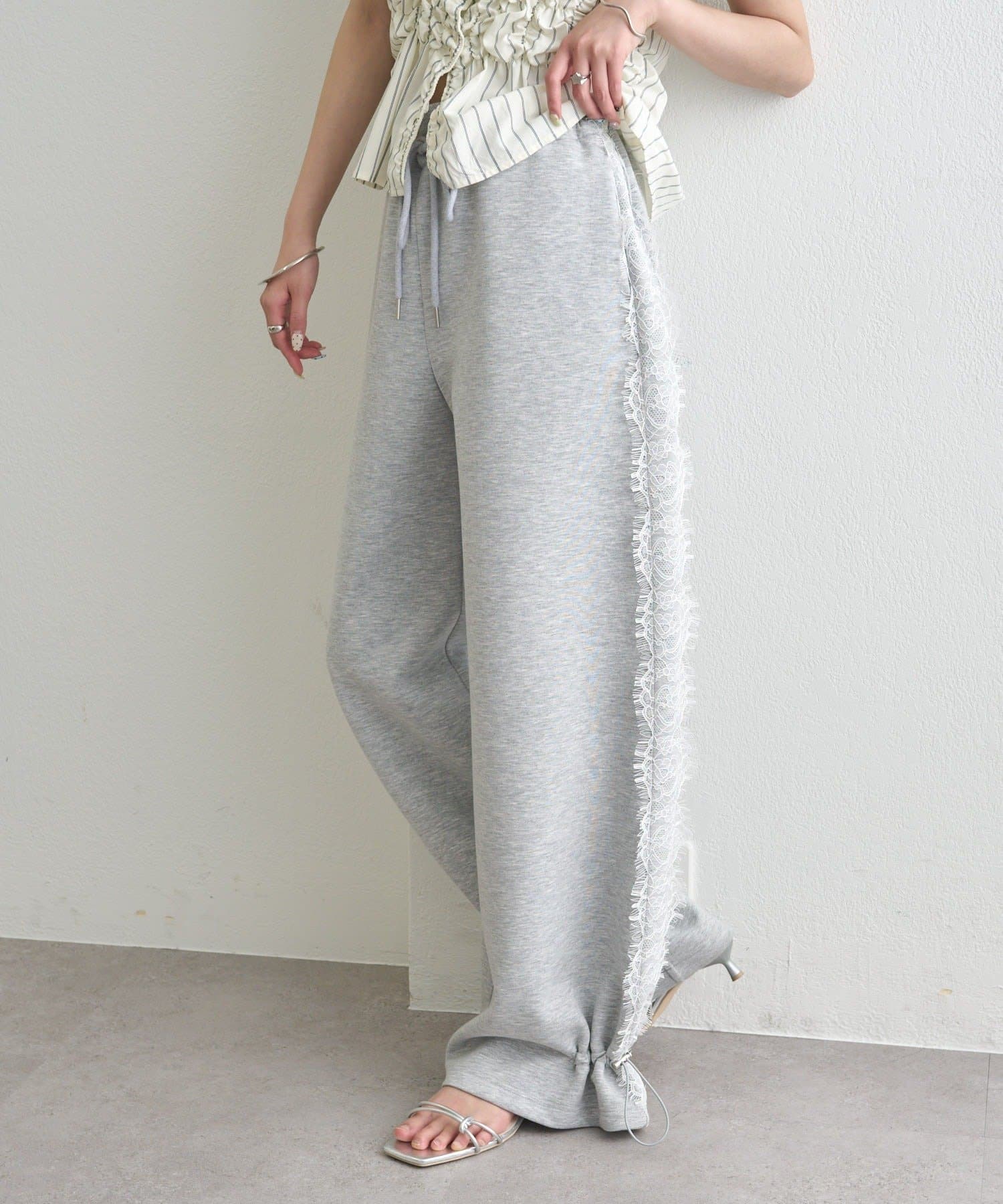 《新色ドット/レースライン》【楽ちんなのに美脚効果◎】裾ドロストスウェットパンツ
