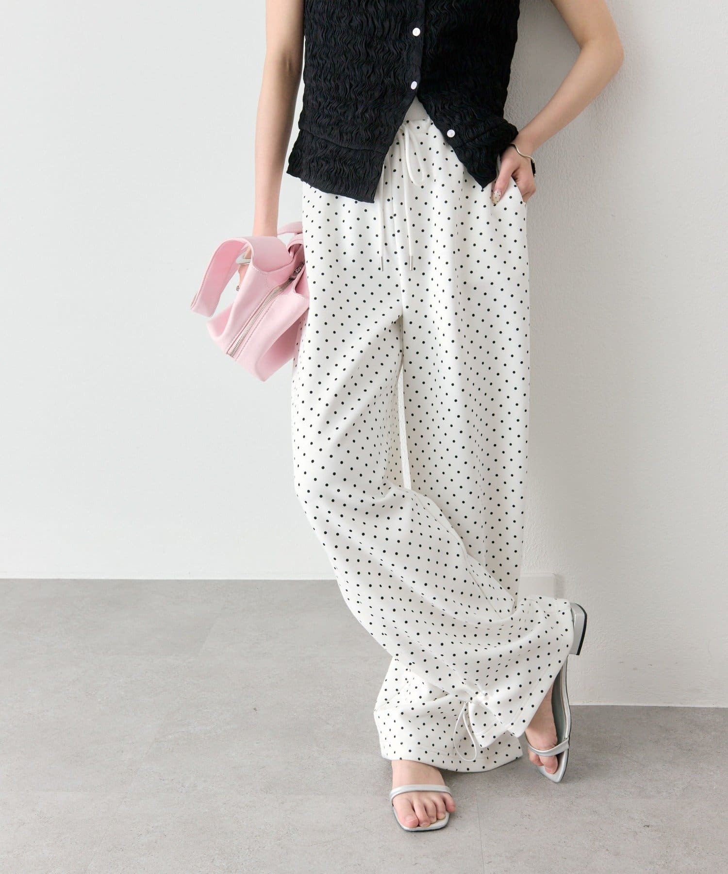 ウエストと裾がドロストで調節できるデザインの為、メリハリのあるバランスが作れます。