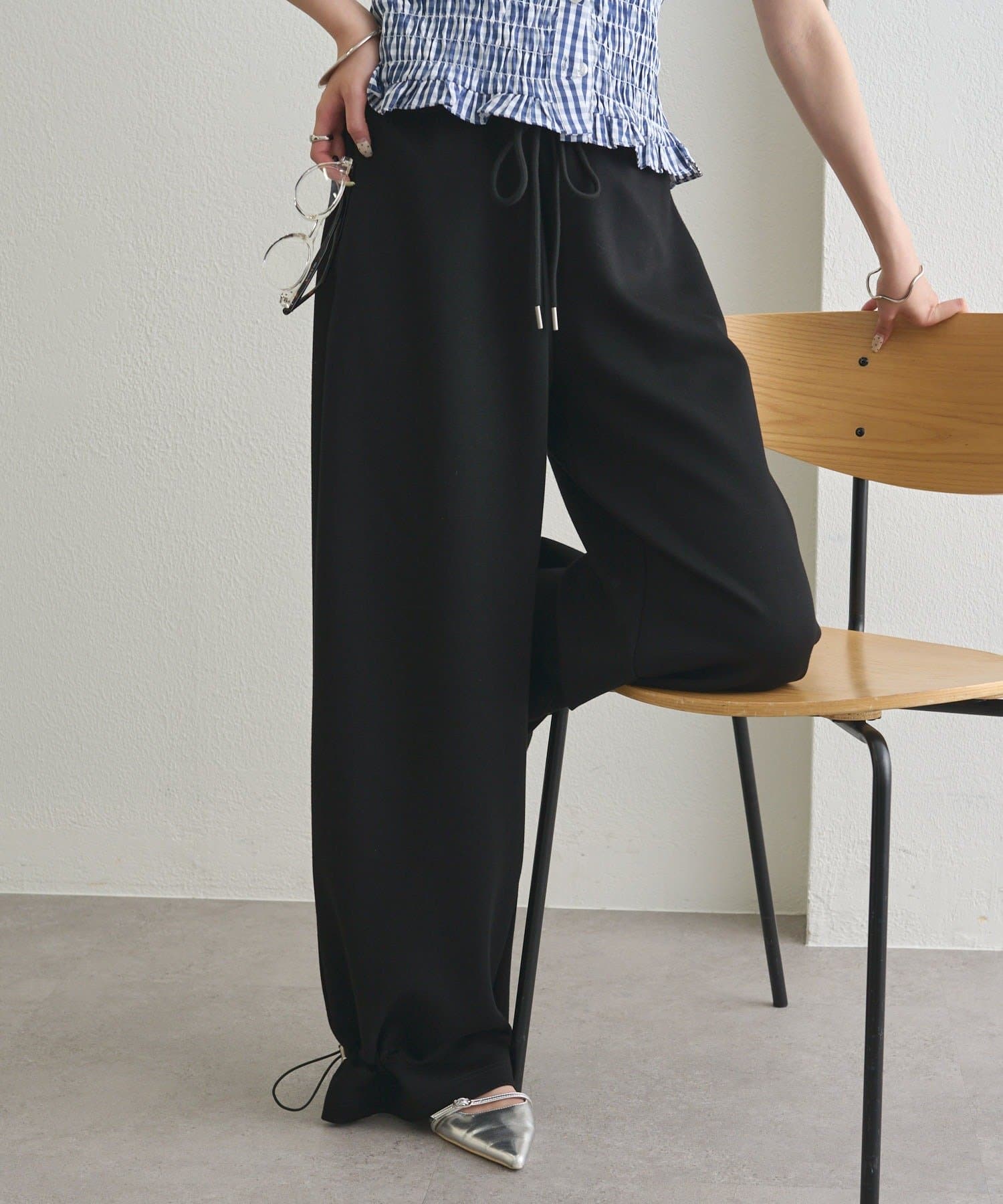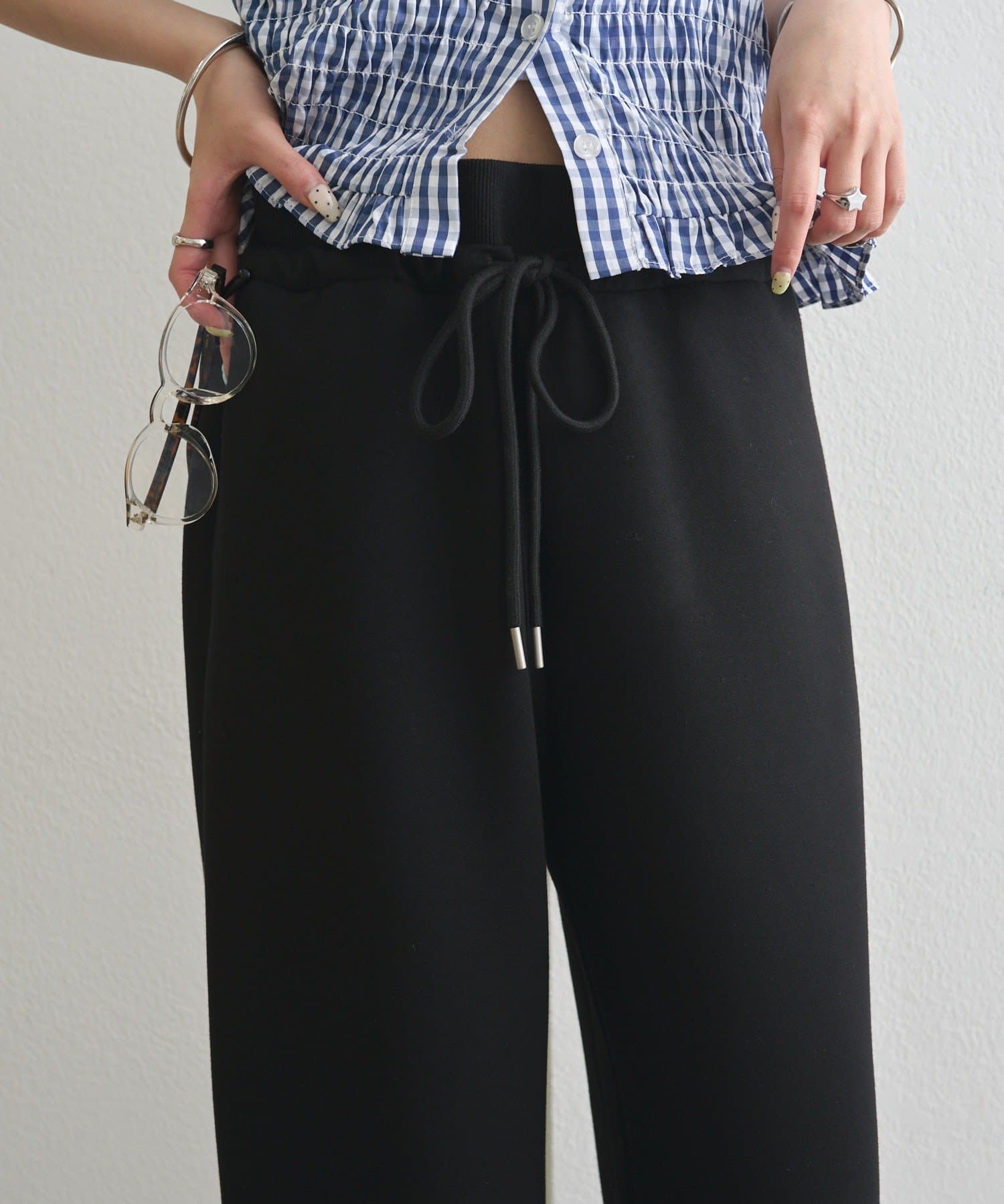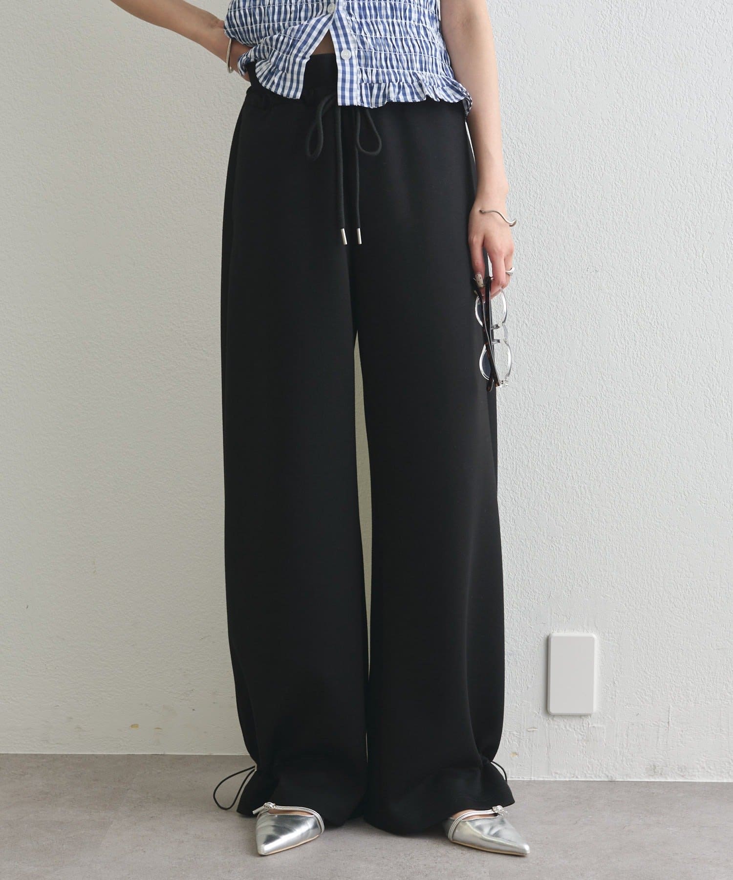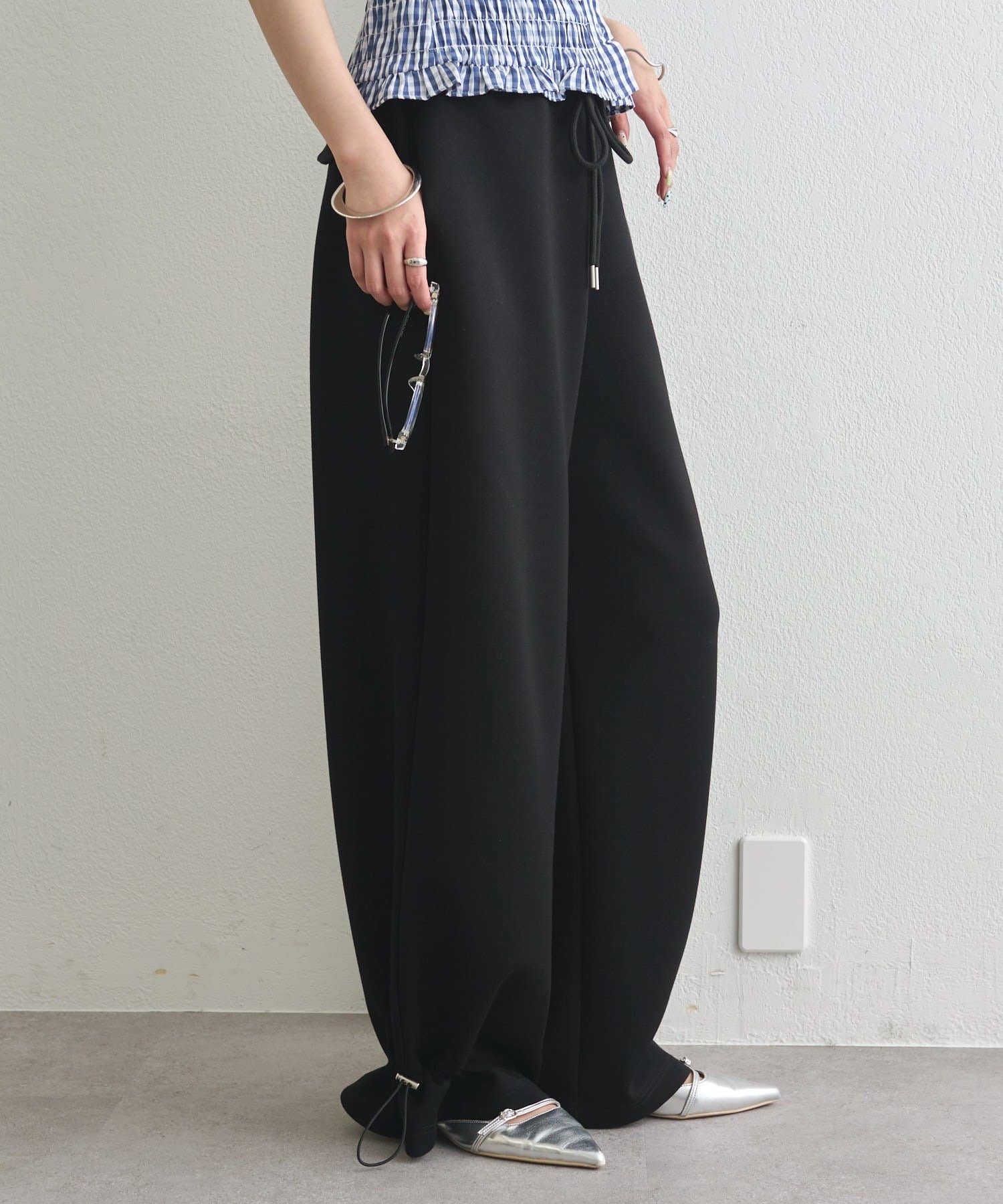 ドローストリングでシルエットの変化を楽しめるイージーパンツ