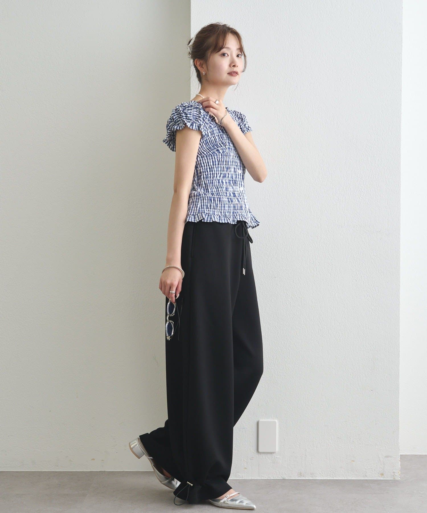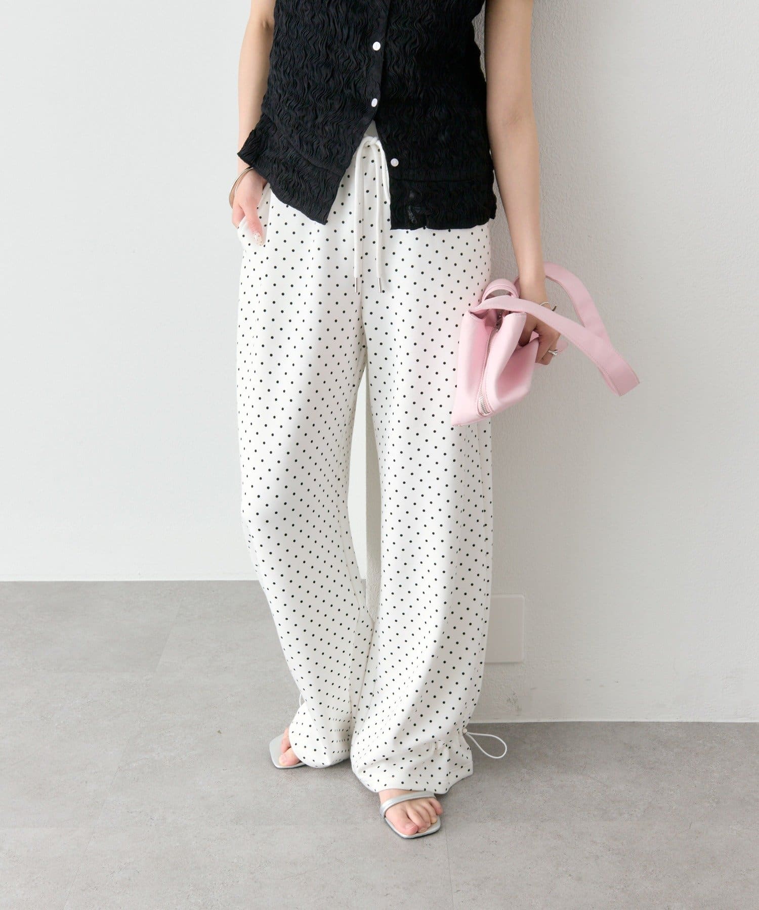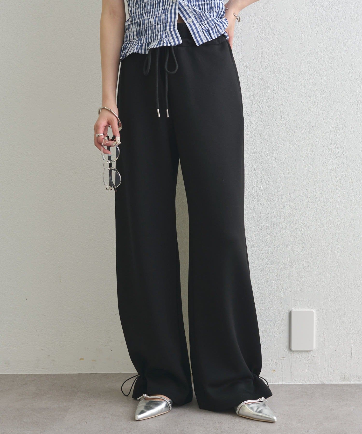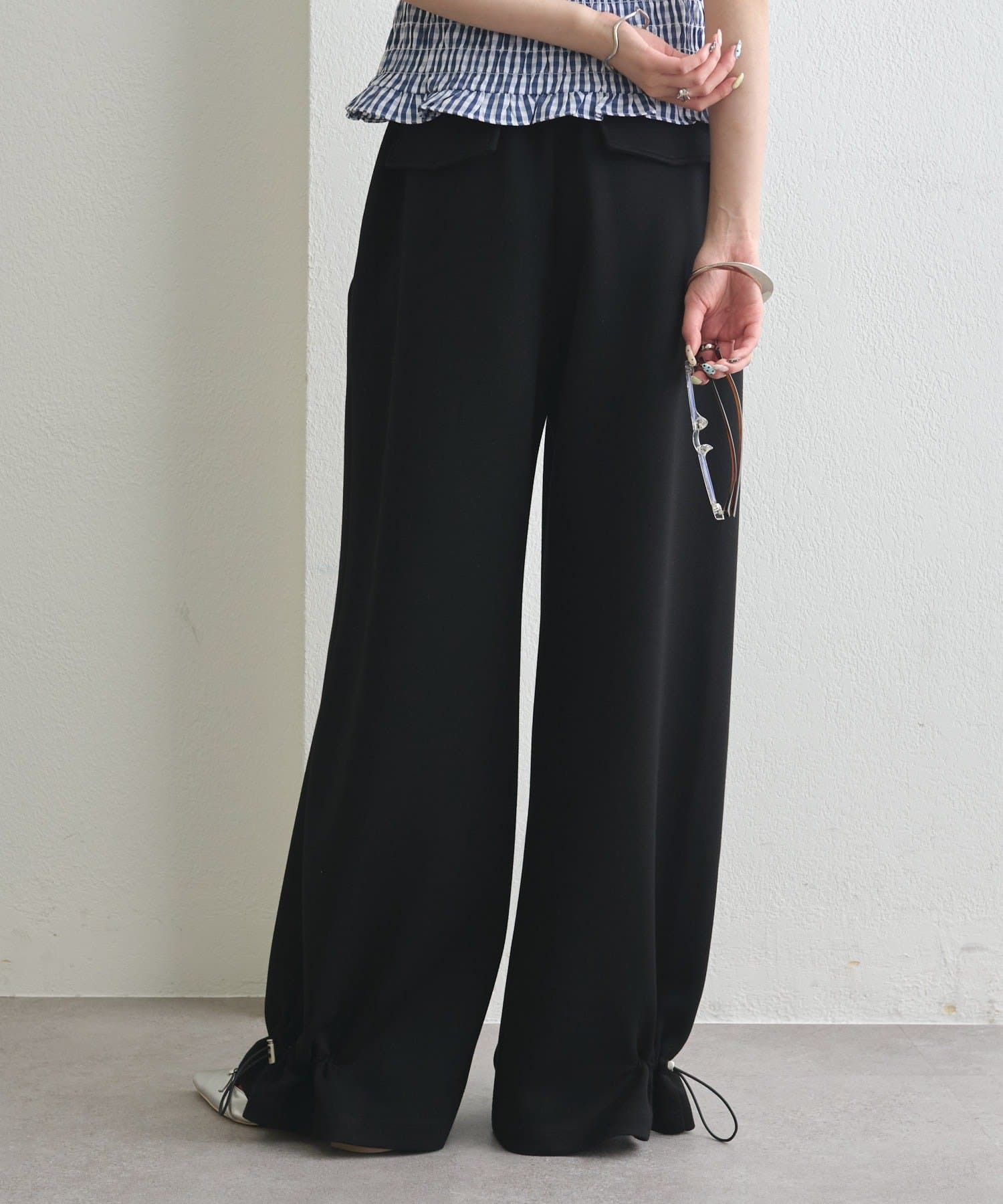 ドローストリングでシルエットの変化を楽しめるイージーパンツ
