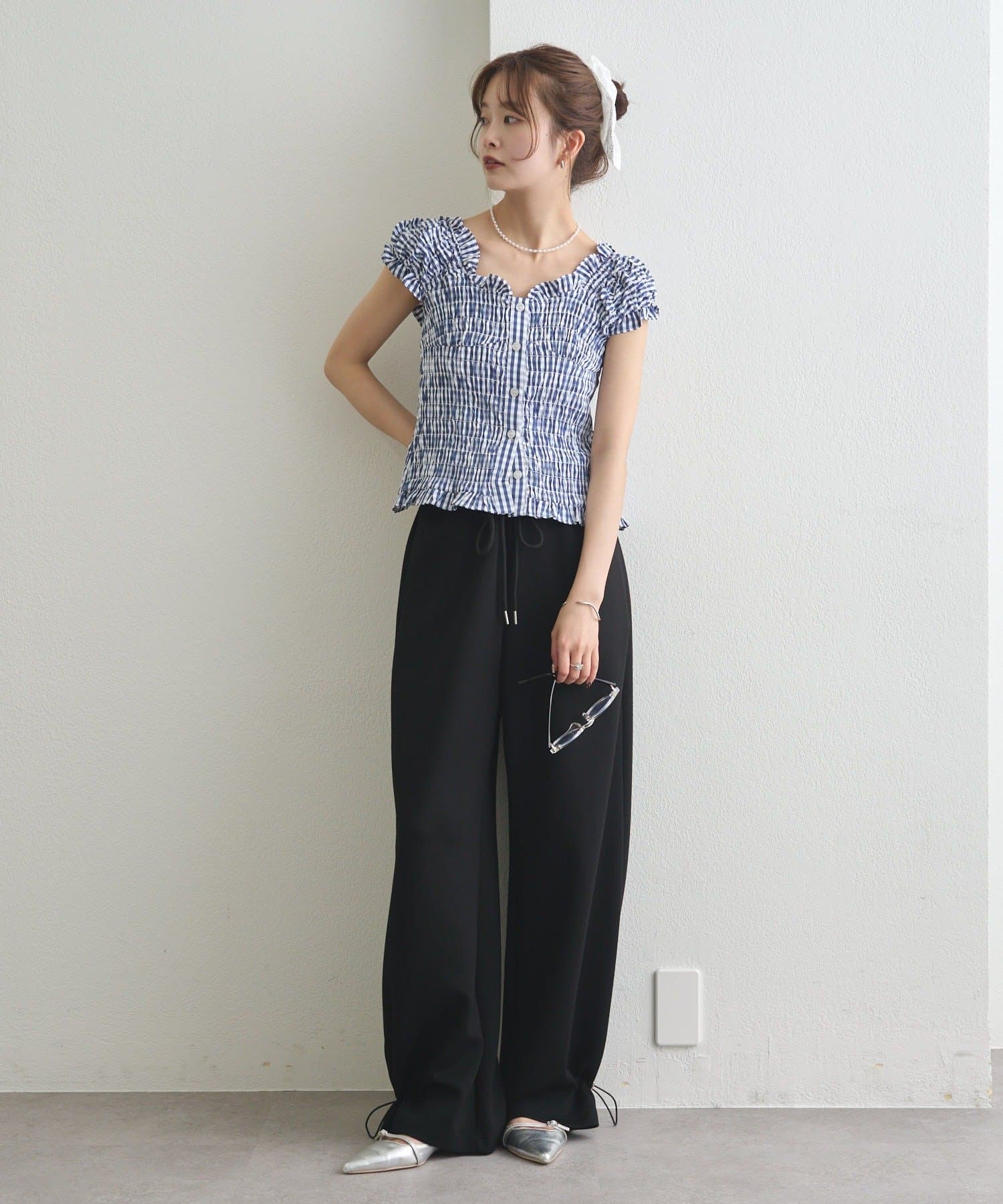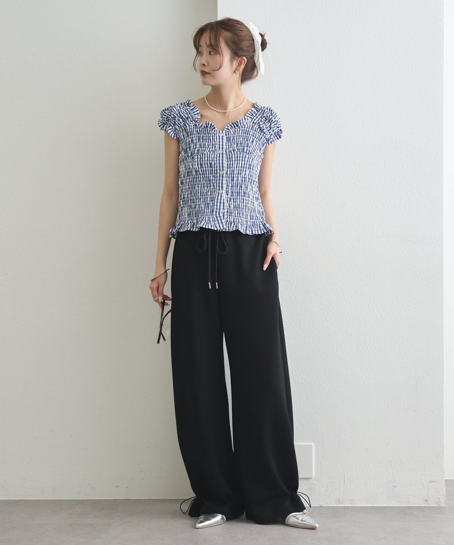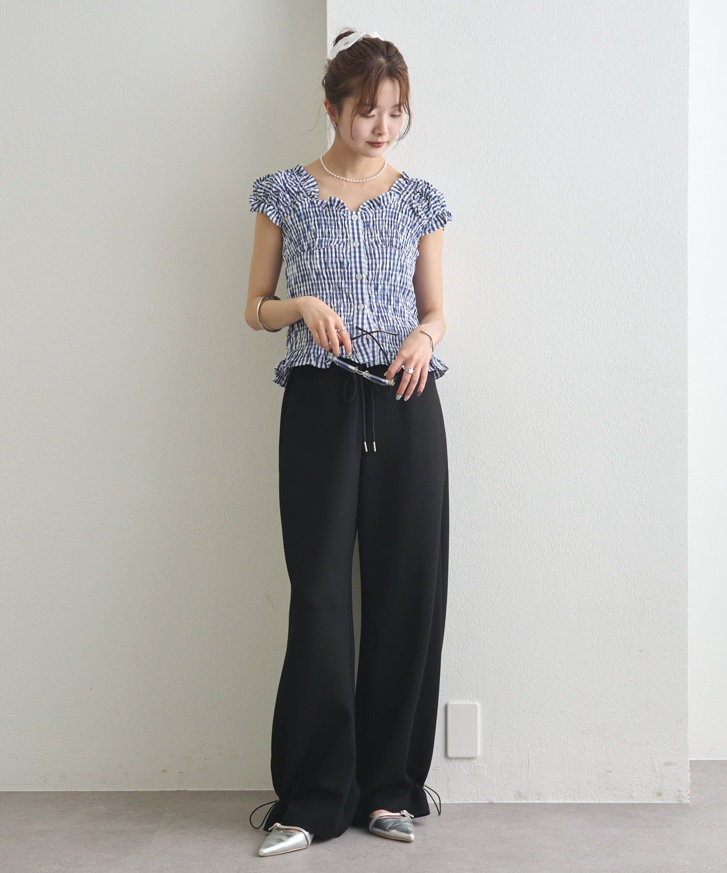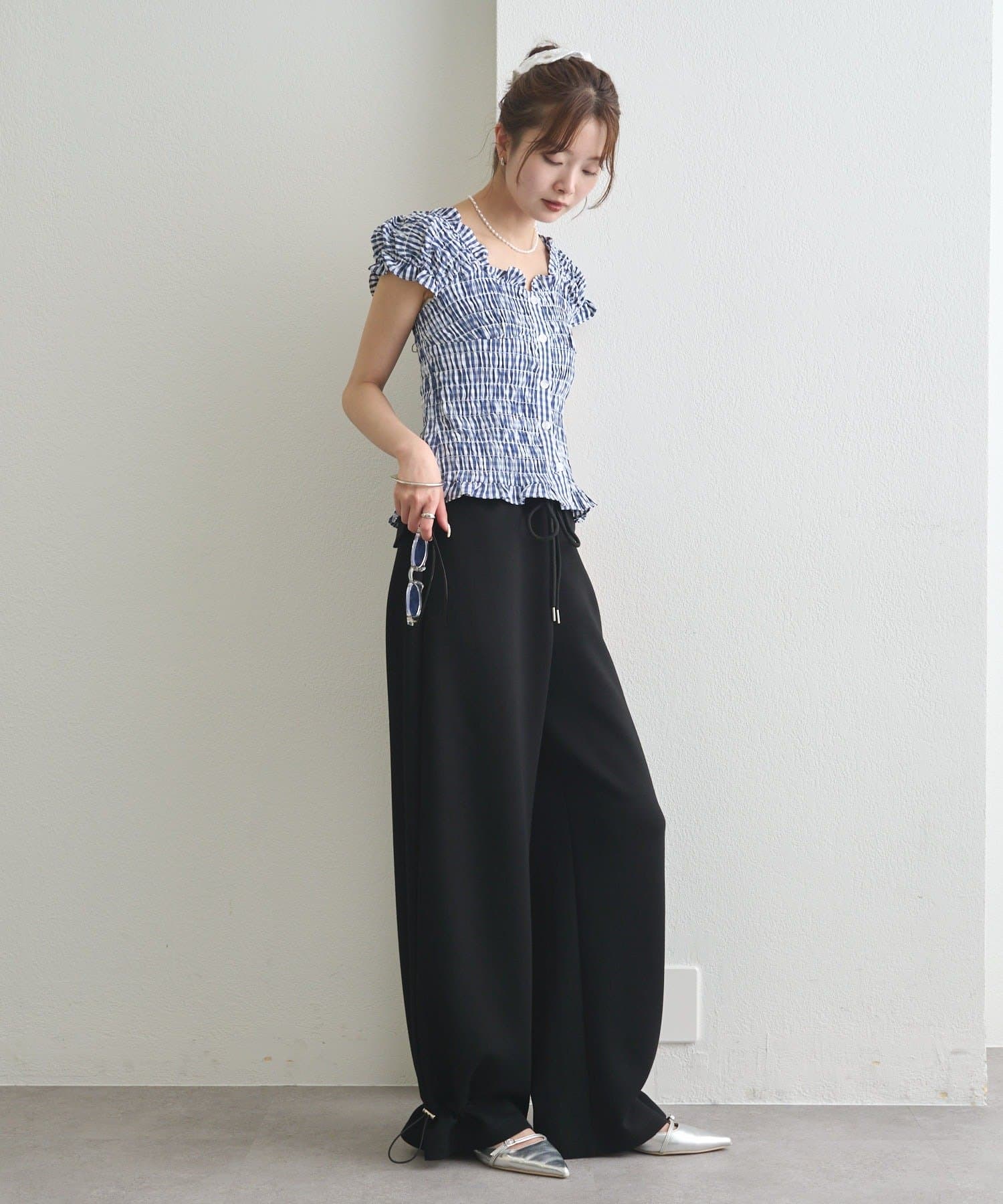 ドローストリングでシルエットの変化を楽しめるイージーパンツ