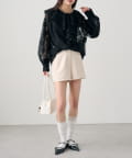・足元はロングブーツや長めソックスを合わせた、トレンドライクなスタイリングにも。