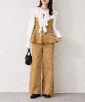 ・ボトムスにスラックスを合わせて大人っぽくキレイめなスタイリングも◎