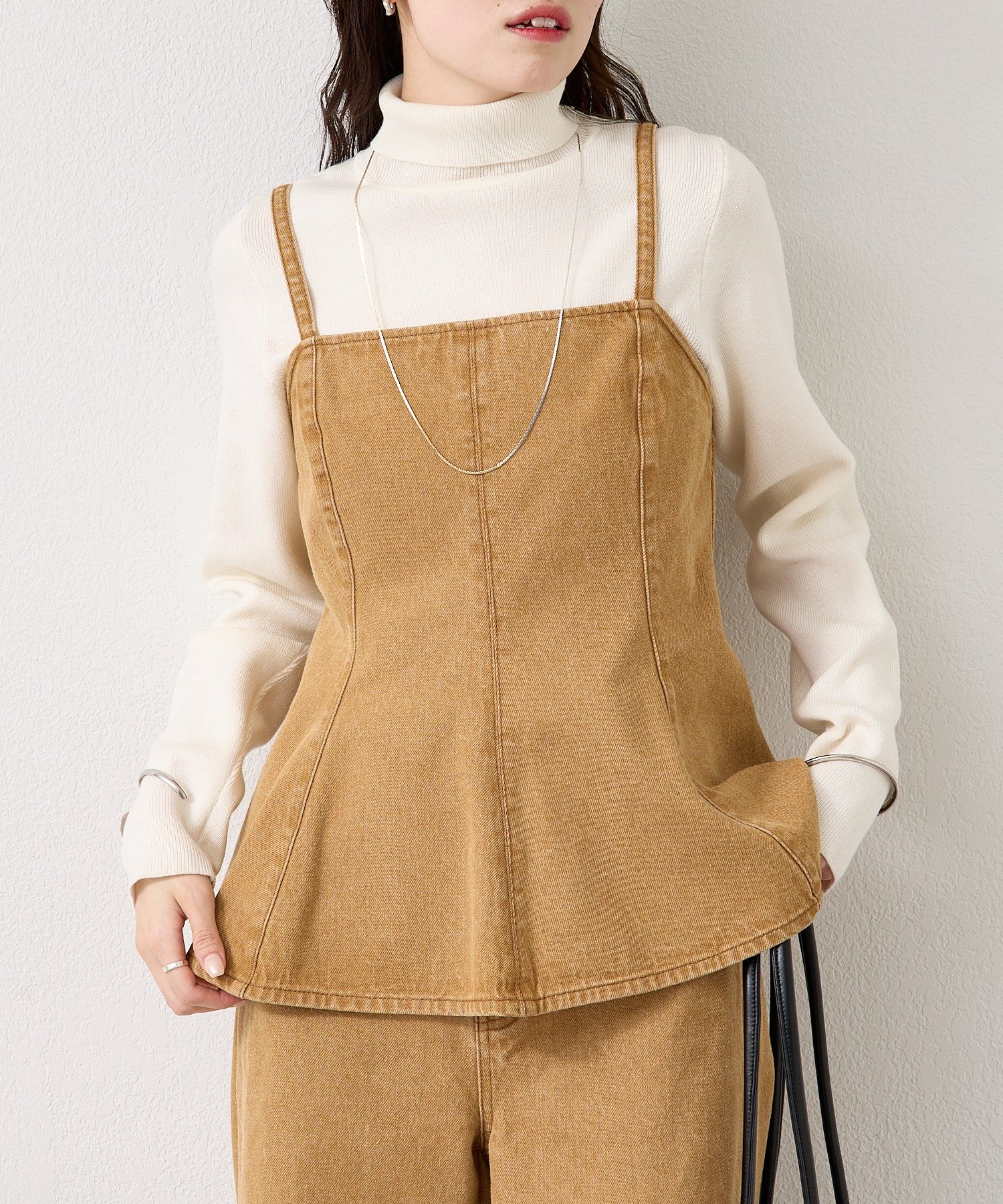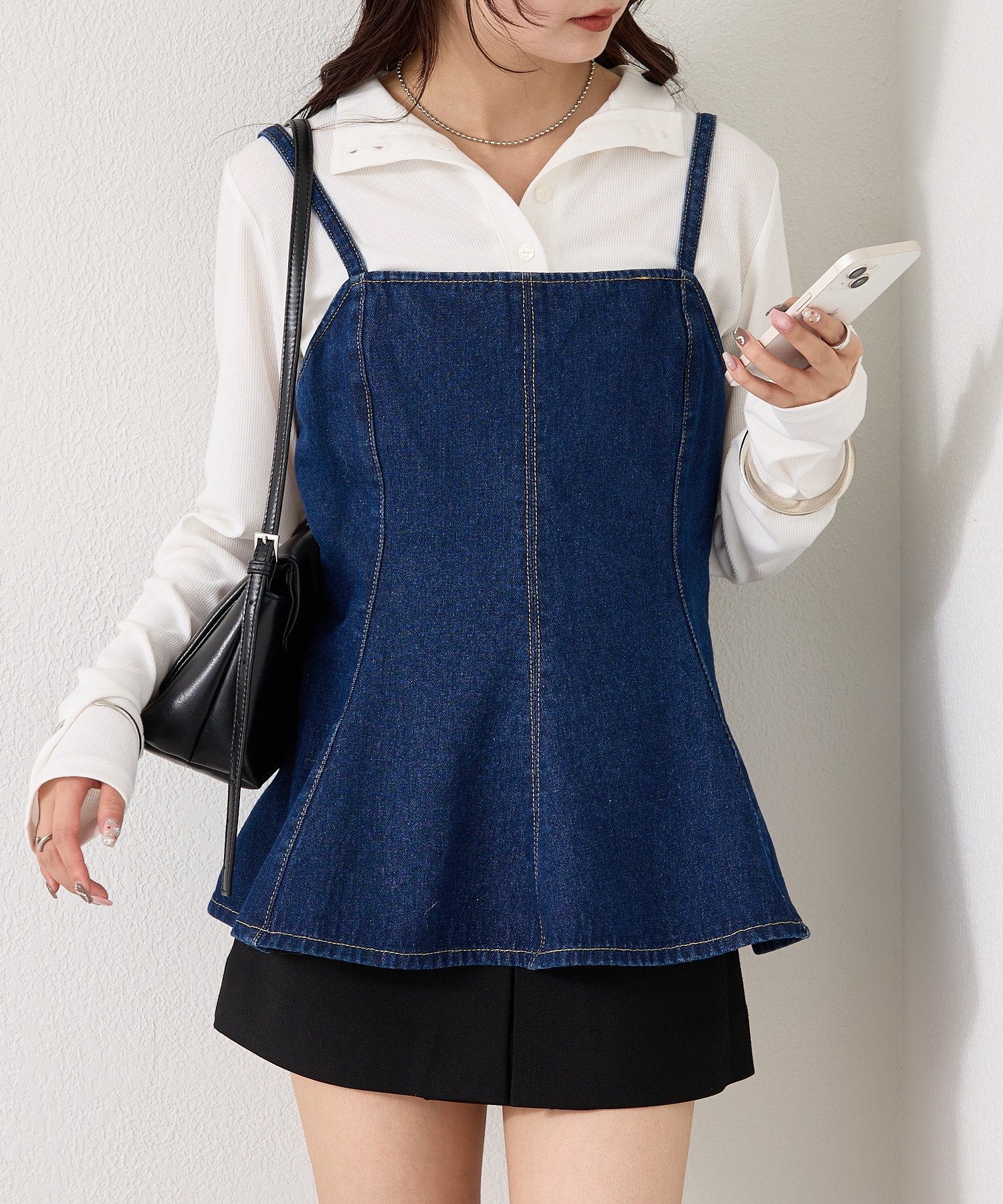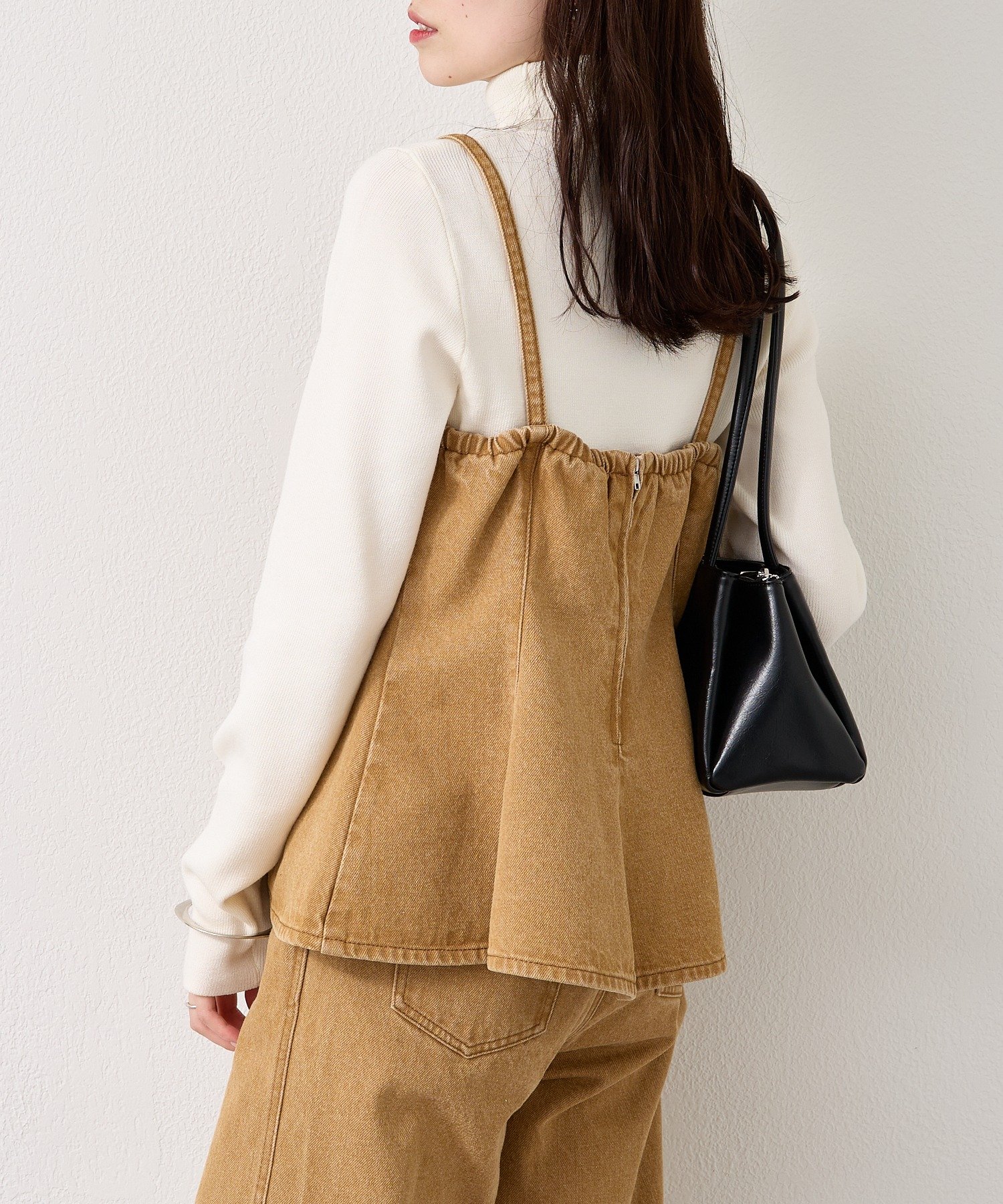 デニム素材でこなれ感あるペプラムビスチェ